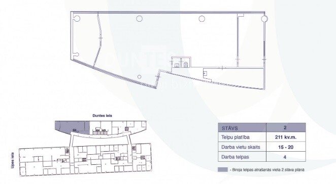 "Duntes biroji" is one of the brightest players in the Skanstes business district - it is an office building that has received a BREEAM certificate which confirms the building's sustainability and energy efficiency.