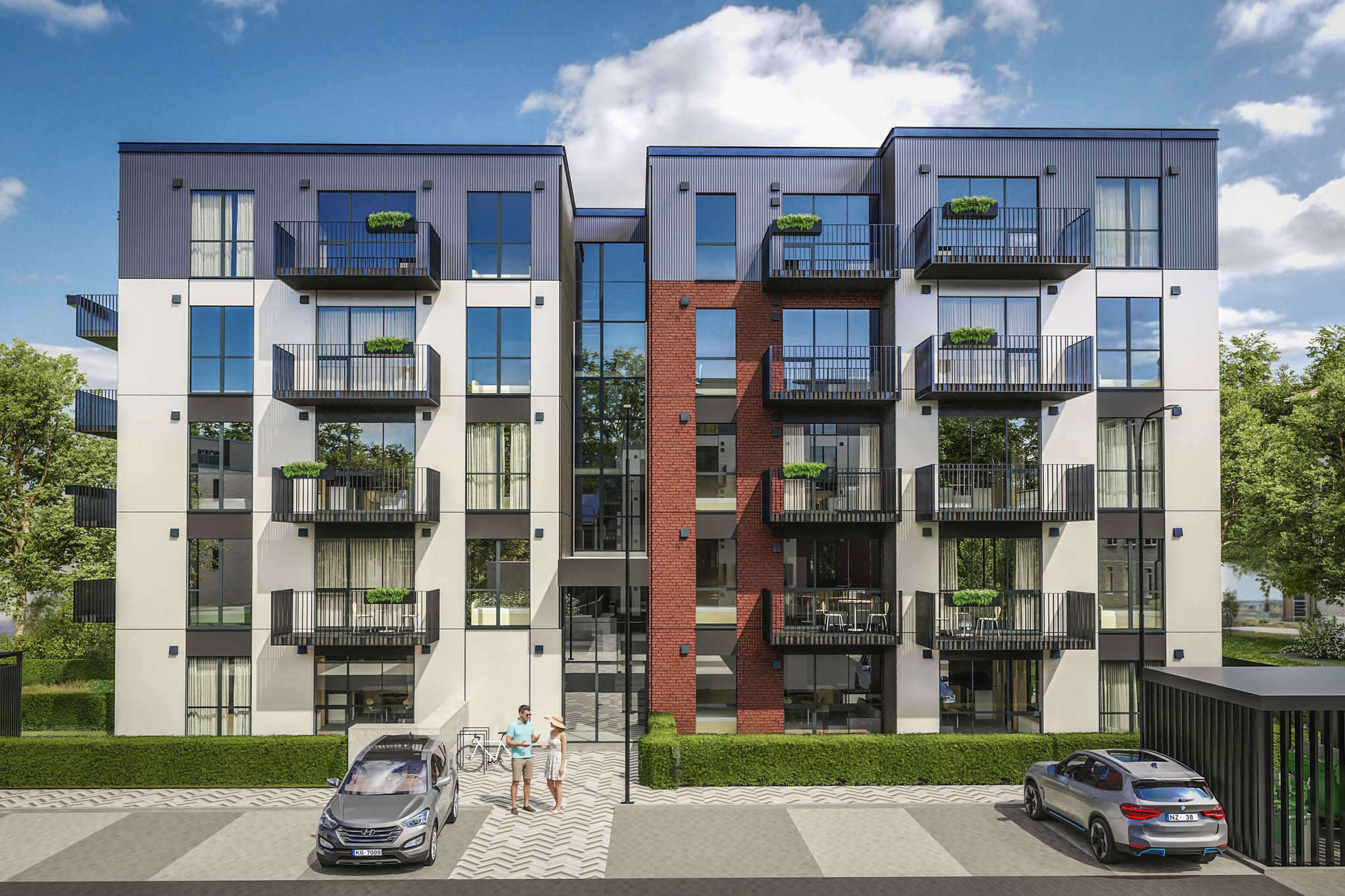 The project offers a comfortable and sustainable living environment with electric car charging stations, parcel lockers, video surveillance, a children’s playground, and landscaped recreational areas. The apartments feature triple-glazed windows, underfloor heating, and a ventilation system with heat recovery, ensuring comfort and low utility costs.