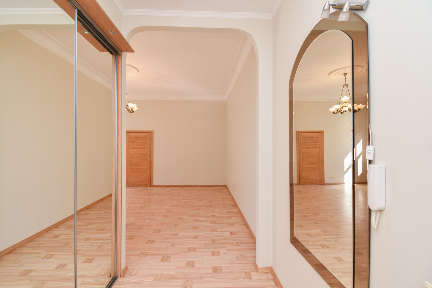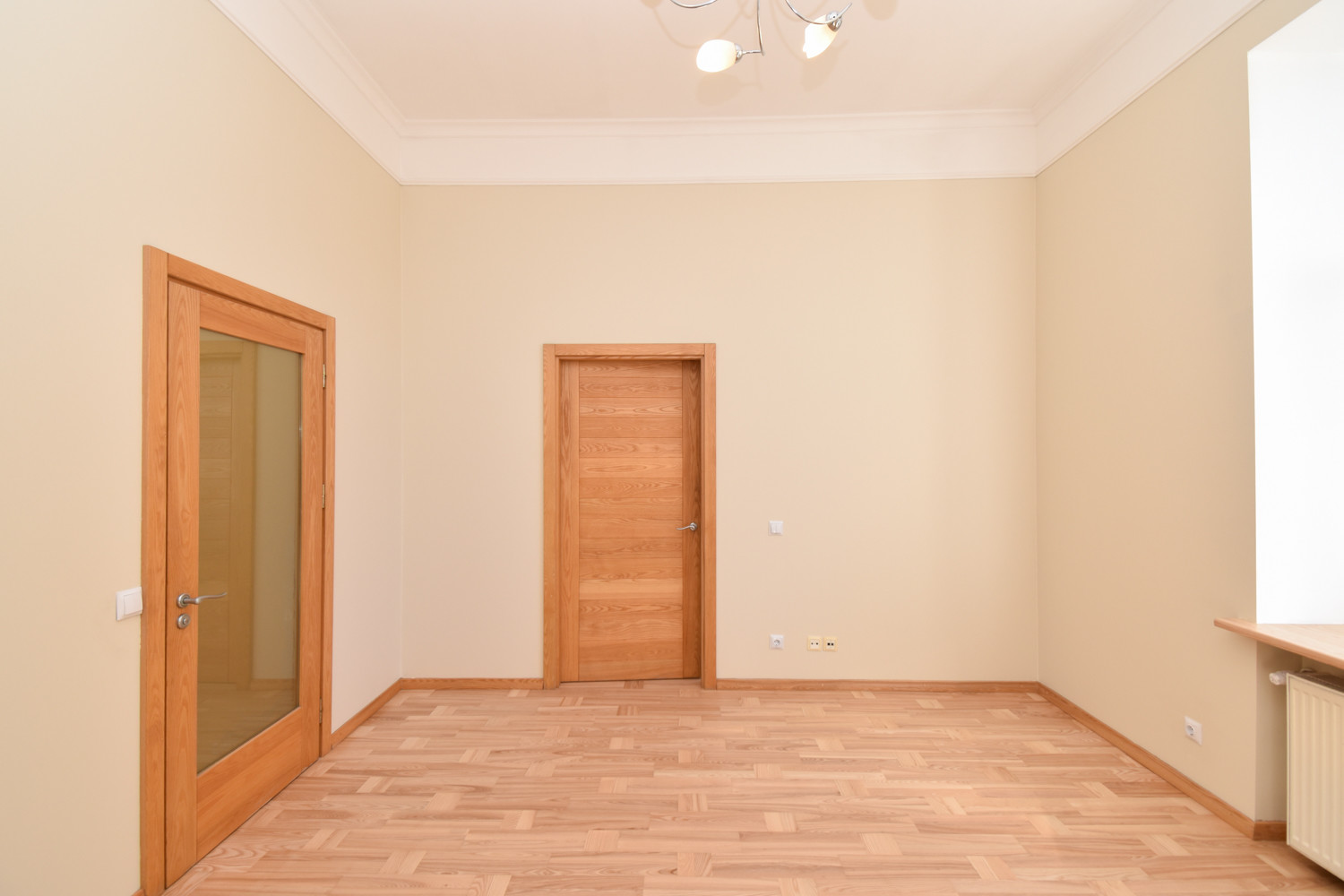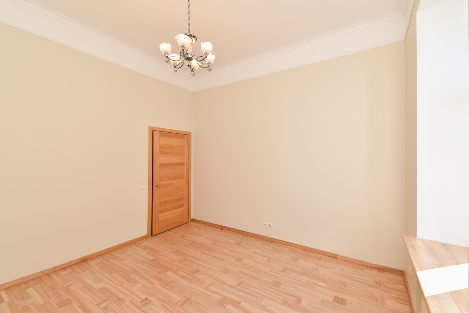 A spacious, Art Nouveau four-room apartment after renovation in the quiet center of Riga, in a renovated facade building. The apartment is located on the 4th/6th floor of the building. New elevator.