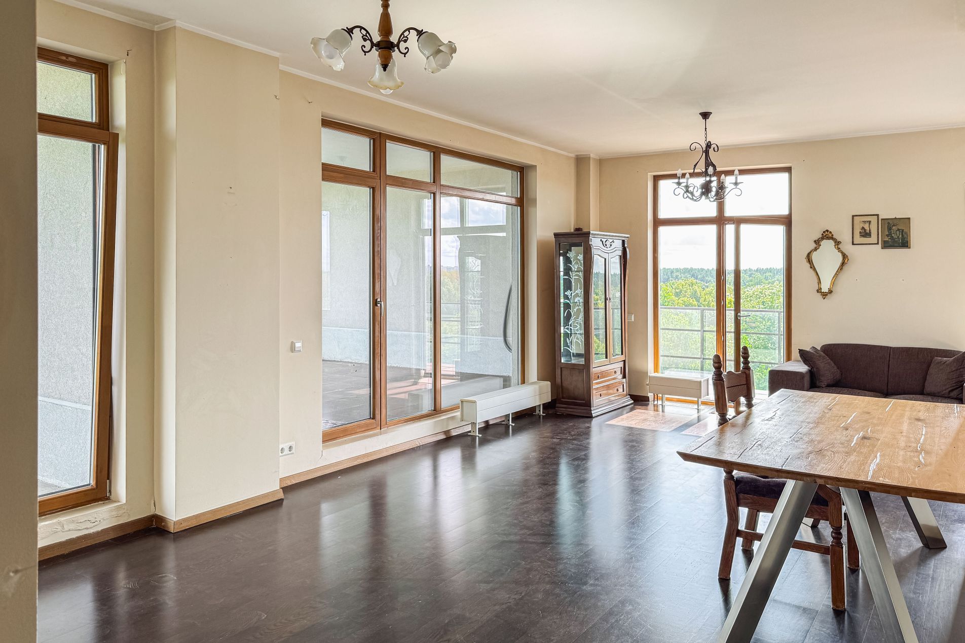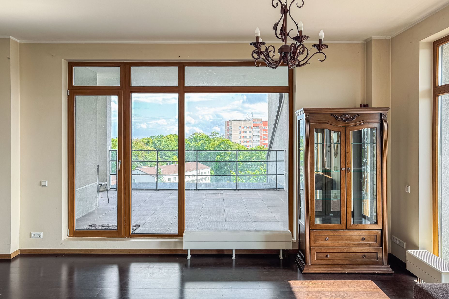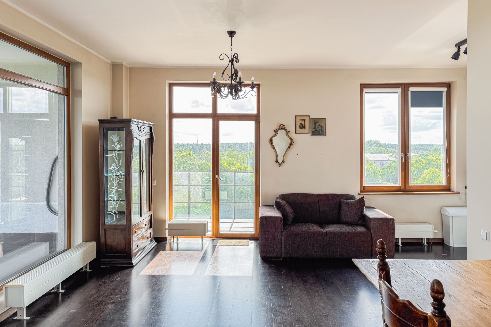 A sunny and thoughtfully designed 4-room apartment is available for purchase, featuring a generous outdoor space – the perfect place to start your day with a cup of coffee or relax in the evening by candlelight.