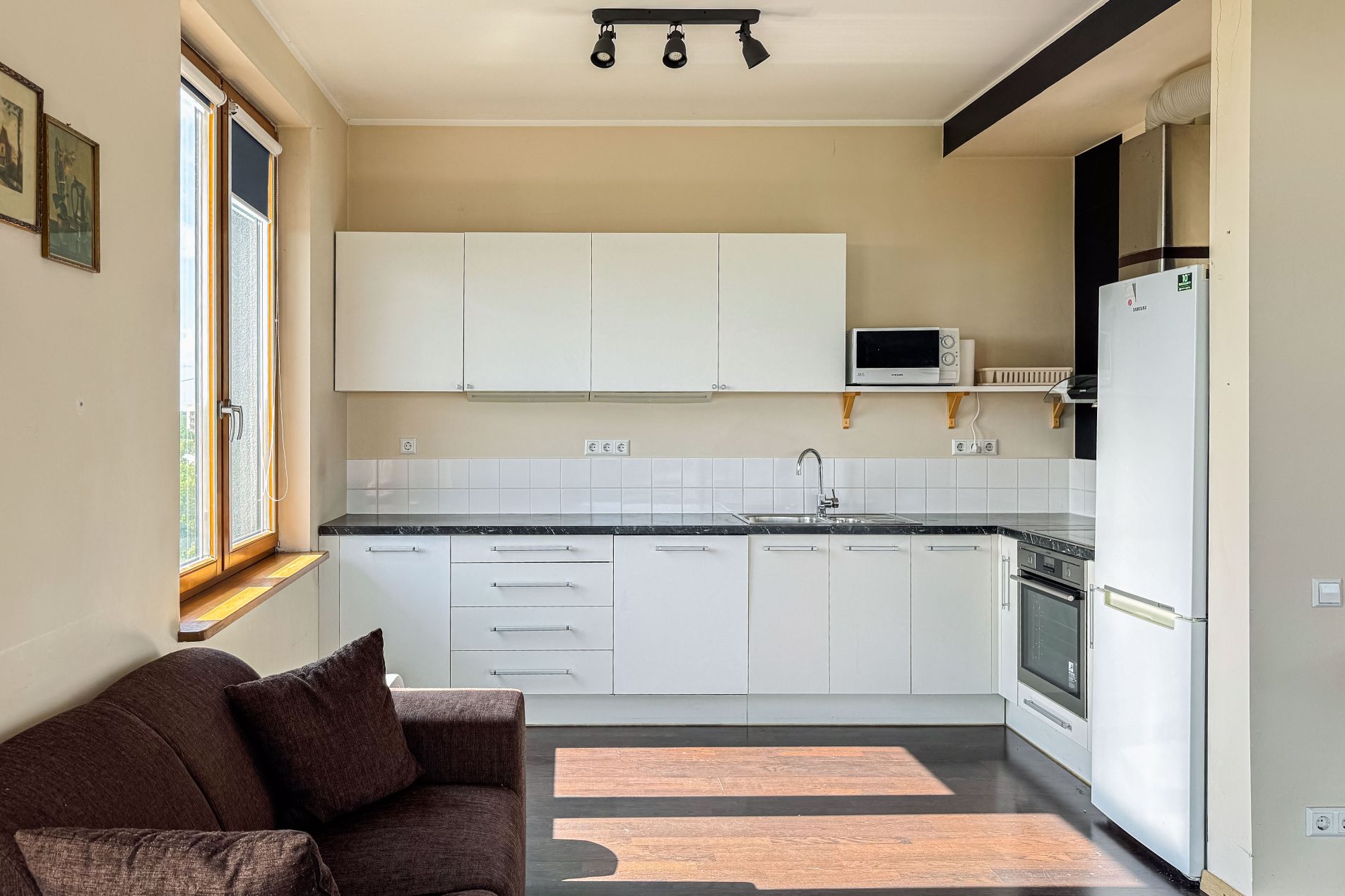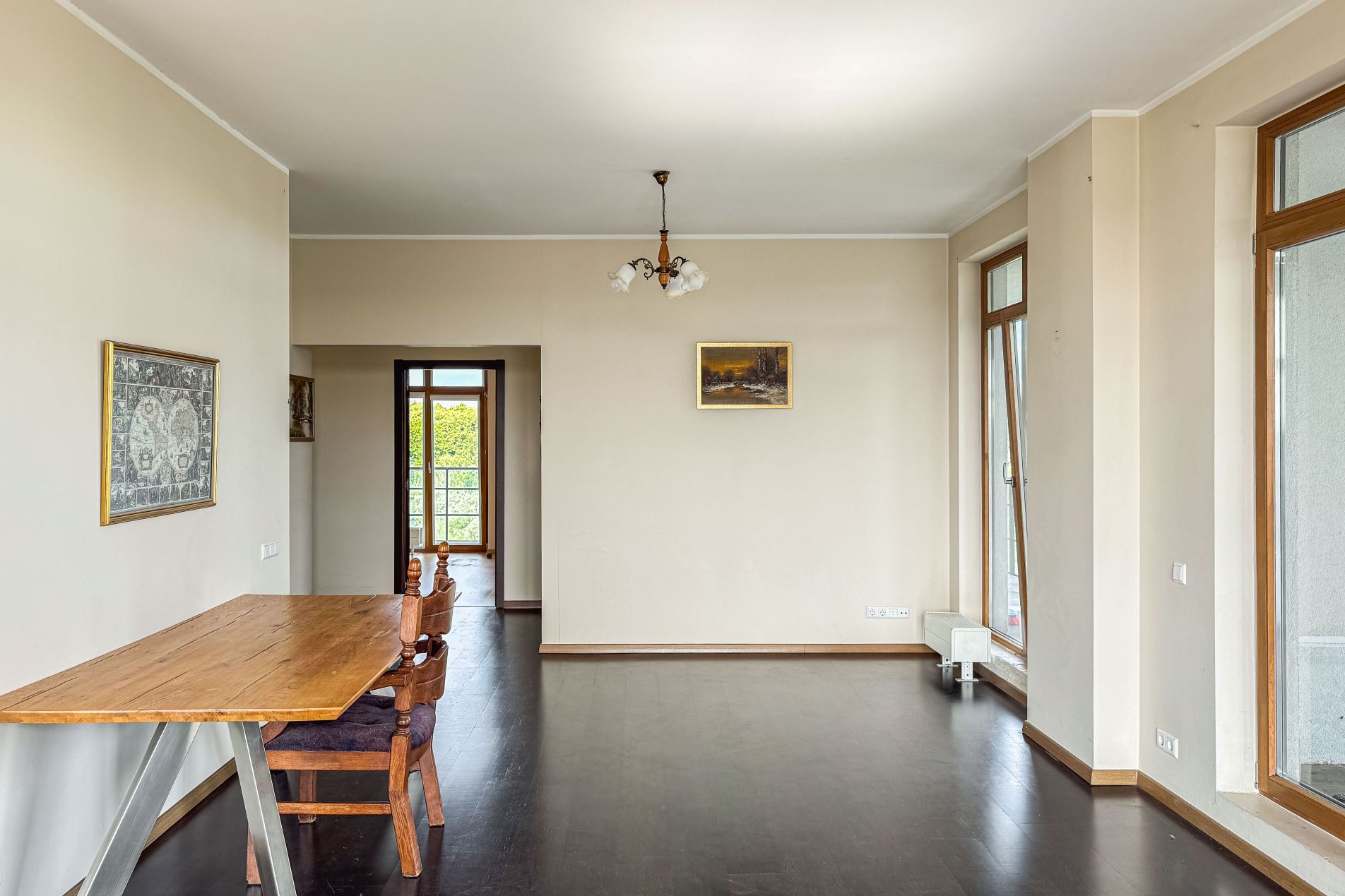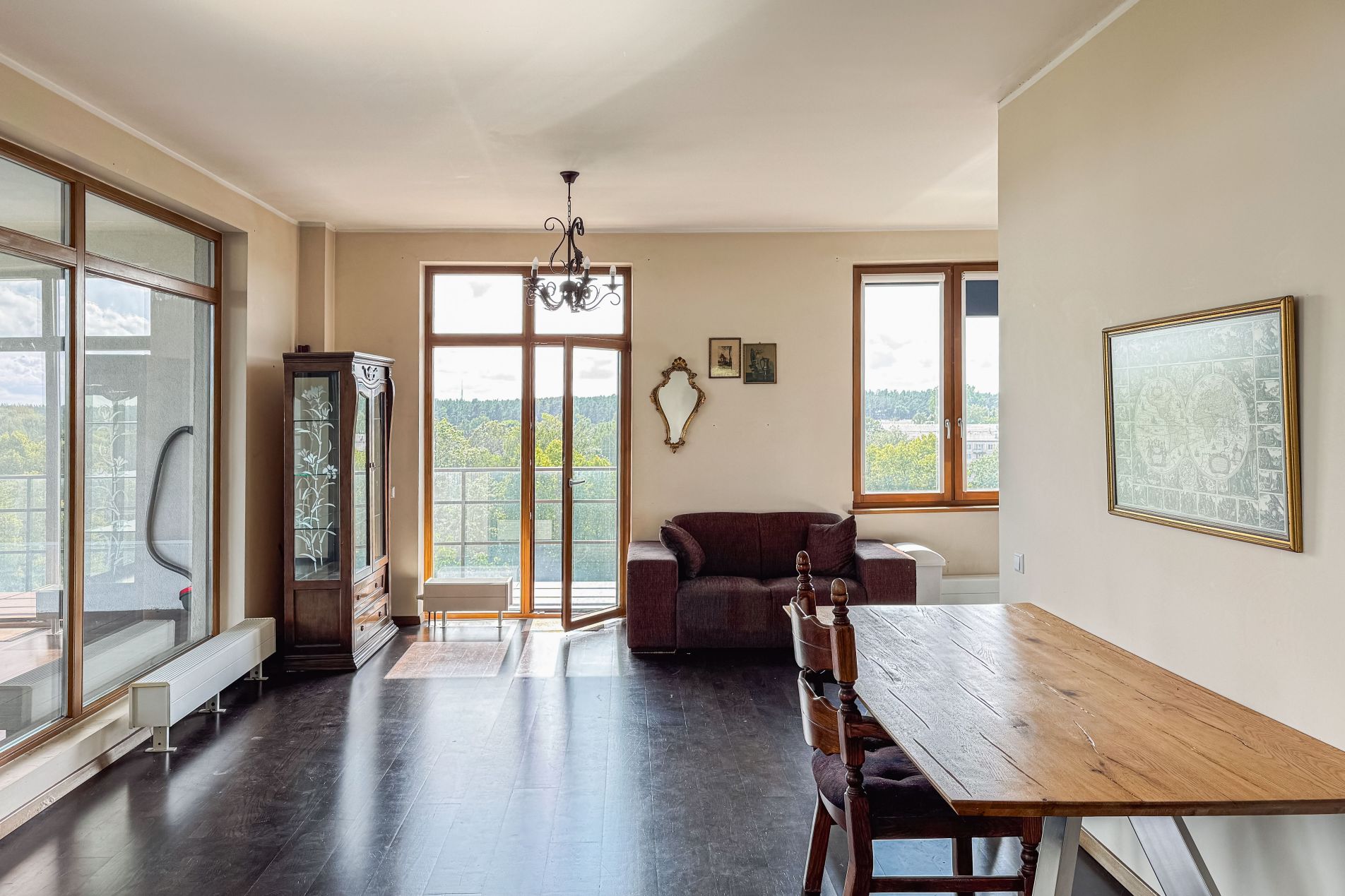 A sunny and thoughtfully designed 4-room apartment is available for purchase, featuring a generous outdoor space – the perfect place to start your day with a cup of coffee or relax in the evening by candlelight.
