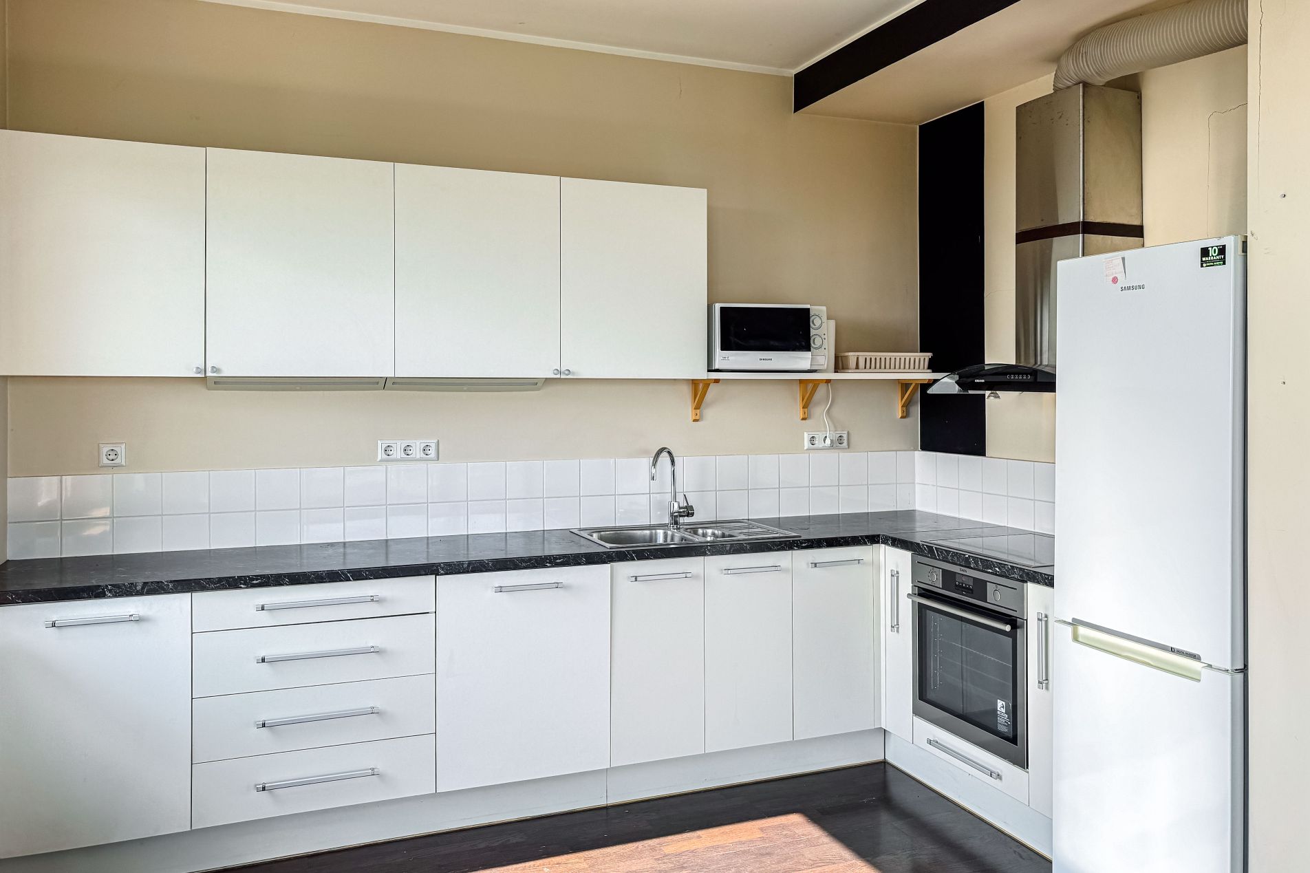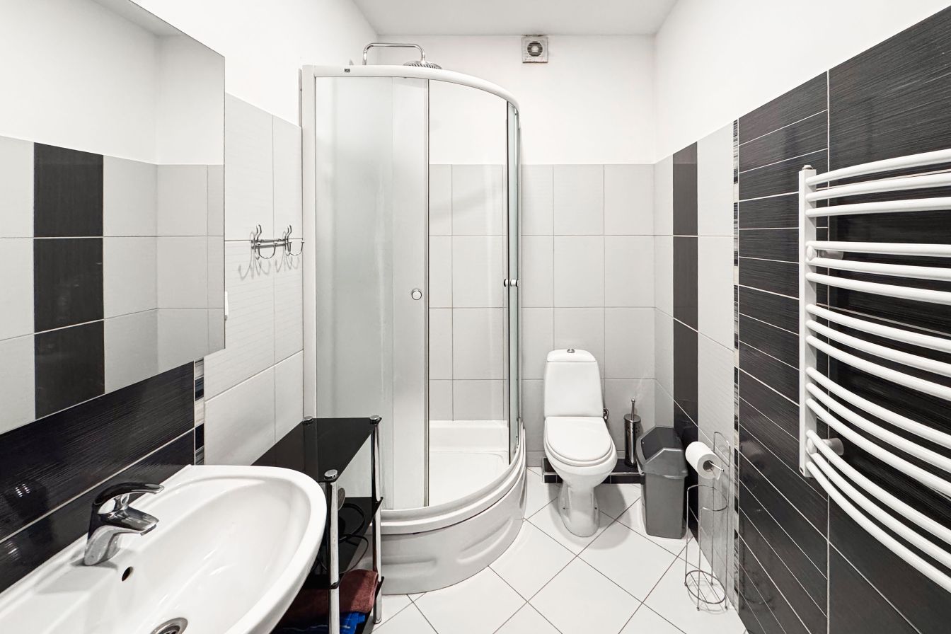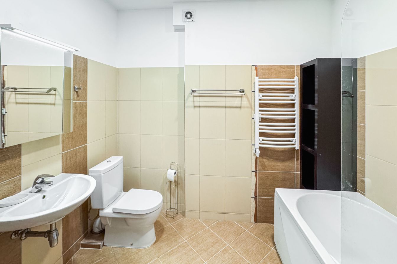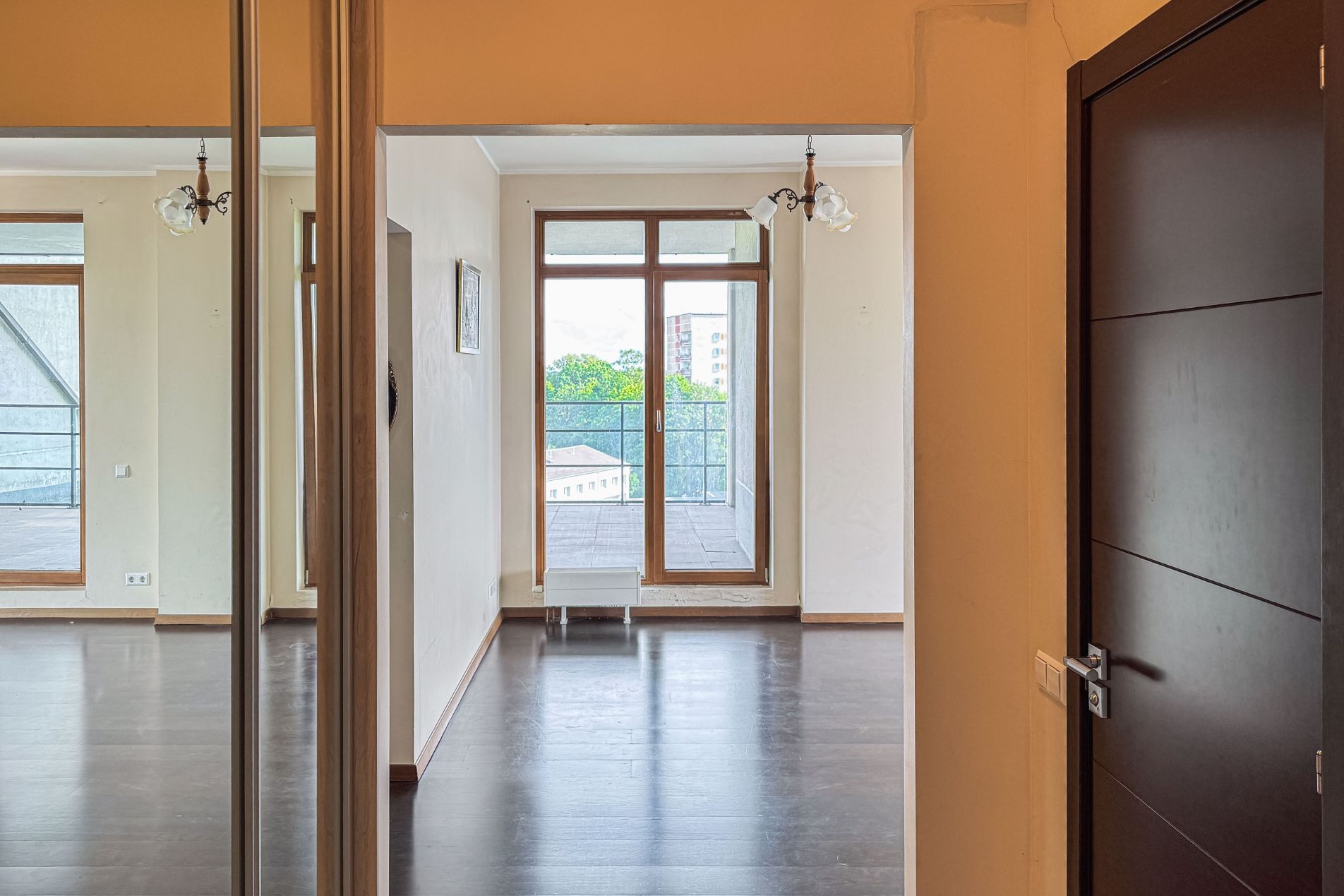 Spacious living room combined with kitchen area, with access to the balcony and terrace. Master bedroom with a private bathroom. Two bedrooms – one of them is walk-through (with the option to redesign). Entrance hall, 2 separate bathrooms, built-in wardrobes.