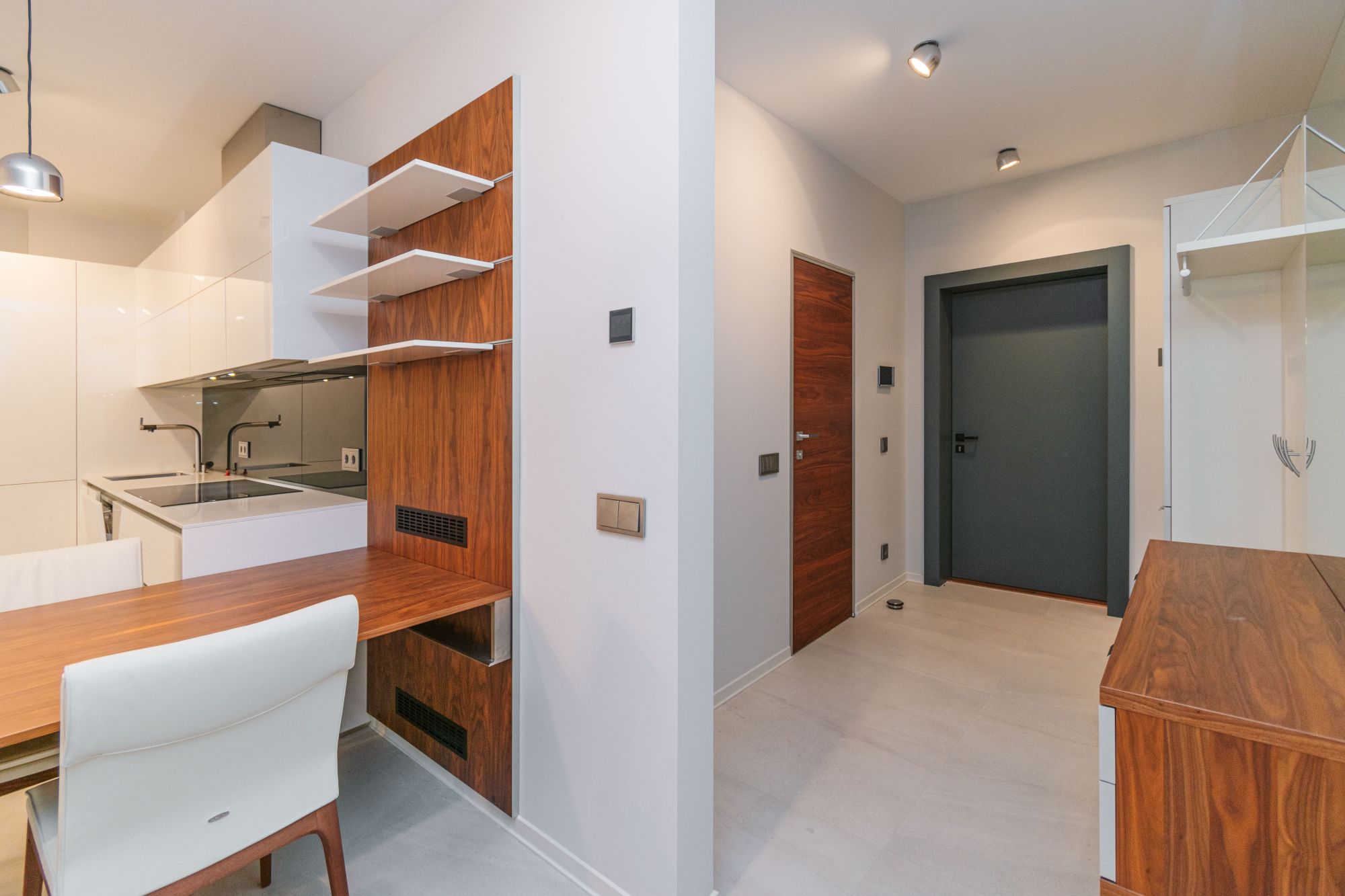 The apartment has a well-thought-out layout, consisting of a living room combined with a kitchen area, 3 bedrooms and 3 bathrooms. The apartment has built-in wardrobes and kitchen appliances, curtains, light fixtures.
