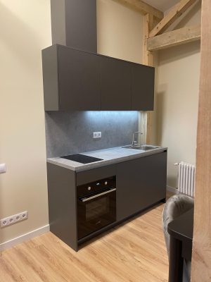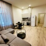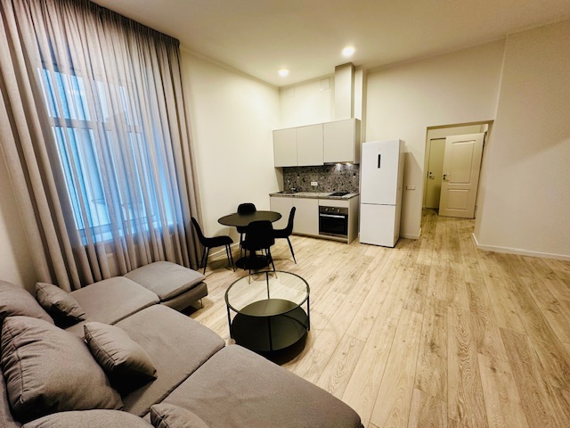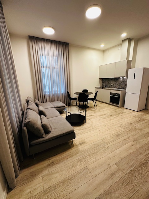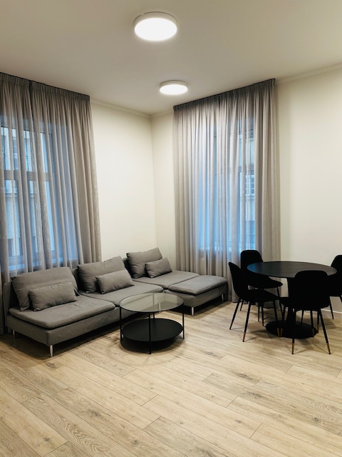 For rent a furnished 2-room apartment in a renovated eclectic style in a residential building in the quiet center of Riga, at Pulkveža Brieža Street 10. The apartment is located on the 3rd floor of a building with a total area of 55.5 m2. The apartment has a well-thought-out layout, consisting of a hallway, a living room combined with a kitchen area, a bedroom, a spacious bathroom with a shower. The apartment has built-in wardrobes and kitchen appliances, curtains, light fixtures.