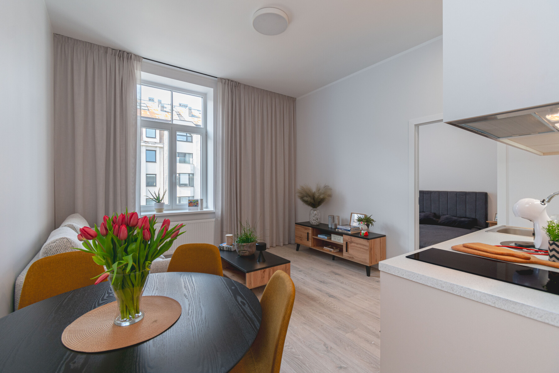 The property has a well-maintained territory with video surveillance and is designed with residents’ safety in mind. The building is equipped with a KONE elevator and is insulated according to the highest construction standards, ensuring low monthly utility costs. The building is managed by SIA “VESTABALT,” one of the leading property management companies in Latvia with 32 years of experience. Apartment owners are provided with 24/7 technical support, a transparent monthly billing system, and additional services, including apartment cleaning and technical maintenance.