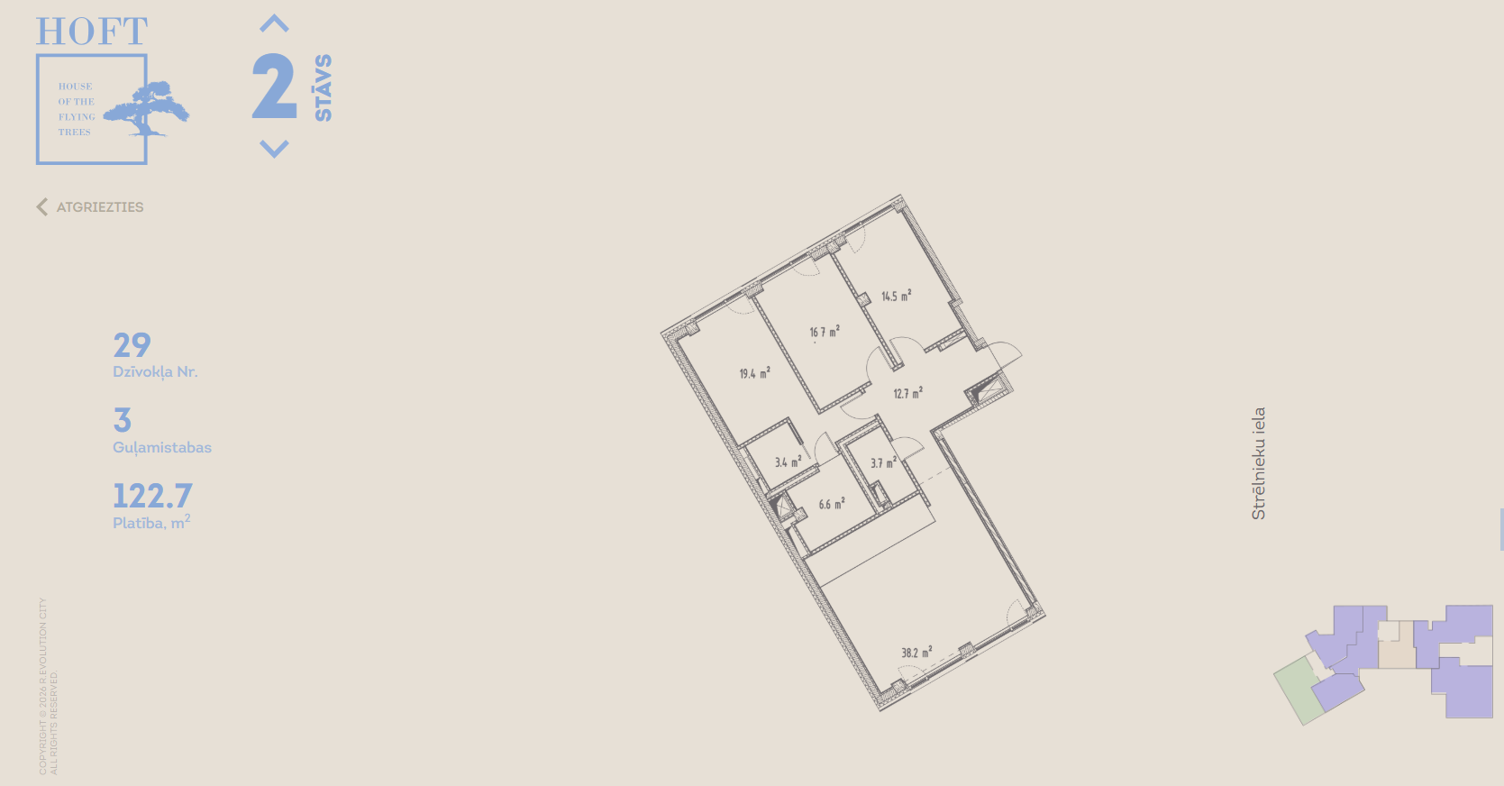 The building on Strelnieku Street is an architectural monument under reconstruction with two additional floors. The building in the courtyard is a new building. The project includes 42 apartments. The HOFT project includes two 7-story residential buildings with underground parking.