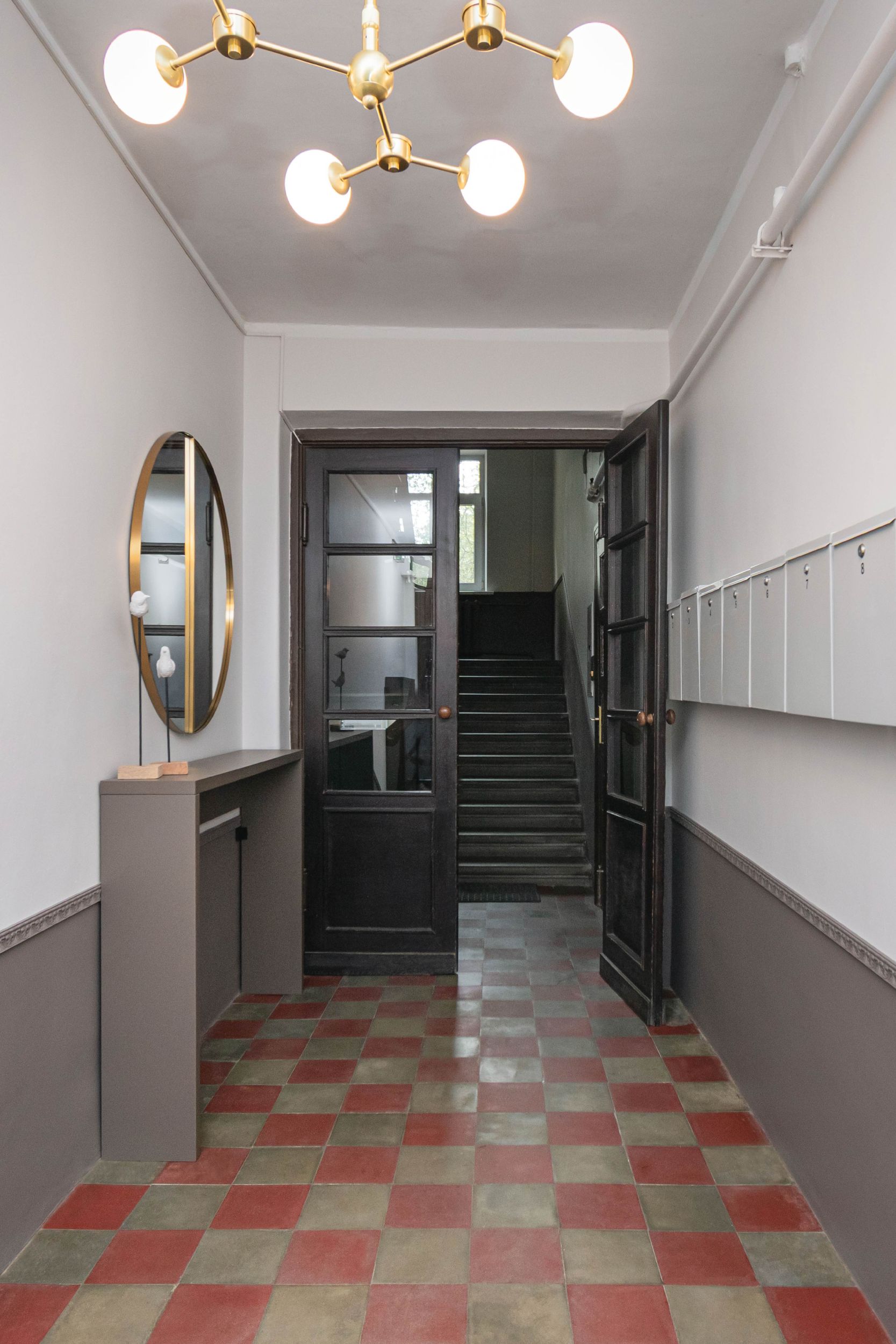 Lockable staircase, windows are facing the courtyard and the street. Good location - quiet center of Riga, Viesturdārzs, restaurants, schools, beauty and health institutions. Only a 20-minute walk to the Esplanade.