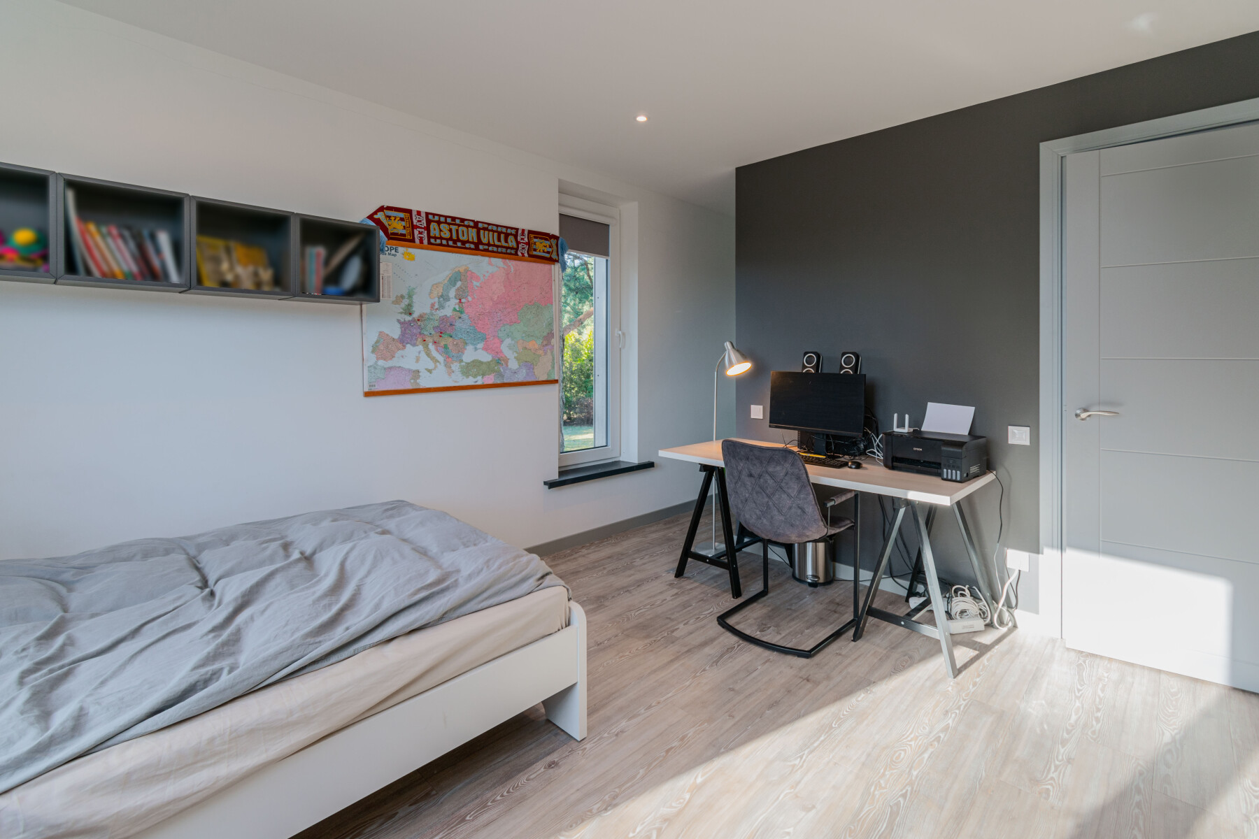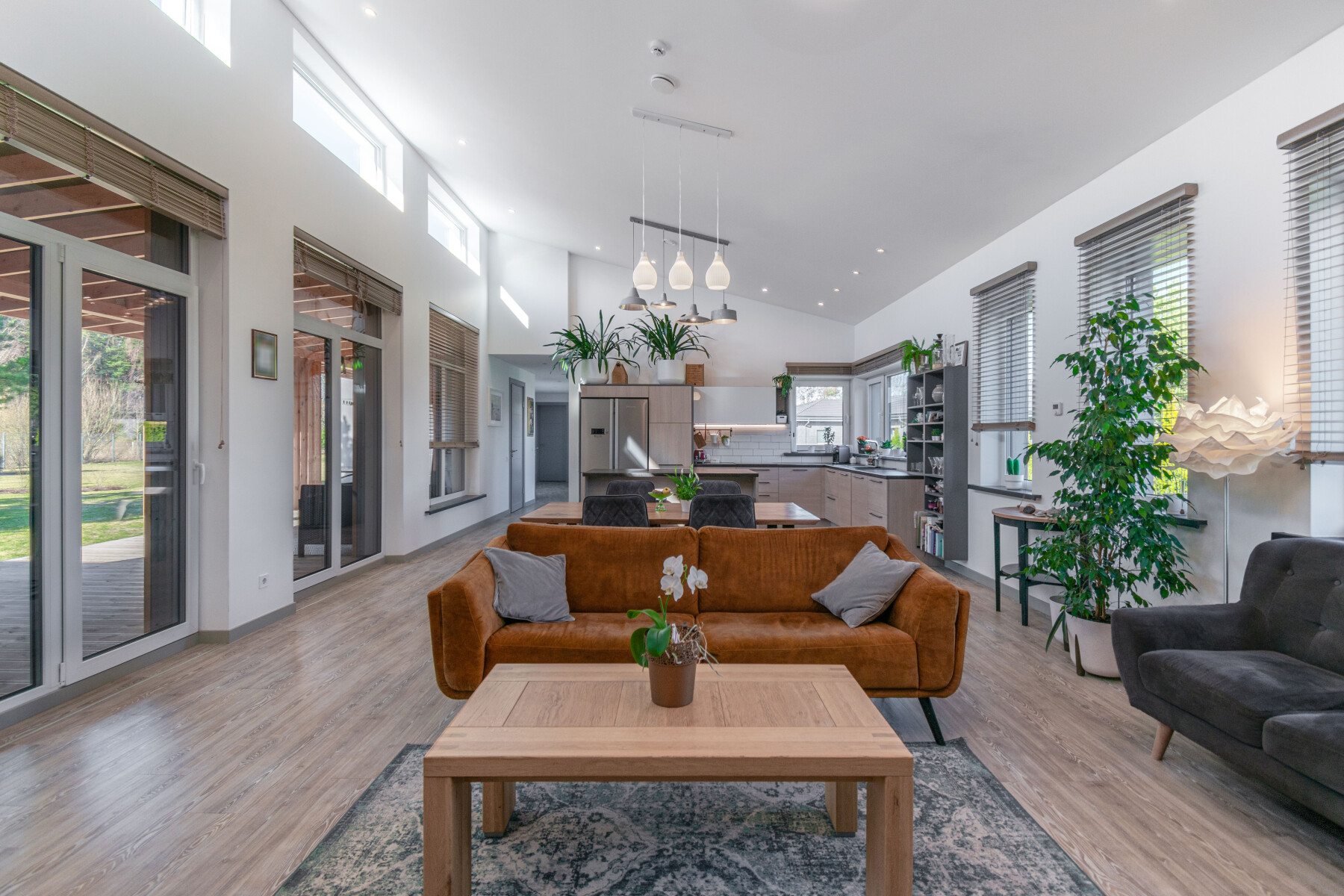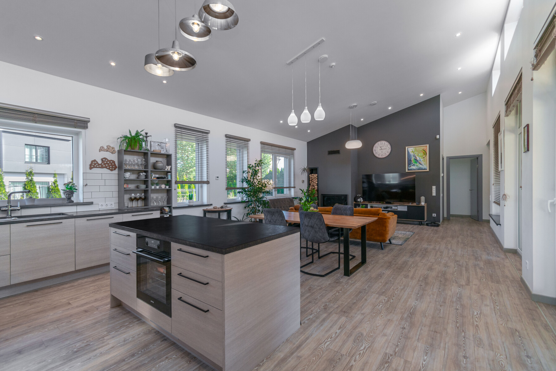 A modern and energy-efficient private house with a large and well-maintained backyard area is offered for purchase. The interior is designed in a Scandinavian style, which fits perfectly with the thoughtful planning of the property.