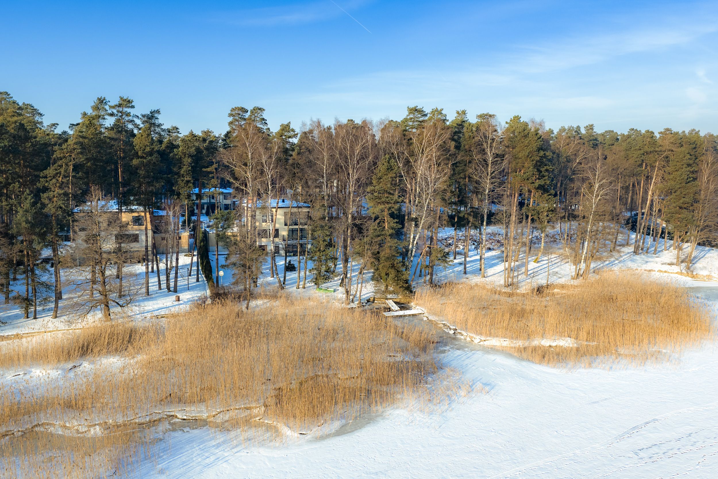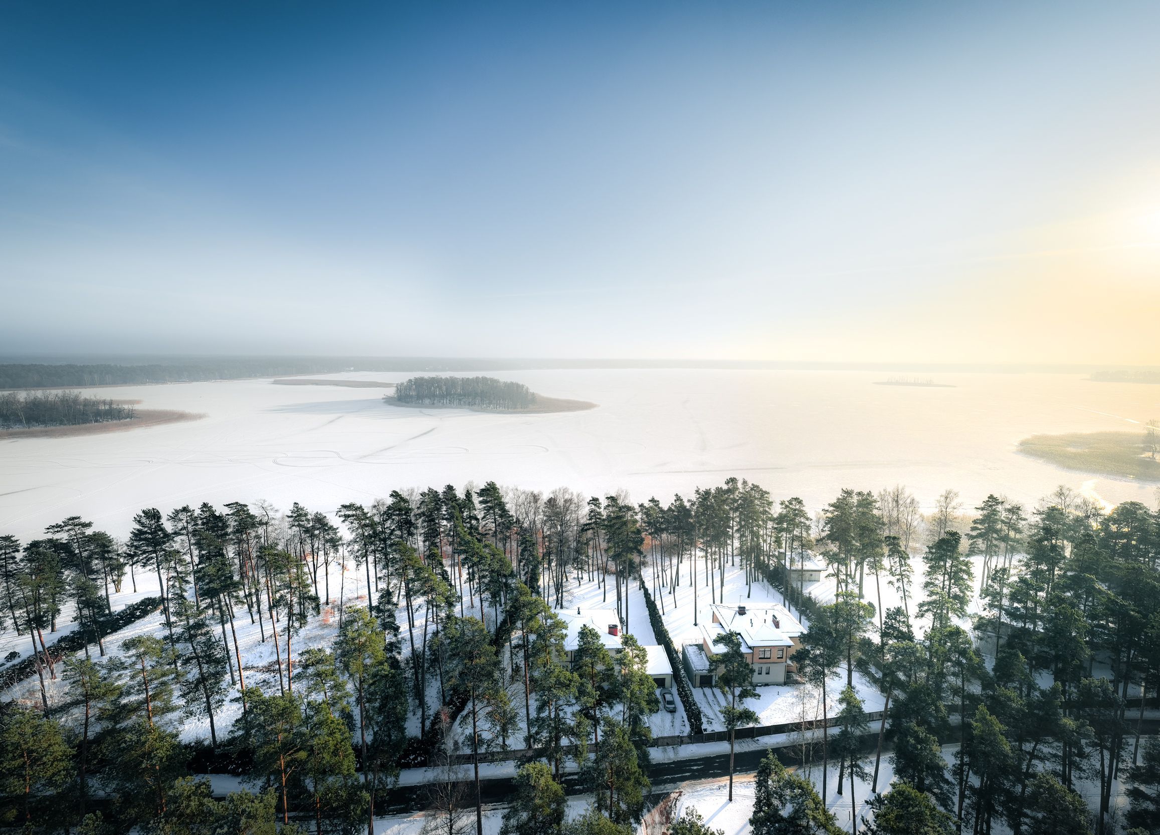 The interior spaces and terraces open onto wide panoramic views of the lake, ensuring a continuous connection with the surrounding landscape throughout the year. Mornings here begin with reflections of sunrise on the water’s surface, a light veil of mist, and birdsong, while evenings allow you to enjoy peaceful, picturesque sunsets. The changing seasons become a natural part of everyday life – from the light of spring and summer evenings by the water to the richness of autumn colours and the calm of winter.