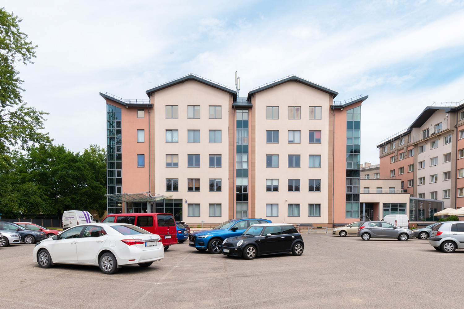 Vienas autostāvvietas cena 50EUR vai pēc vienošanās. Pieejamas 3 dažādas iespejās auto novietošanai – slēgtā teritorijā, pazemē zem ēkas, vai pagalmā aiz ēkas.
