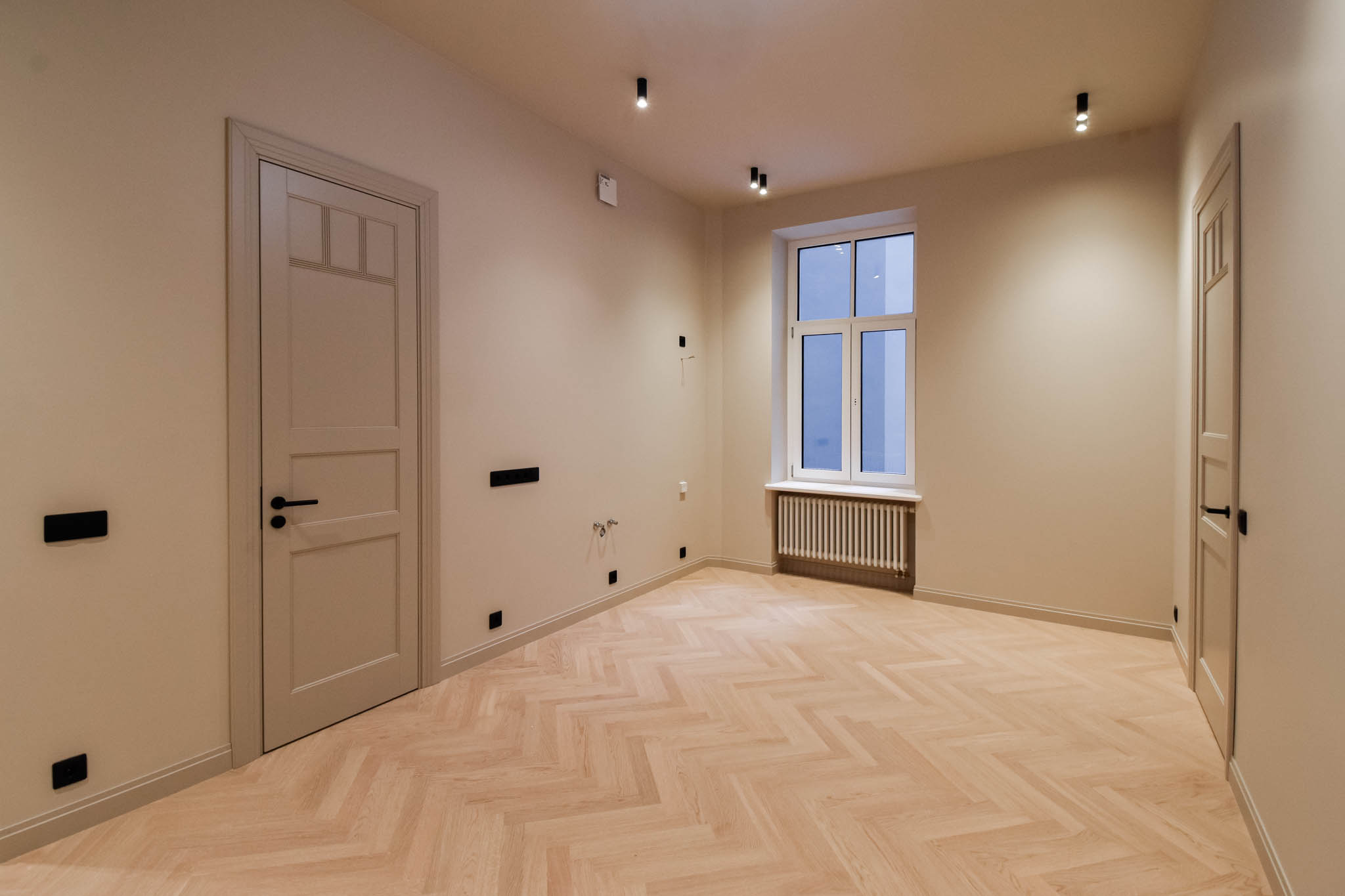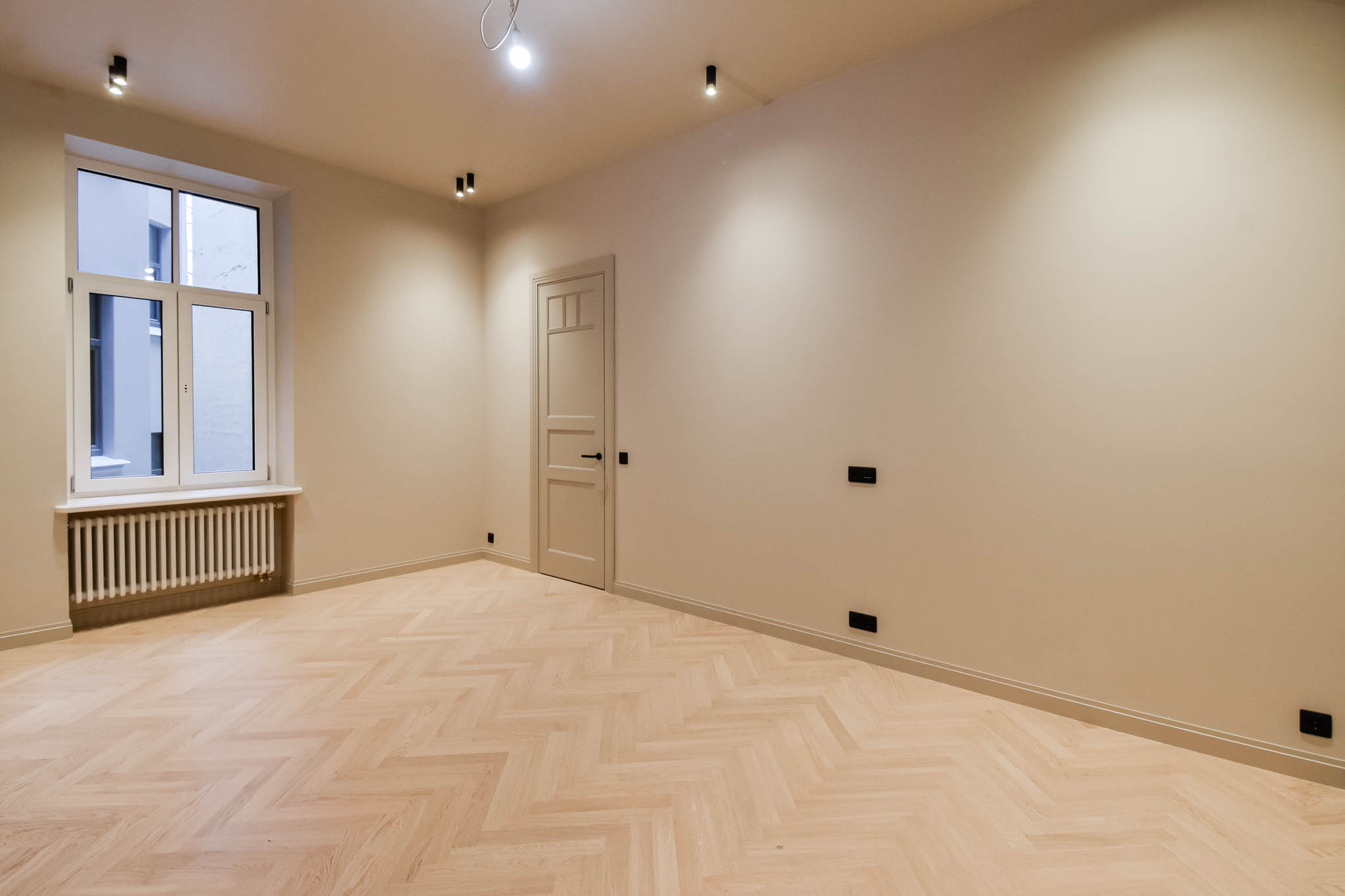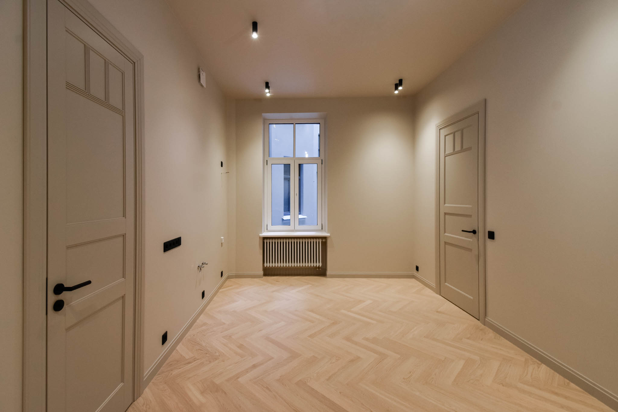 Dzīvokļi pieejami ar balto un pelēko apdari, sniedzot iespēju radīt interjeru katra gaumei un vajadzībām. Iekšpagalma mājā pieejami 1-2 istabu dzīvokļi ar pārdomātiem plānojumiem.