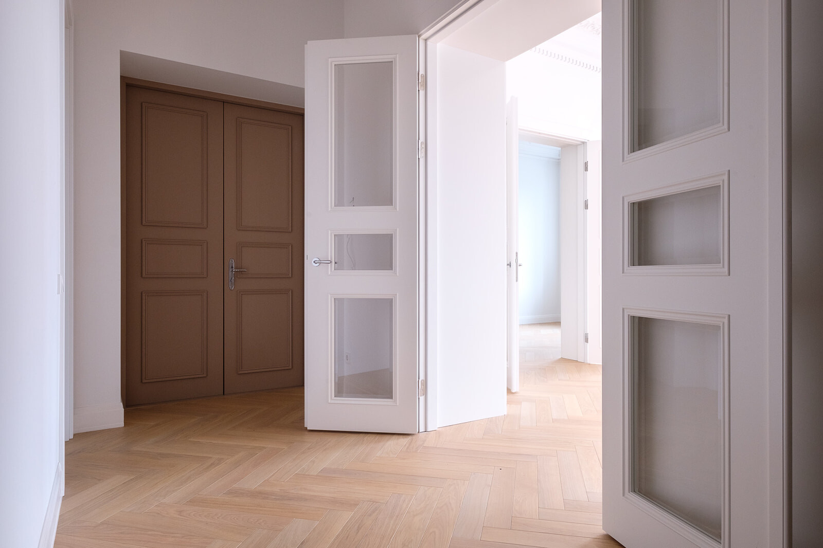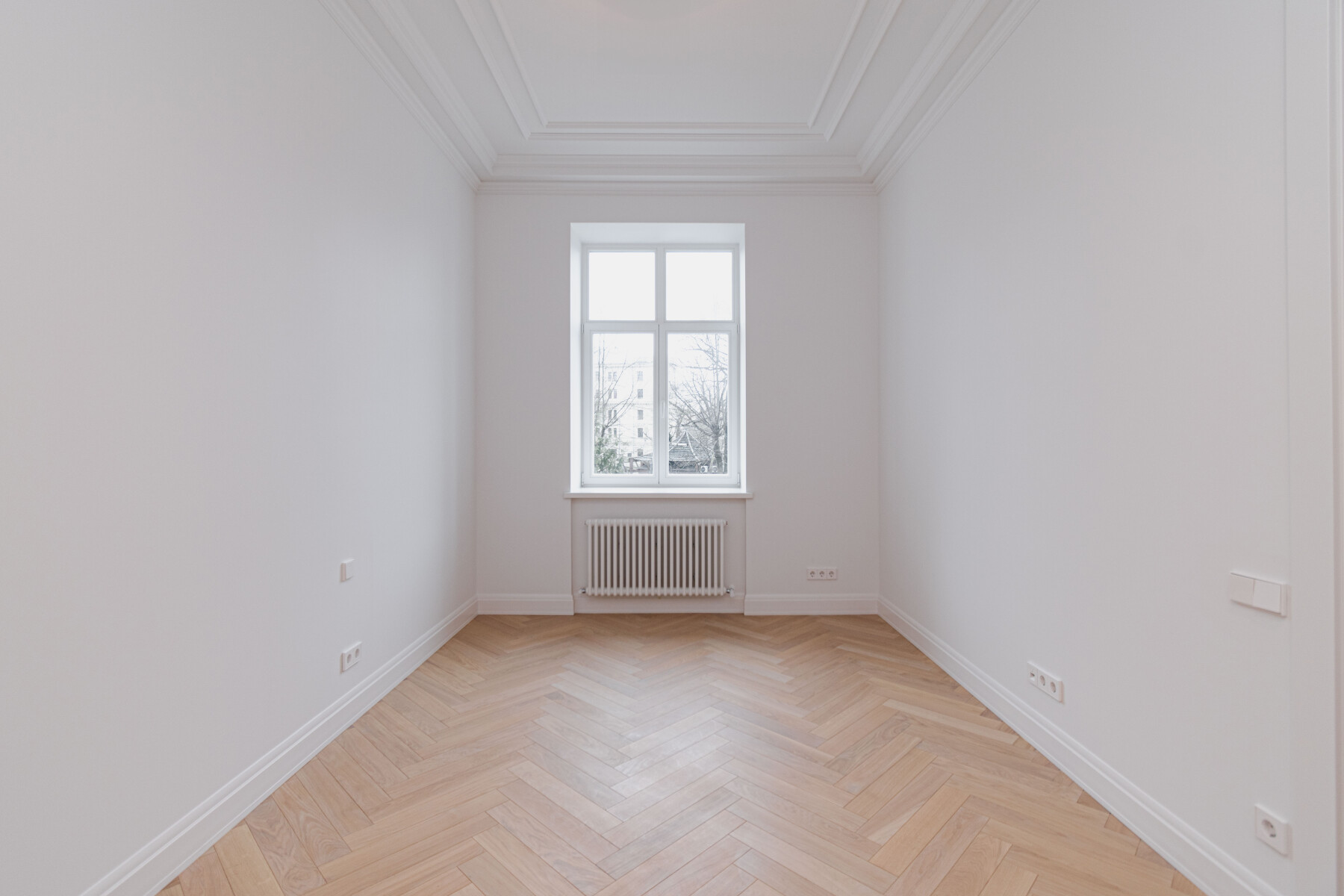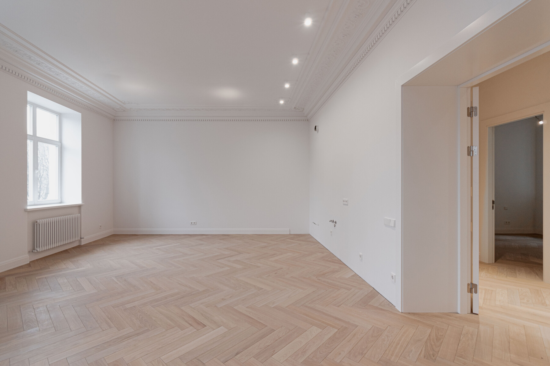 Renovēta ēka ar izcilu un augstas kvalitātes dzīvokļu iekšējo apdari – ozola parkets, izmeklēta furnitūra, durvju rokturi un radiatori, akmens masas vannas, augstas kvalitātes santehnika no ražotāja Flaminia, pelēkbaltas marmora imitācijas itāļu flīzes, ūdens maisītāji no ražotāja Giulini. Īpašu vērtību dzīvokļiem piešķir restaurētie griestu dekori un karnīzes, izvelētās klasiskās augstās grīdlīstes, pēc oriģināla dizaina ražotas 2,4 m augstas durvis.
