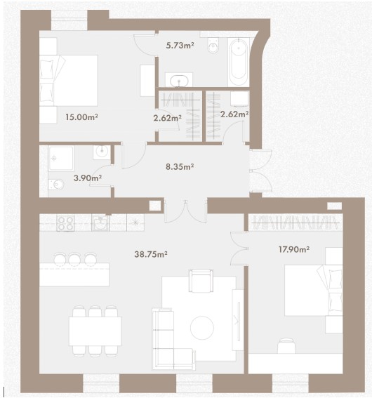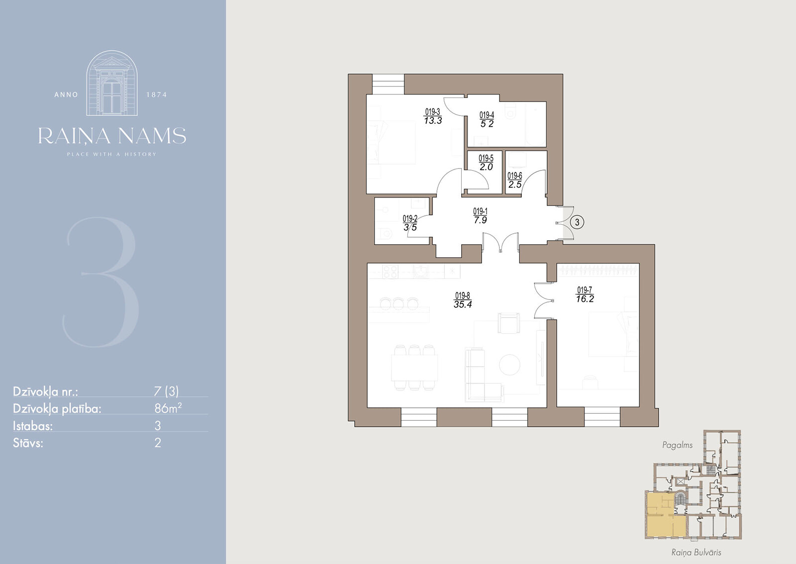 Jaunajā projektā Raiņa nams pārdod ar pārdomātu plānojumu 3-istabu dzīvokli 86m2 platībā ar unikālu skatu uz Vecrīgu.