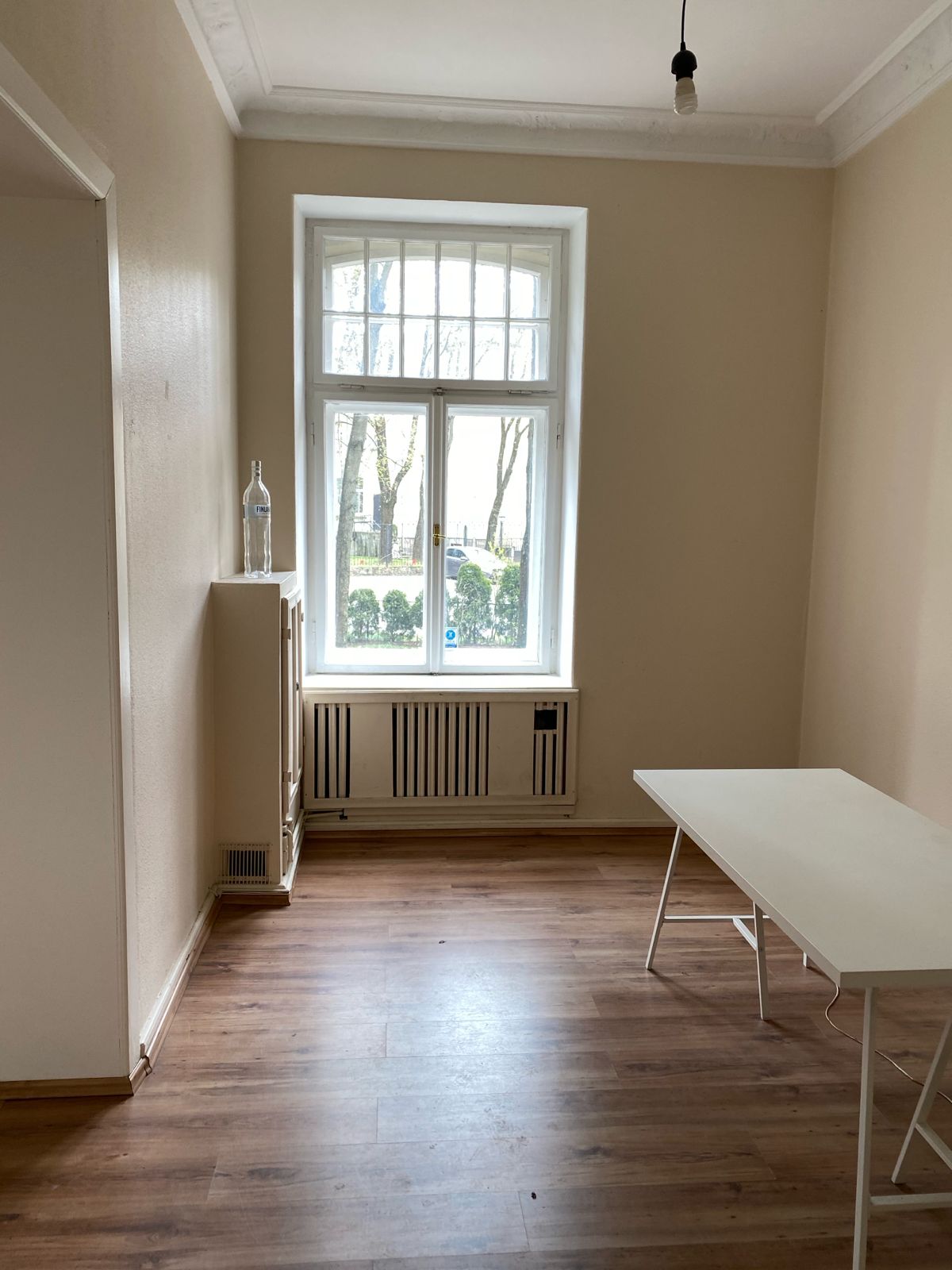 Dzīvokļa plānojums ir ērts gan ģimenes dzīvei, gan reprezentatīvām vajadzībām (piemēram, birojam vai praksei). Telpas ir plašas un viegli pielāgojamas dažādām dzīves situācijām. Dzīvoklis atrodas slēgtā pagalma ēkas augstajā pirmajā stāvā, ar lieliem logiem un augstajiem griestiem, kas sniedz plašuma sajūtu. Dzīvoklī ir saglabājušies oriģinālie ģipšu veidojumi, kas eleganti papildina interjeru.