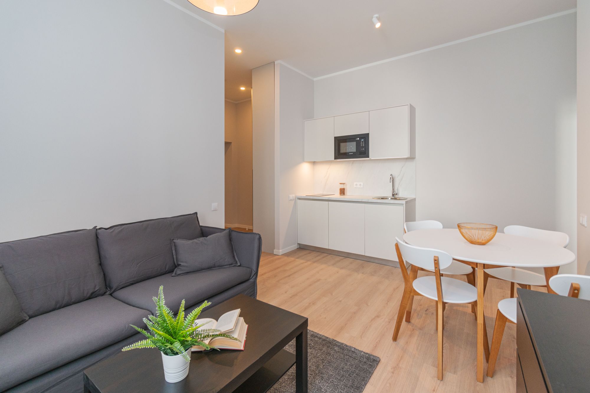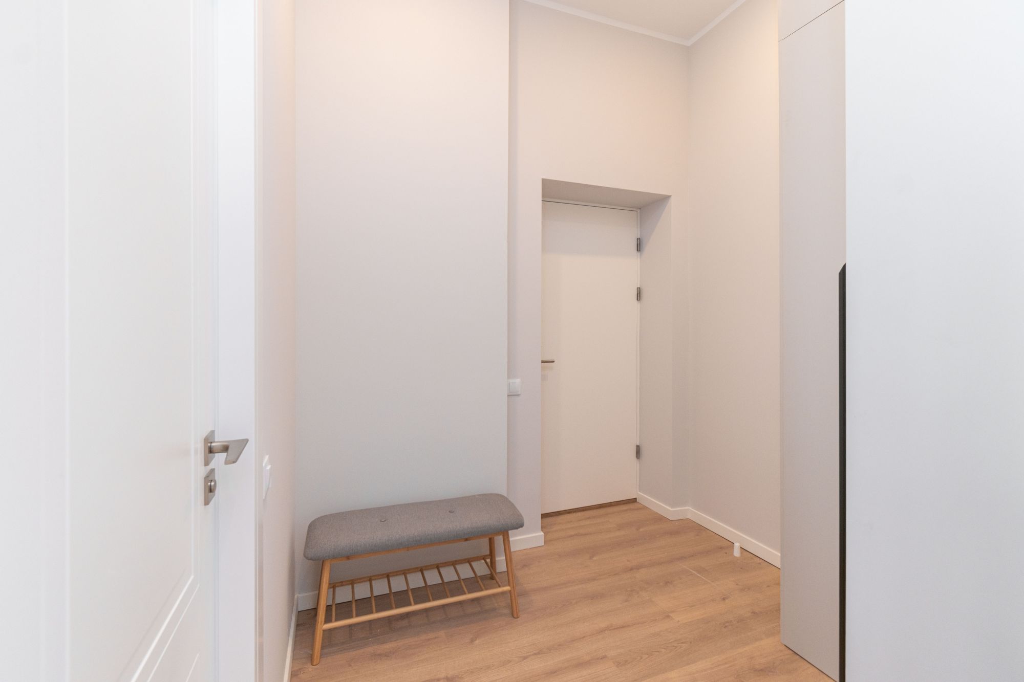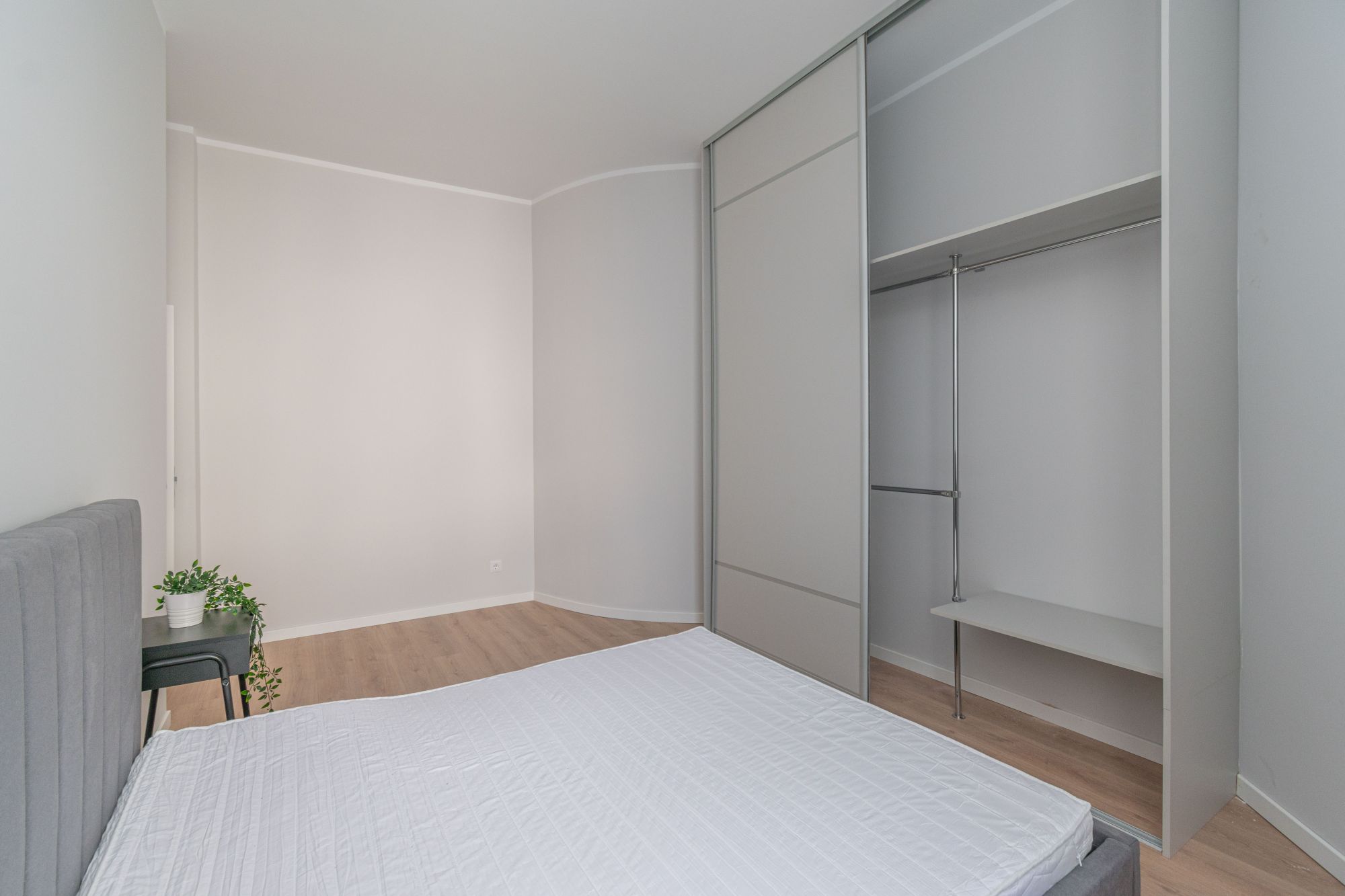 Divas izolētas guļamistabas, dzīvojamā istaba ar virtuves zonu, vannas istaba ar dušu, priekštelpa.