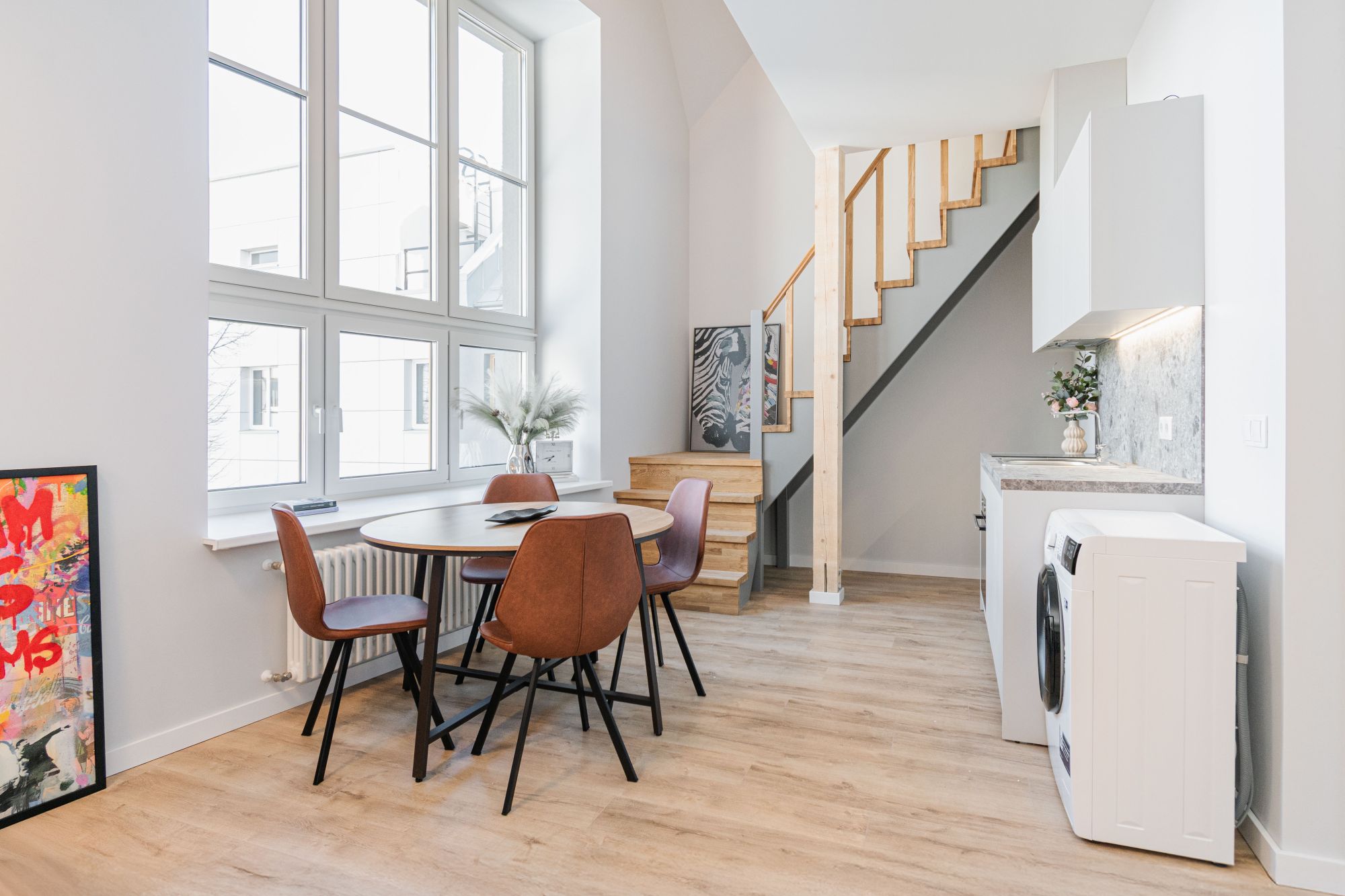 Izīrē modernu, svaigi izremontētu lofta stila 2 līmeņu dzīvokli 48,1 m² platībā. Dzīvoklis atrodas 6./7. stāvā restaurētā jūgendstila ēkā Rīgas centrā. Dzīvoklis ideāli piemērots vienai personai vai pārim, kas novērtē kvalitāti, klusumu un ērtu lokāciju.
