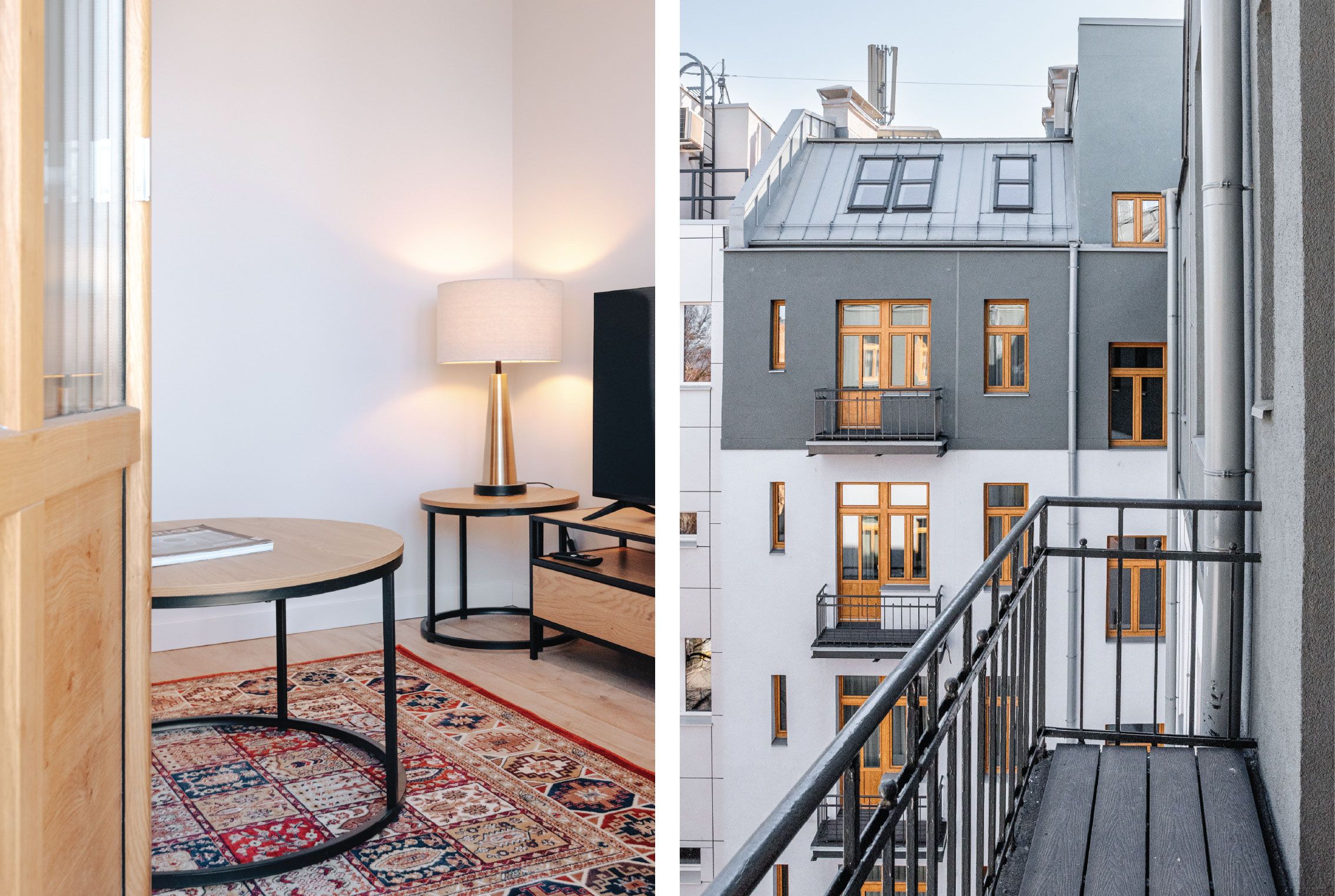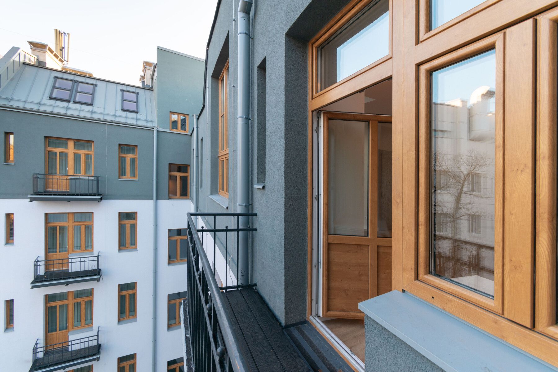– Balkons ar skatu uz klusu iekšpagalmu.