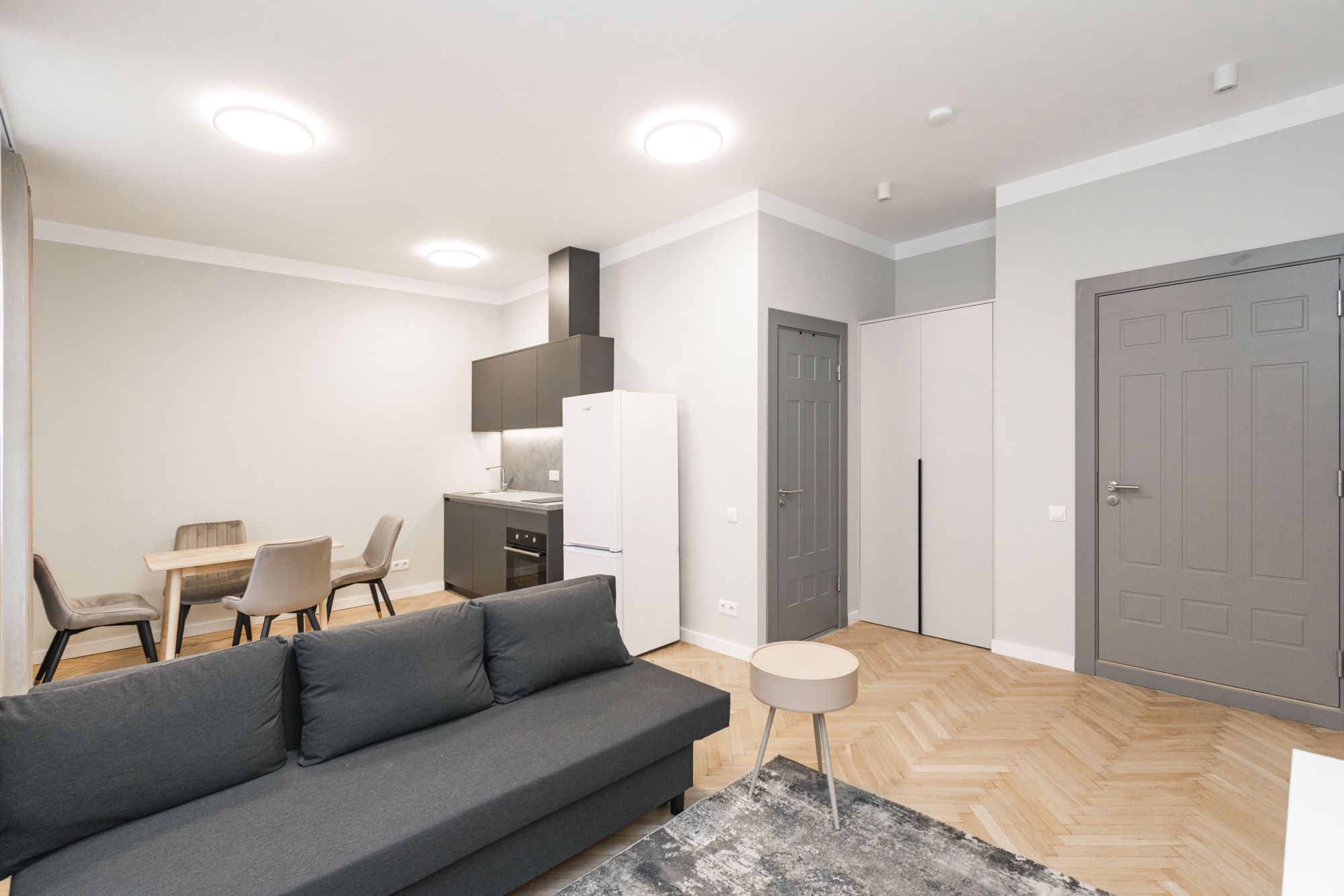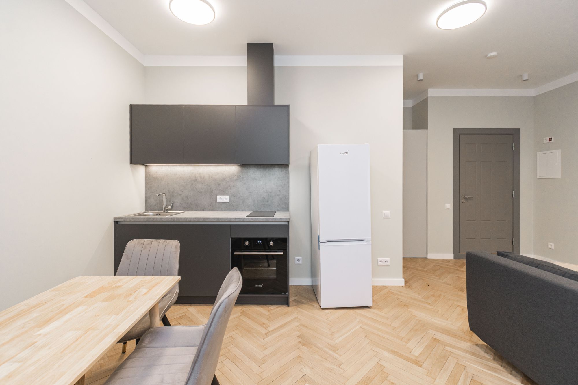 Izīrē mēbelētu studio tipa dzīvokli restaurētā vēsturiskā jūgendstila ēkā Rīgas centrā, Krišjāņa Valdemāra ielā 61. Dzīvoklis atrodas ēkas 2. stāvā, ar kopējo platību 26.8 m². Gaišais studio tipa dzīvoklis ietver virtuves zonu, iebūvētos skapjus, atpūtas zonu ar ēdamgaldu un guļamdīvānu. Dzīvoklis aprīkots ar sadzīves tehniku, aizkariem un gaismas ķermeņiem. Dzīvokļa logi ir vērsti uz Hanzas ielas pusi. Īpašumā ir labiekārtota teritorija, kurā tiek veikta videonovērošana, nodrošinot īrnieku drošību. Ēkā uzstādīts KONE lifts, un tā ir siltināta, atbilstoši augstākajiem celtniecības standartiem, kas nodrošina zemus ikmēneša komunālos maksājumus. Ēku apsaimnieko SIA "VESTABALT", viens no vadošajiem ēku apsaimniekotājiem Latvijā ar 32 gadu pieredzi. Īrniekiem tiek piedāvāts 24/7 diennakts atbalsta serviss, pārskatāma rēķinu apmaksas sistēma un papildu pakalpojumi, tostarp dzīvokļa uzkopšana. Dzīvoklis atrodas izcilā lokācijā – dažu minūšu gājiena attālumā no Rīgas vēsturiskā centra, Vecrīgas, iepirkšanās centra "Galerija Rīga", Dailes teātra, Skonto stadiona, KIM Laikmetīgās mākslas centra, kā arī vairākiem restorāniem (Portofino, Riviera, Yakuza, Zivju Lete, Chef’s Corner, Mulberry), lielveikaliem (Rimi, LIDL, Maxima) un sabiedriskā transporta pieturām. Ikmēneša īres maksa – 500 EUR, papildus jāmaksā apsaimniekošanas maksa un komunālie maksājumi. Pie īres līguma noslēgšanas tiek prasīts drošības depozīts divu mēnešu īres apmērā. Minimālais īres termiņš – 1 gads.