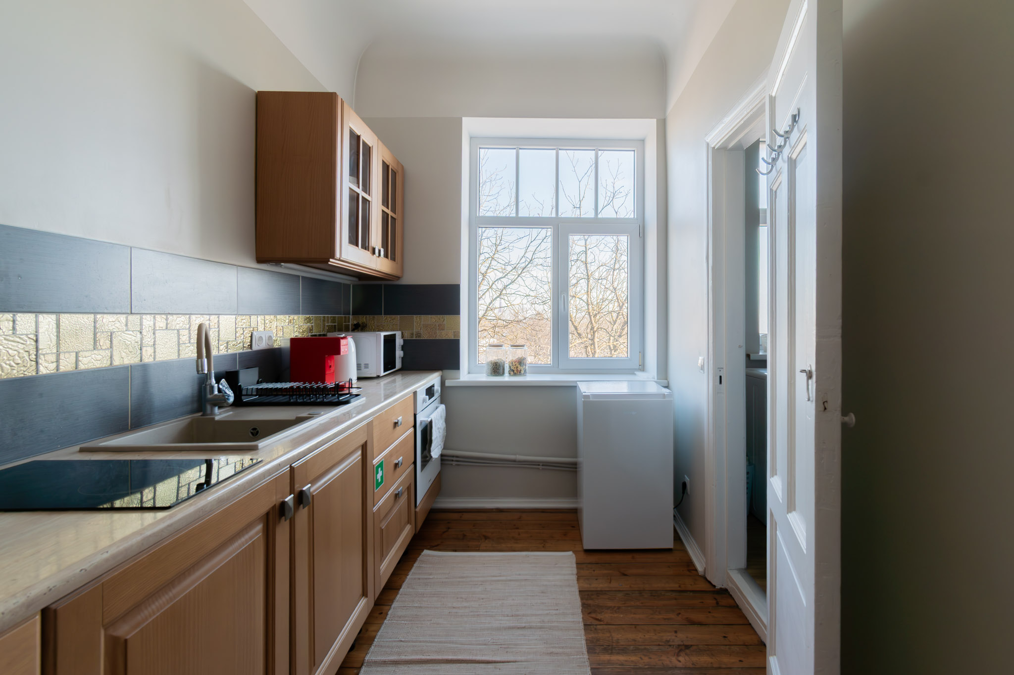 Dzīvoklis aprīkots ar visu nepieciešamo pilnvērtīgai dzīvošanai.