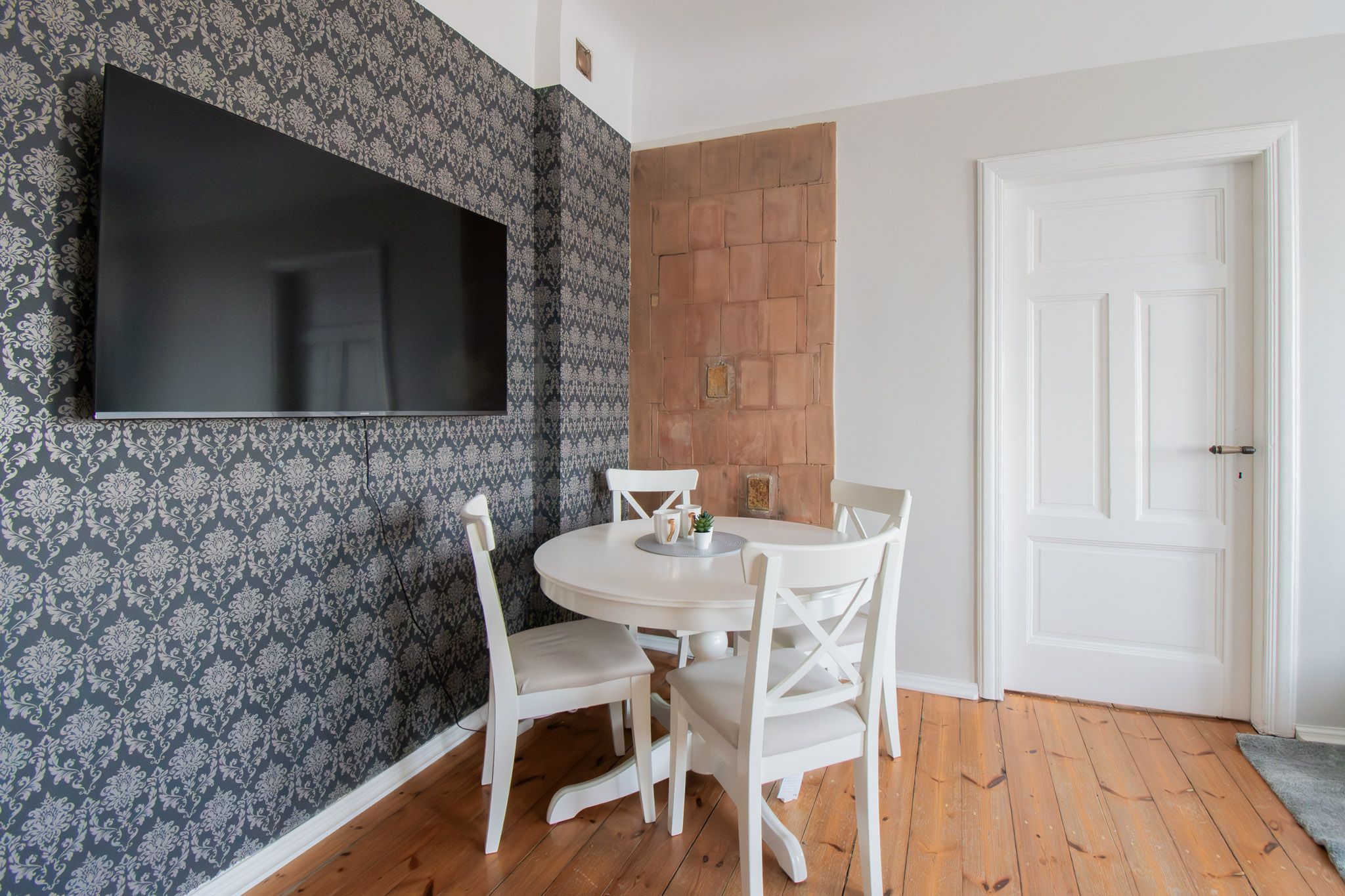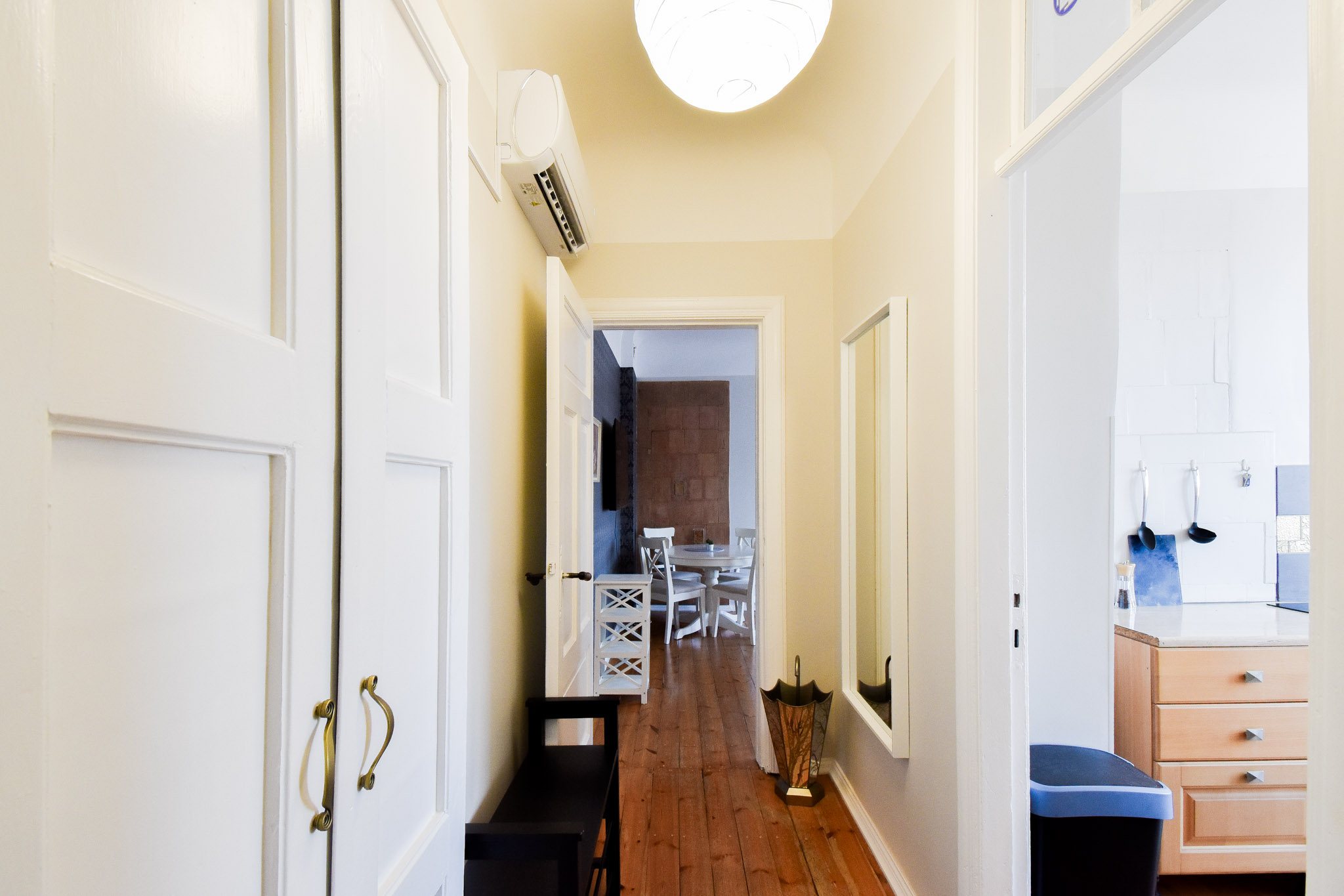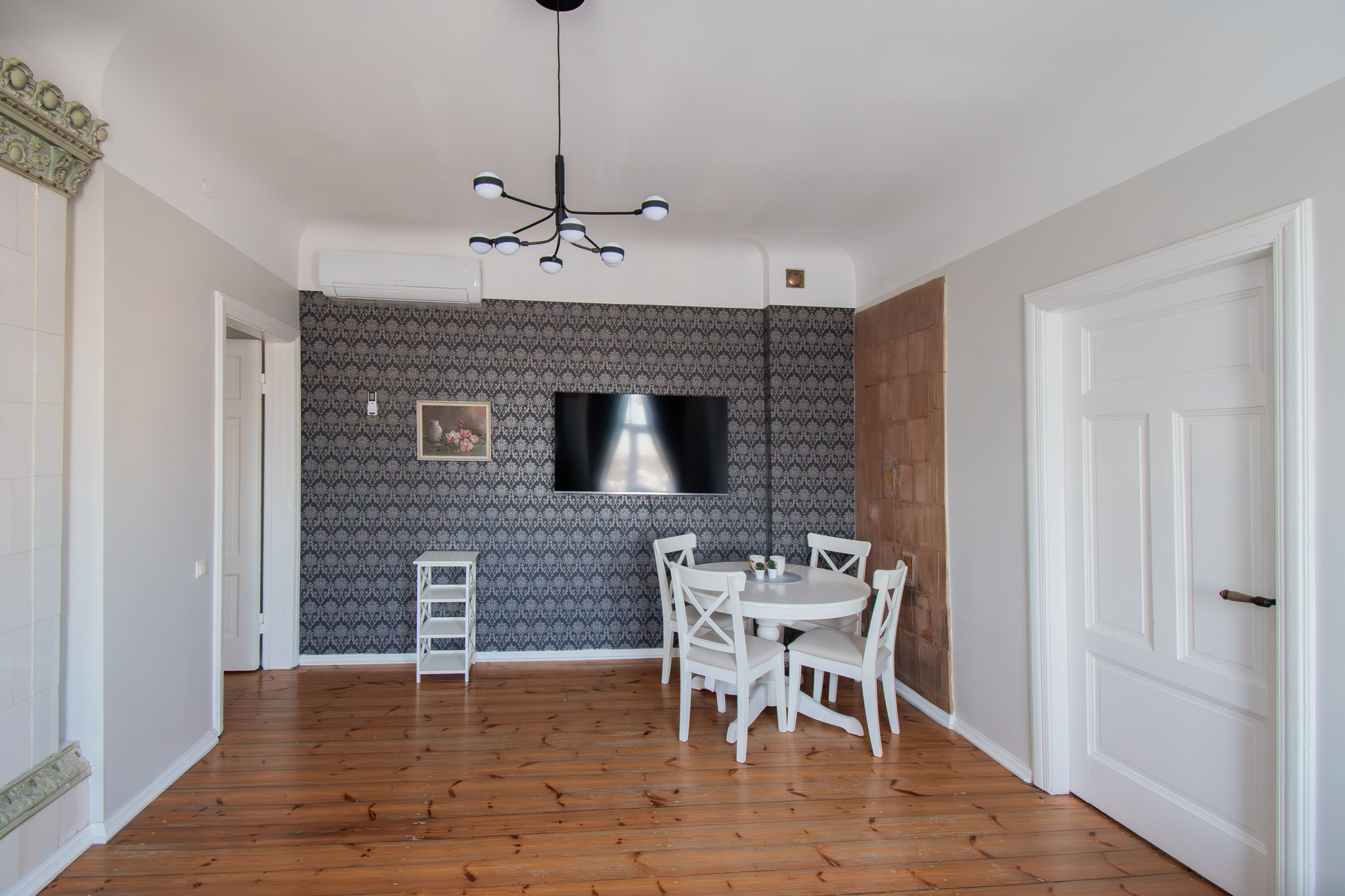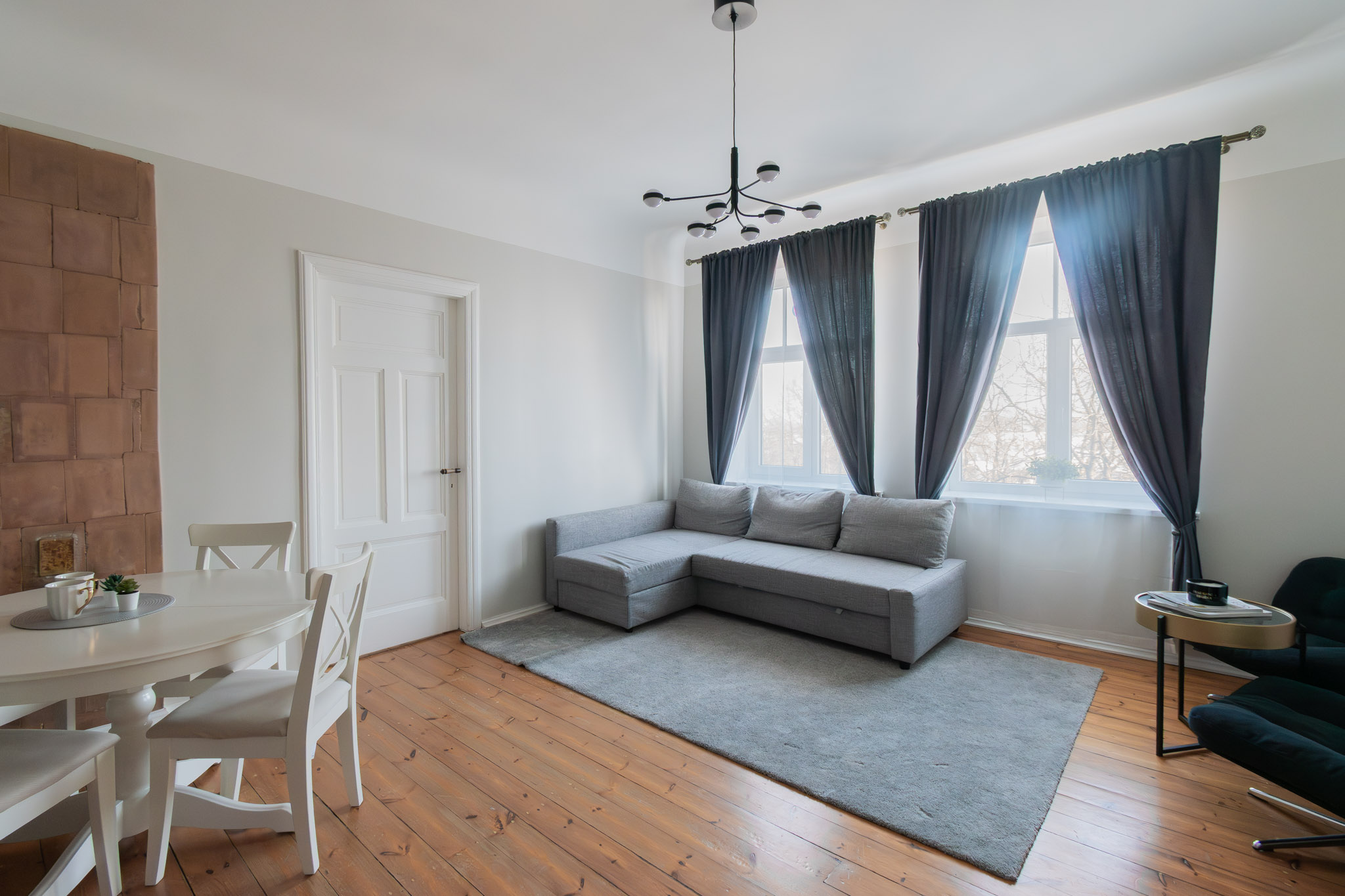 Dzīvoklim ir malkas un siltumsūkņa gaiss-gaiss apkure. (pieejams šķūnītis malkas glabāšanai pagalmā)