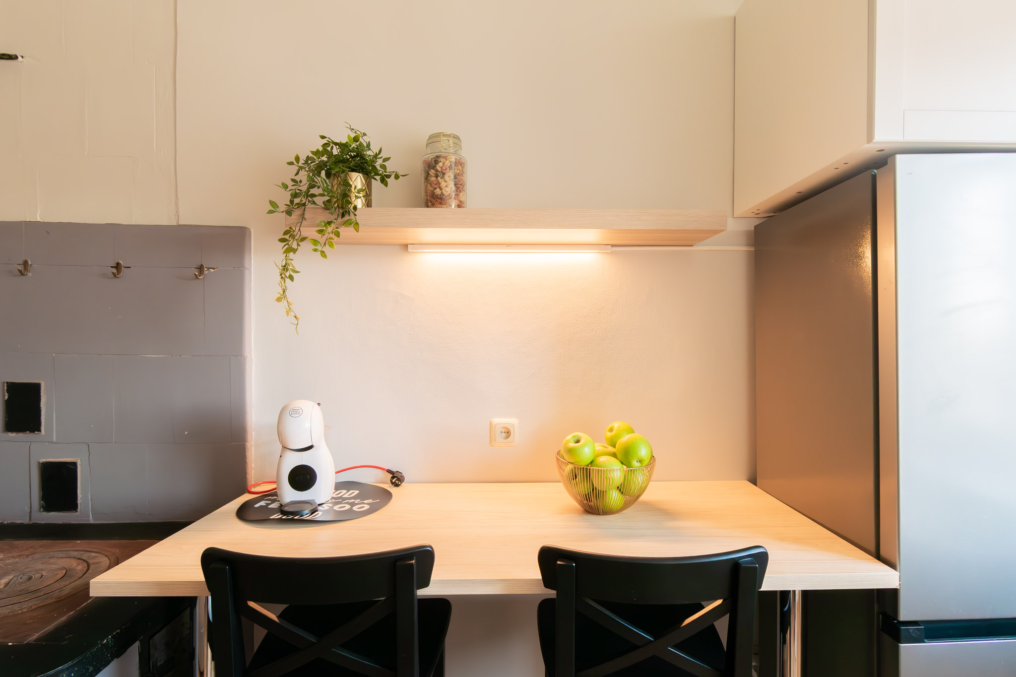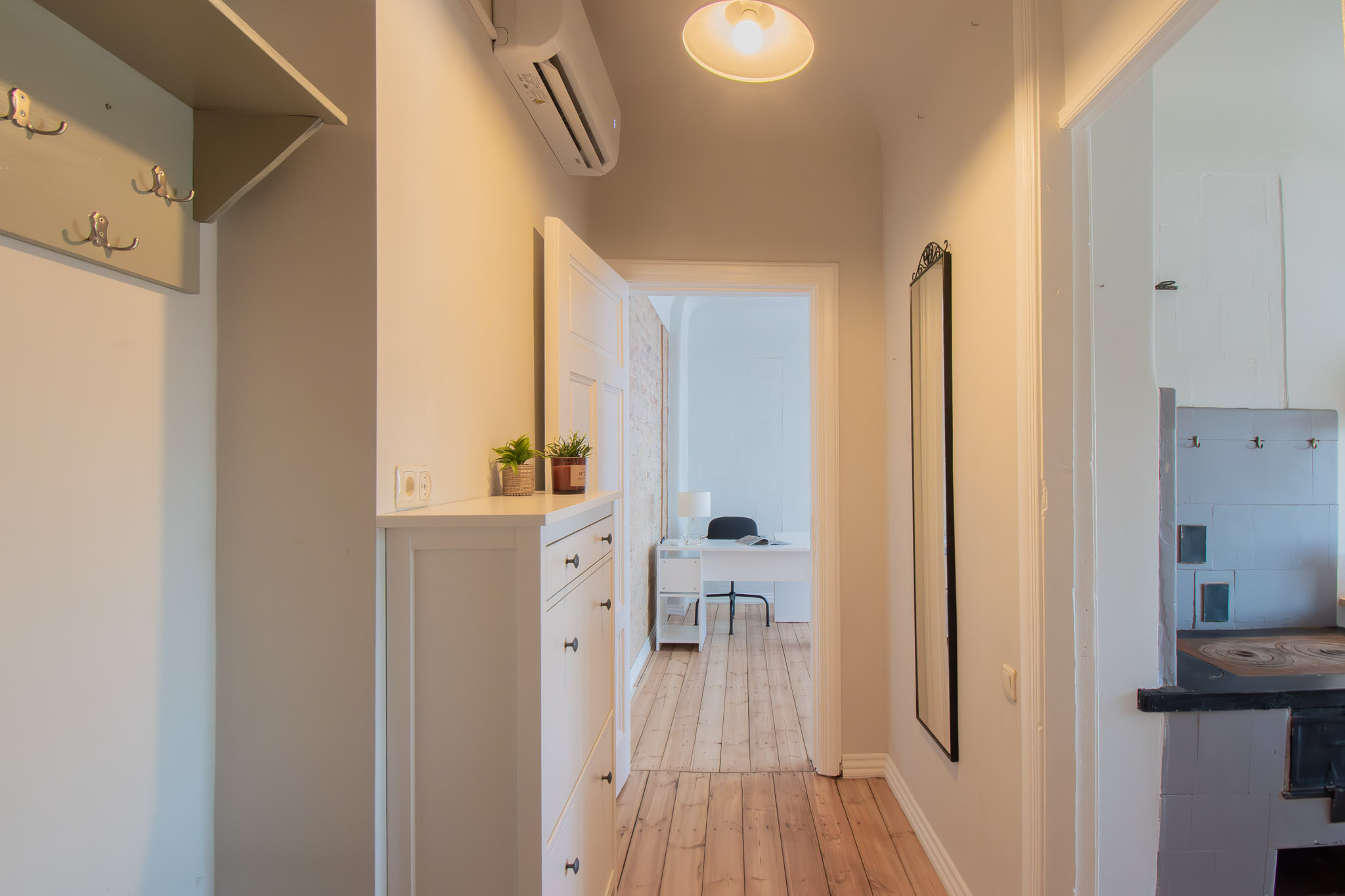 Dzīvoklim ir malkas un siltumsūkņa gaiss-gaiss apkure. (pieejams šķūnītis malkas glabāšanai pagalmā)