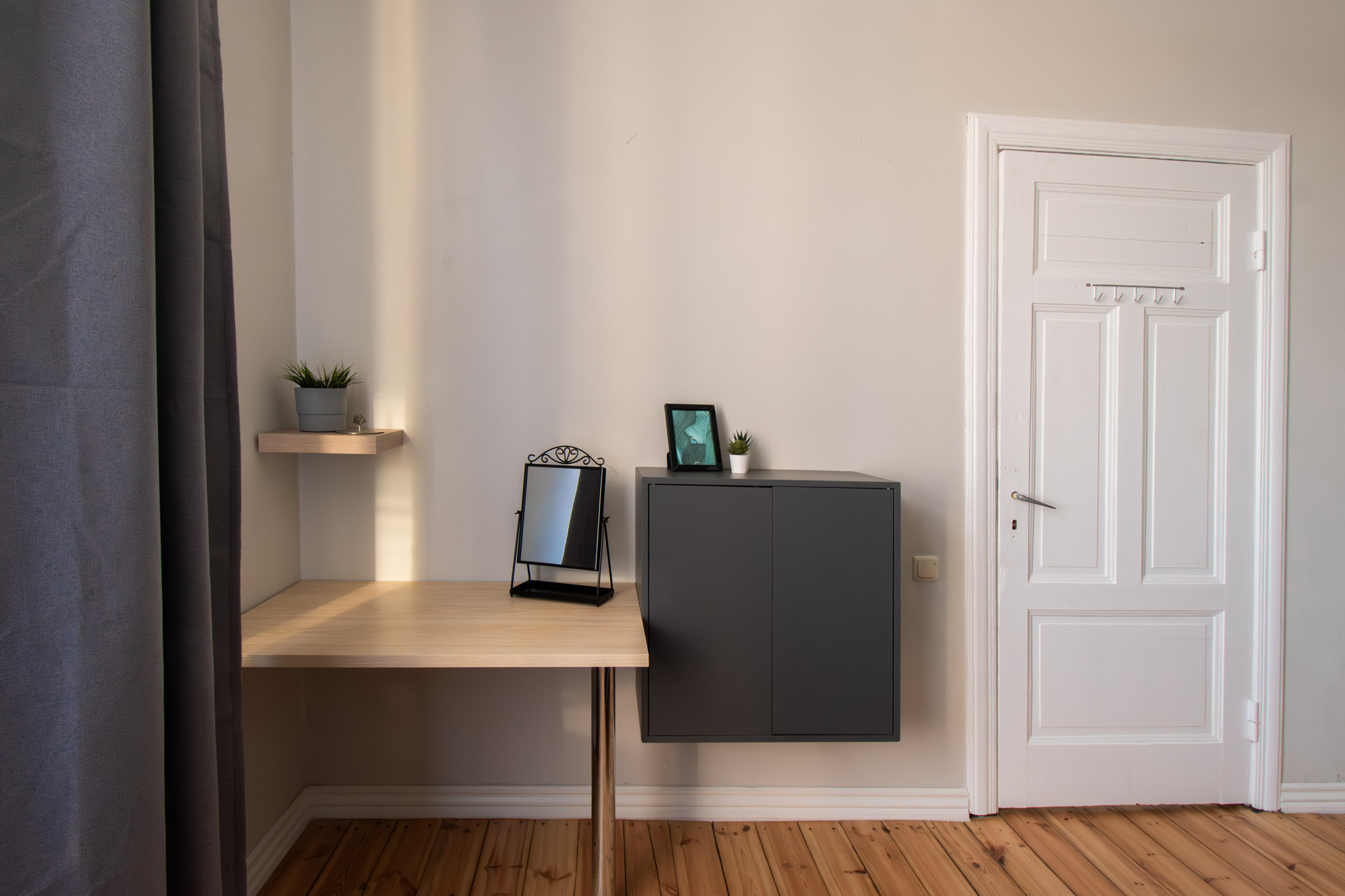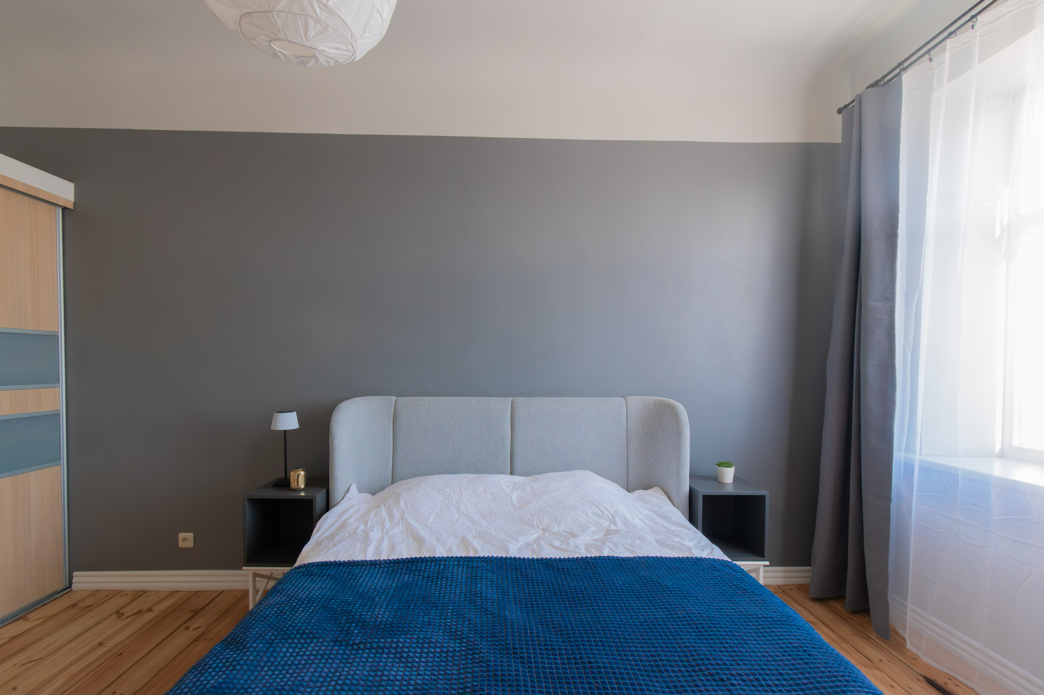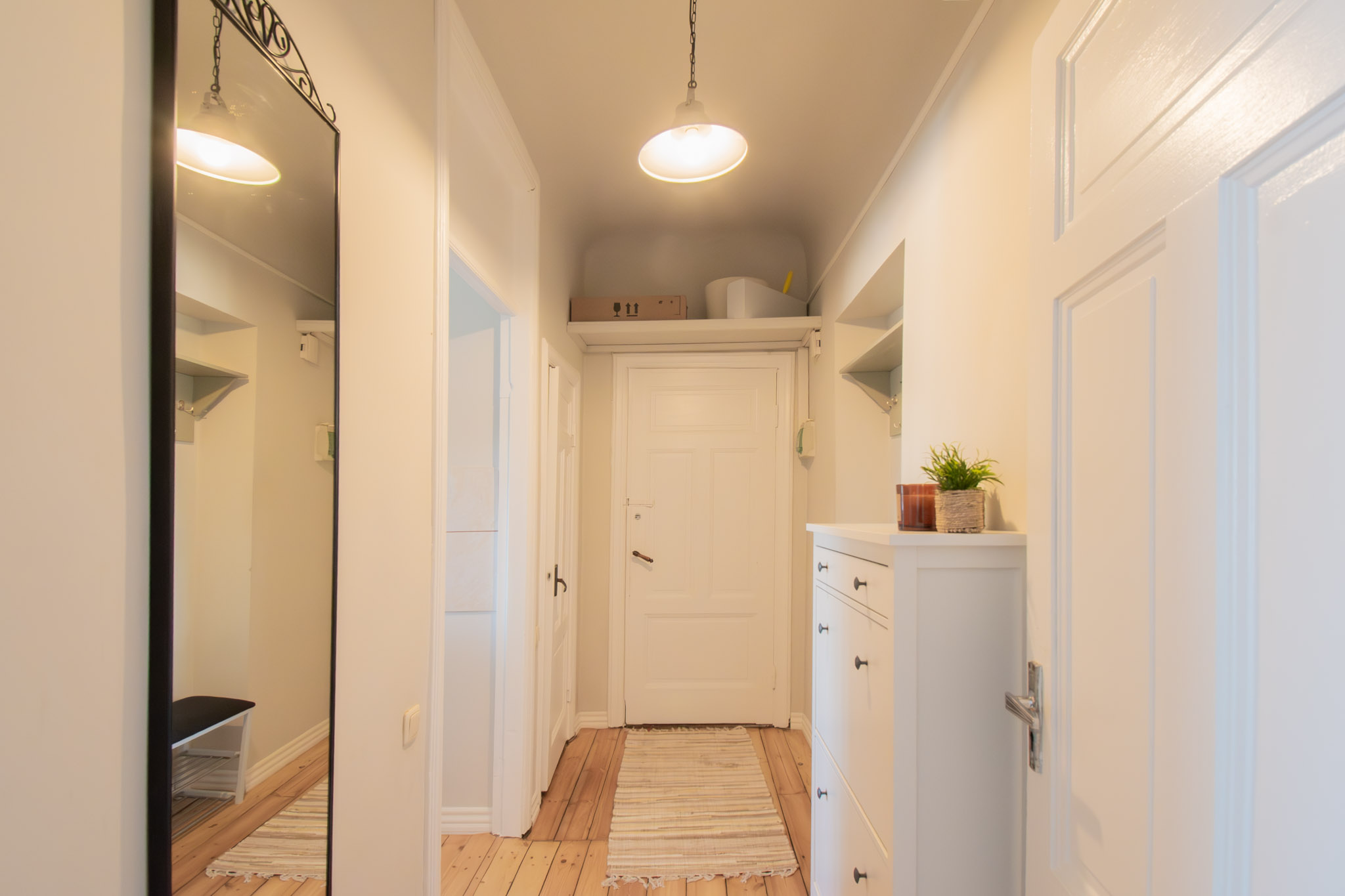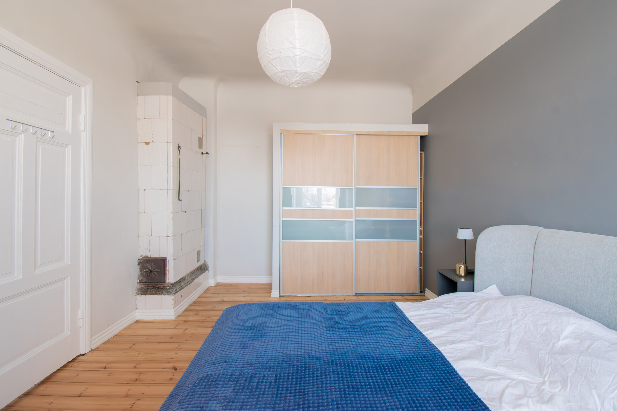 Izolēta guļamistaba, plaša dzīvojamā istaba, virtuve, vannas istaba ar dušu, priekštelpa ar iebūvēto skapi, WC.