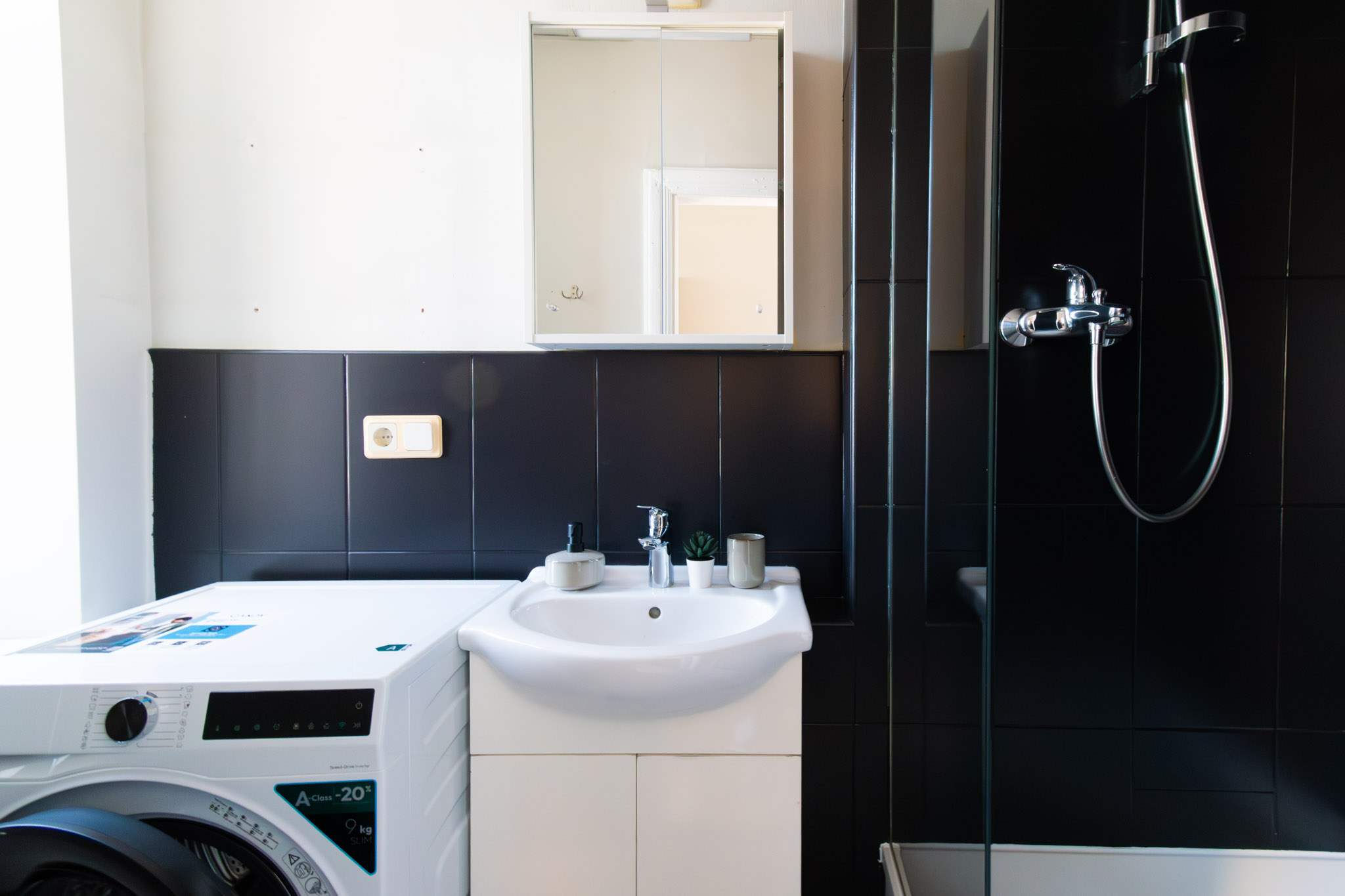 Dzīvoklis aprīkots ar visu nepieciešamo pilnvērtīgai dzīvošanai.
