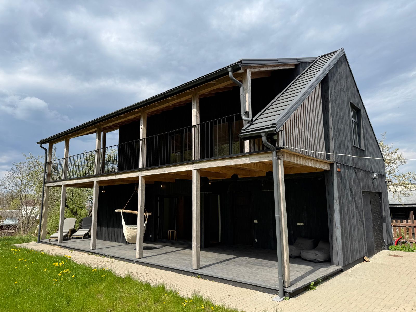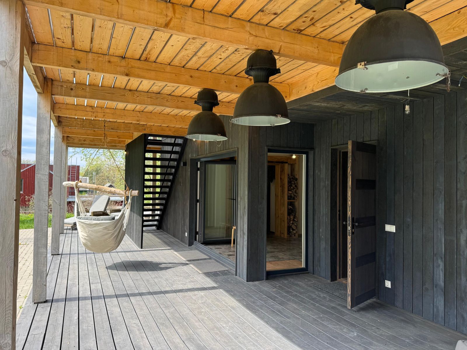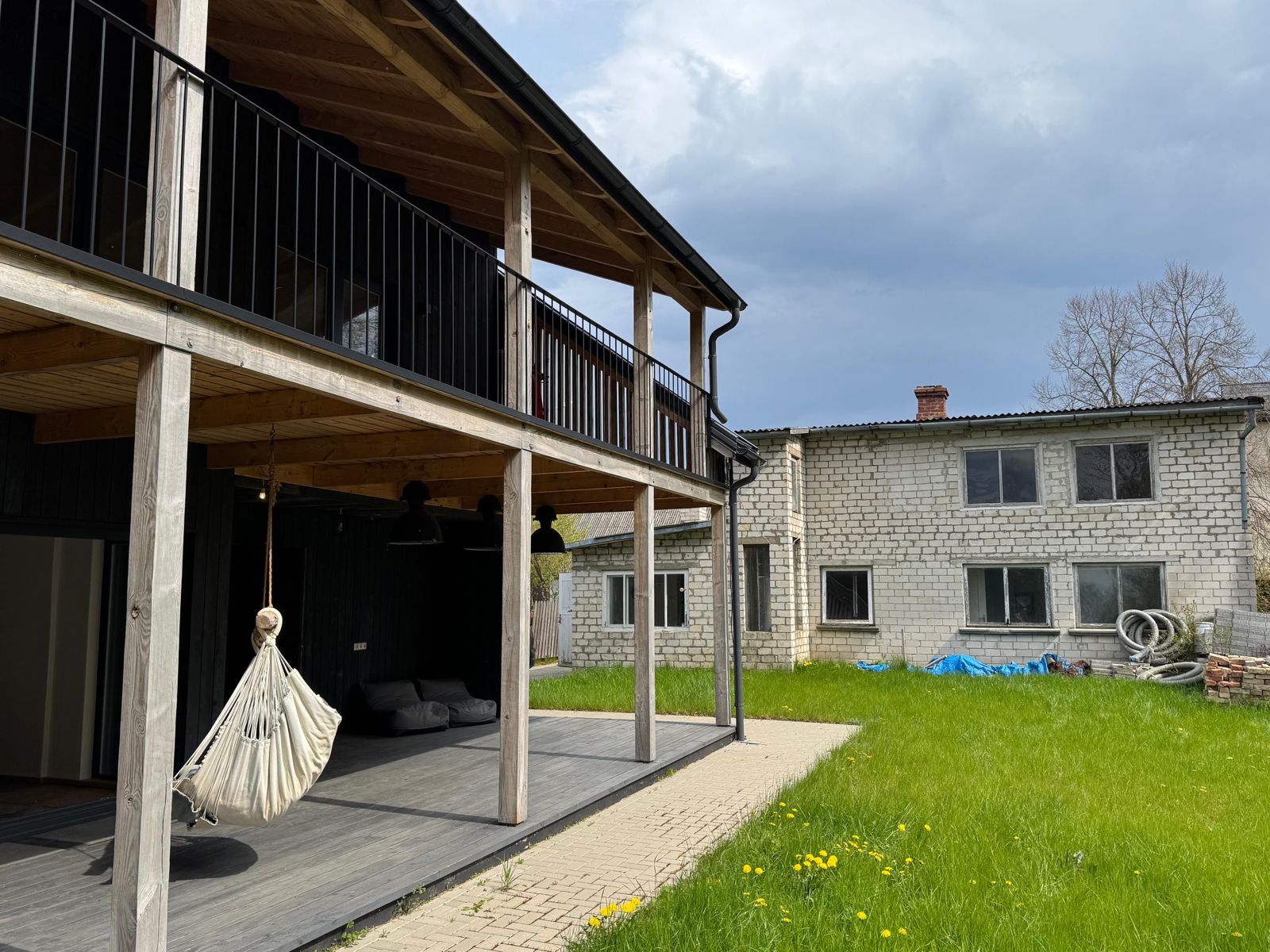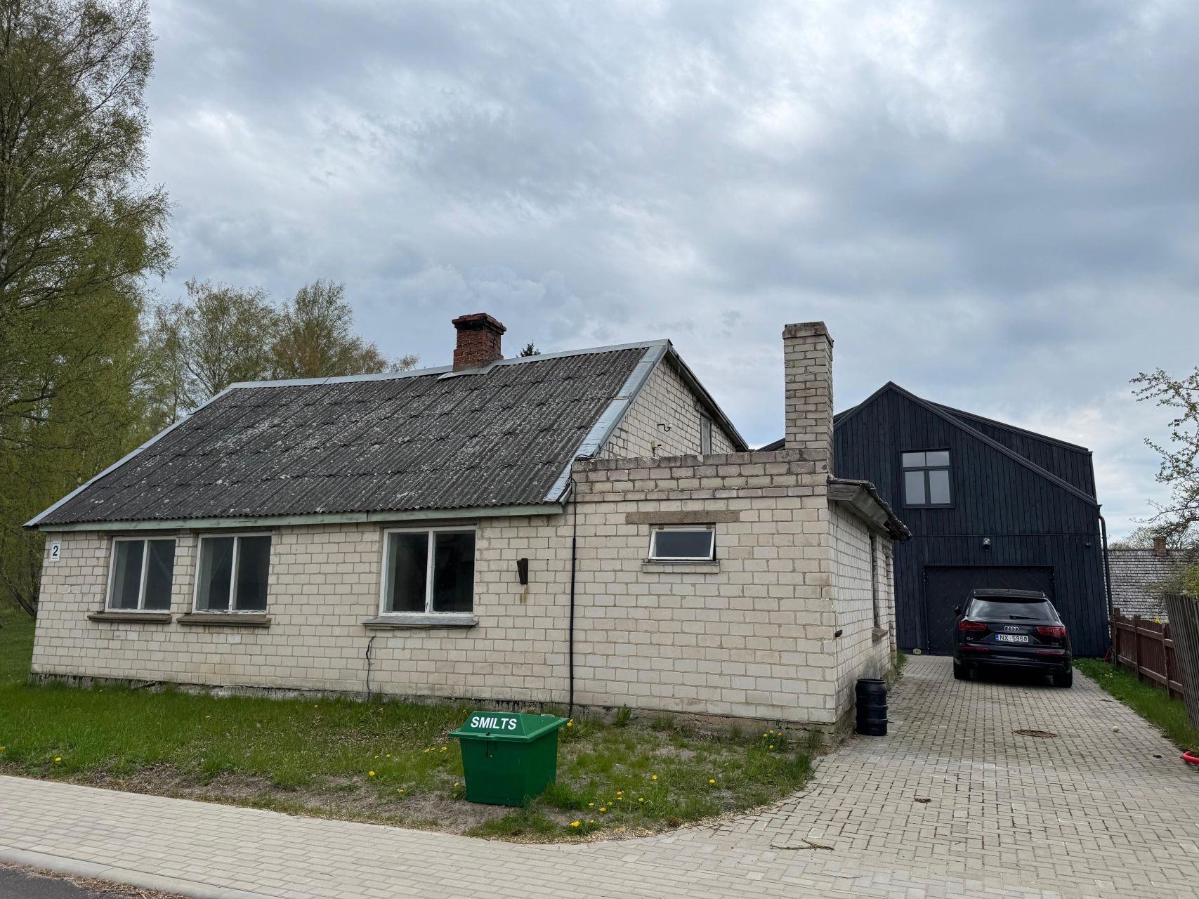 Самое темное здание на фотографиях было полностью отремонтировано и адаптировано к современным требованиям, превратившись в жилой дом с жилой площадью 81 м² и большим гаражом или подсобным помещением площадью 28 м². На первом этаже расположены гостиная и кухня с выходом во двор и на просторную террасу. Также на первом этаже находятся туалет, душевая и дровяная сауна. На третьем этаже расположены 3 спальни и две ванные комнаты.