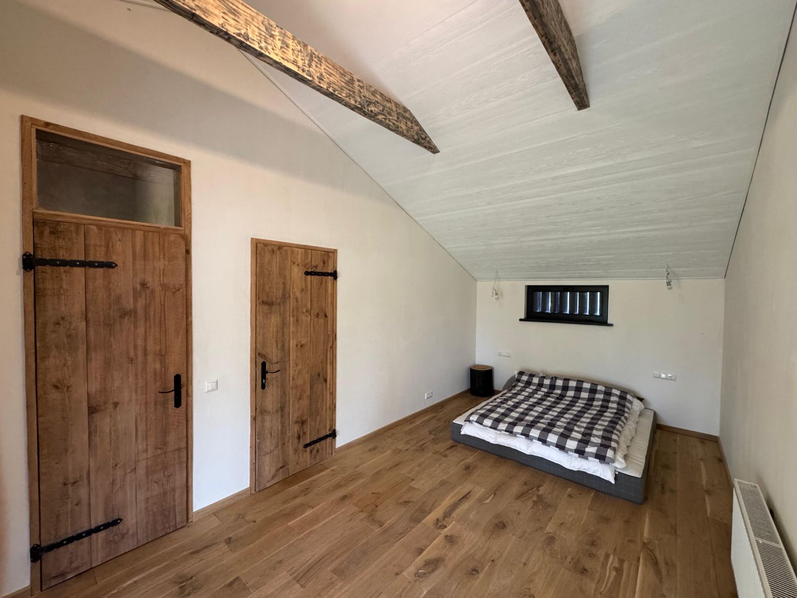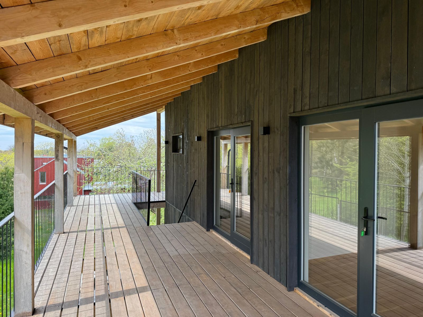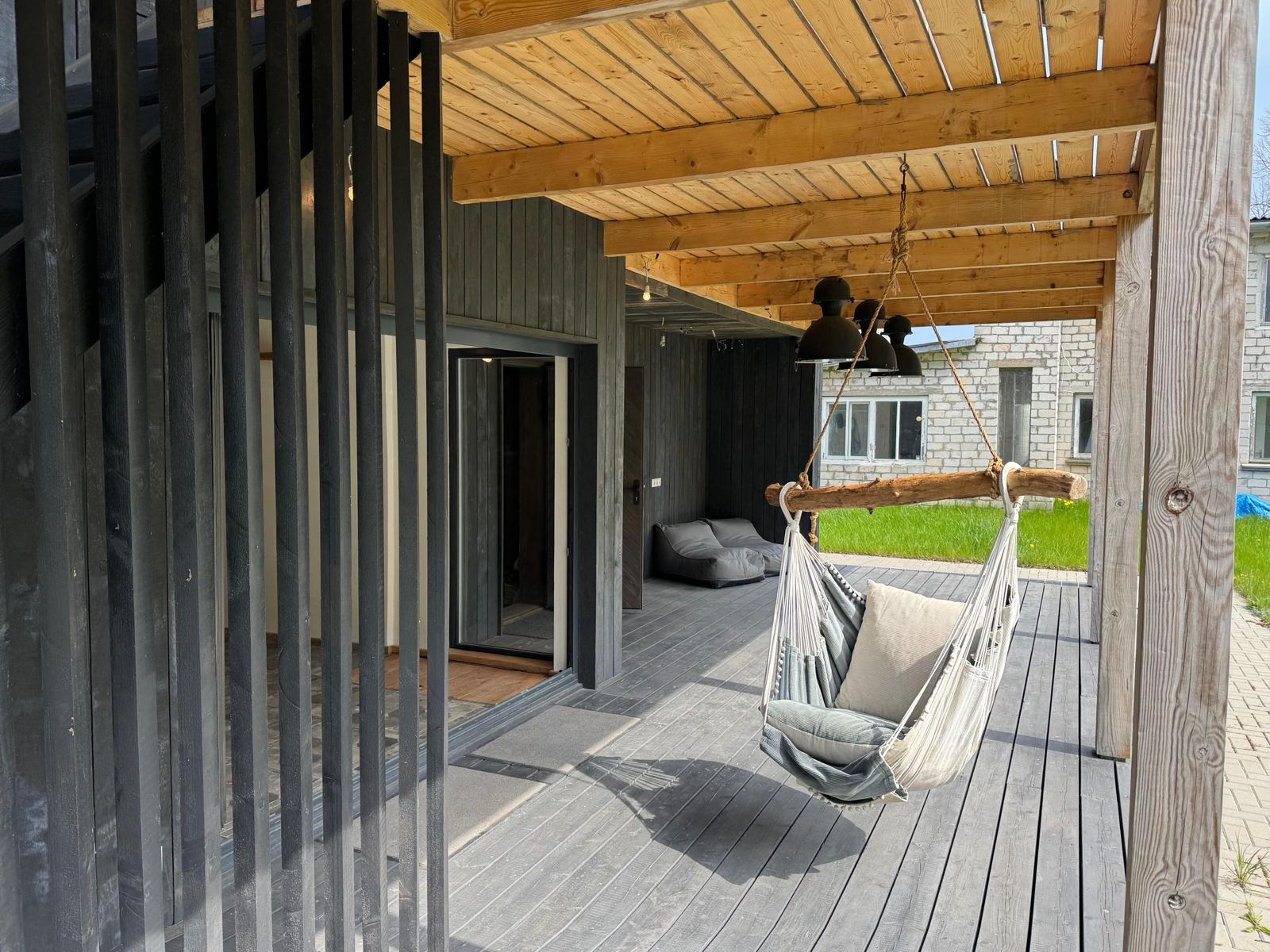 Самое темное здание на фотографиях было полностью отремонтировано и адаптировано к современным требованиям, превратившись в жилой дом с жилой площадью 81 м² и большим гаражом или подсобным помещением площадью 28 м². На первом этаже расположены гостиная и кухня с выходом во двор и на просторную террасу. Также на первом этаже находятся туалет, душевая и дровяная сауна. На третьем этаже расположены 3 спальни и две ванные комнаты.