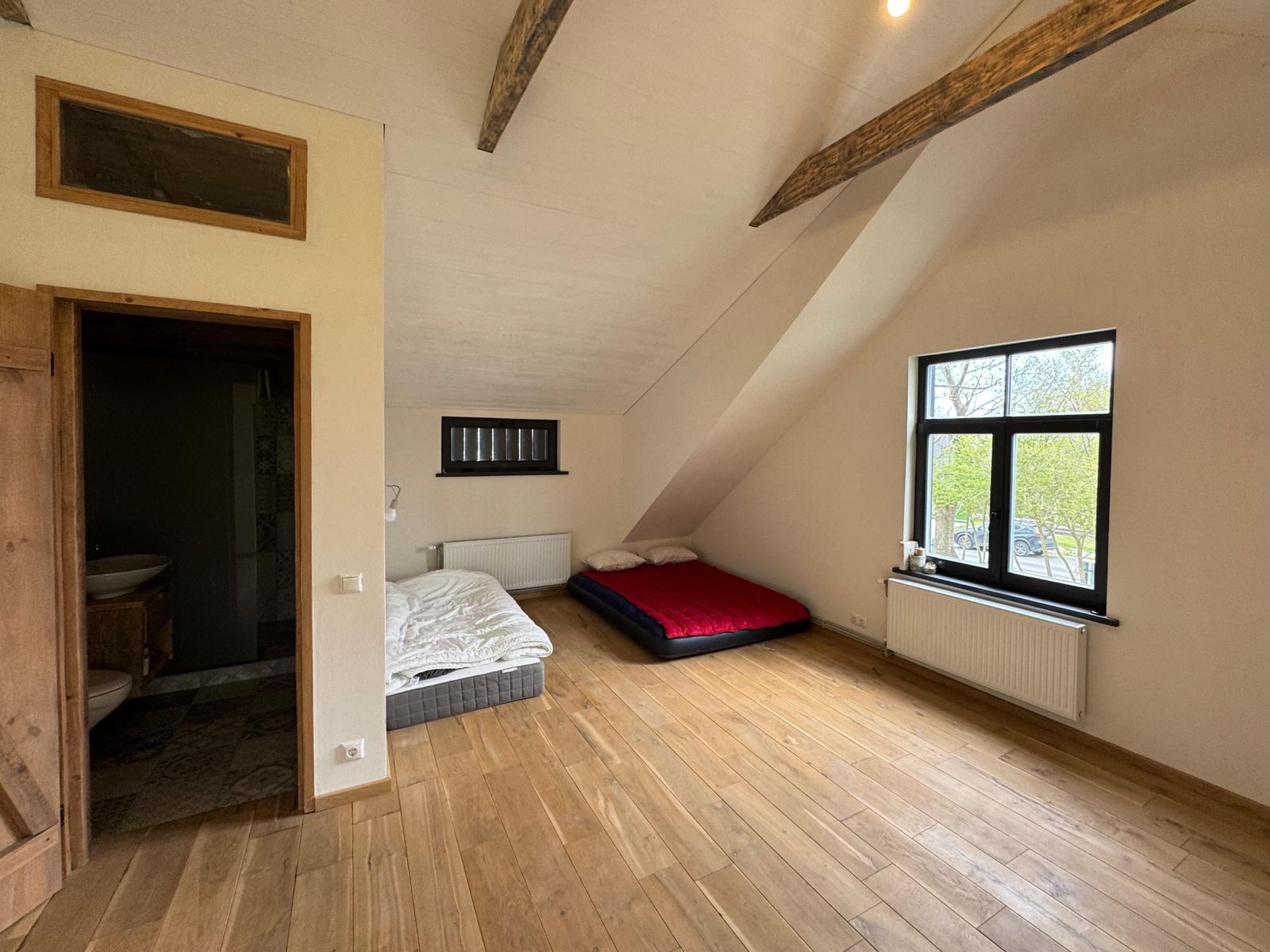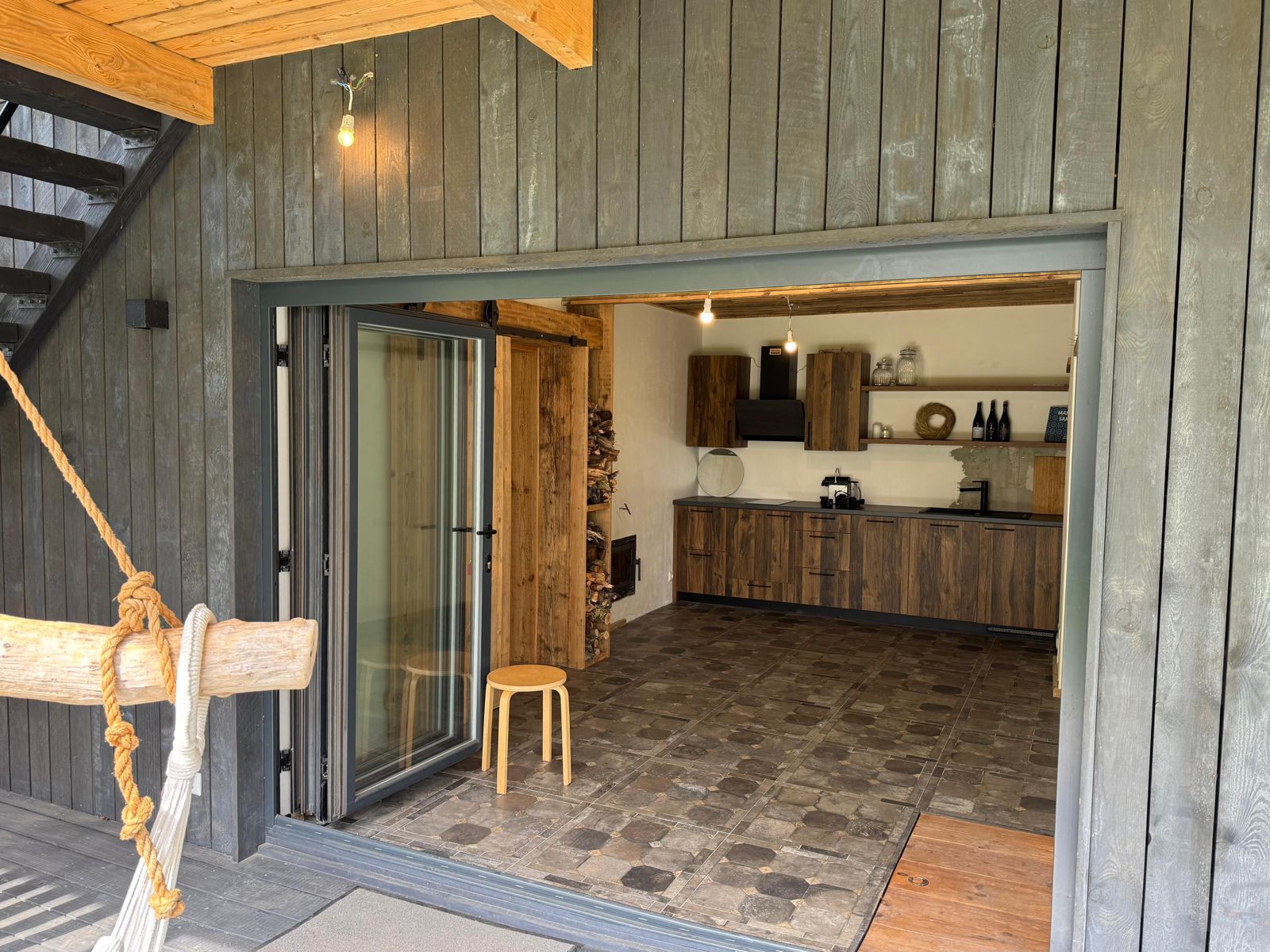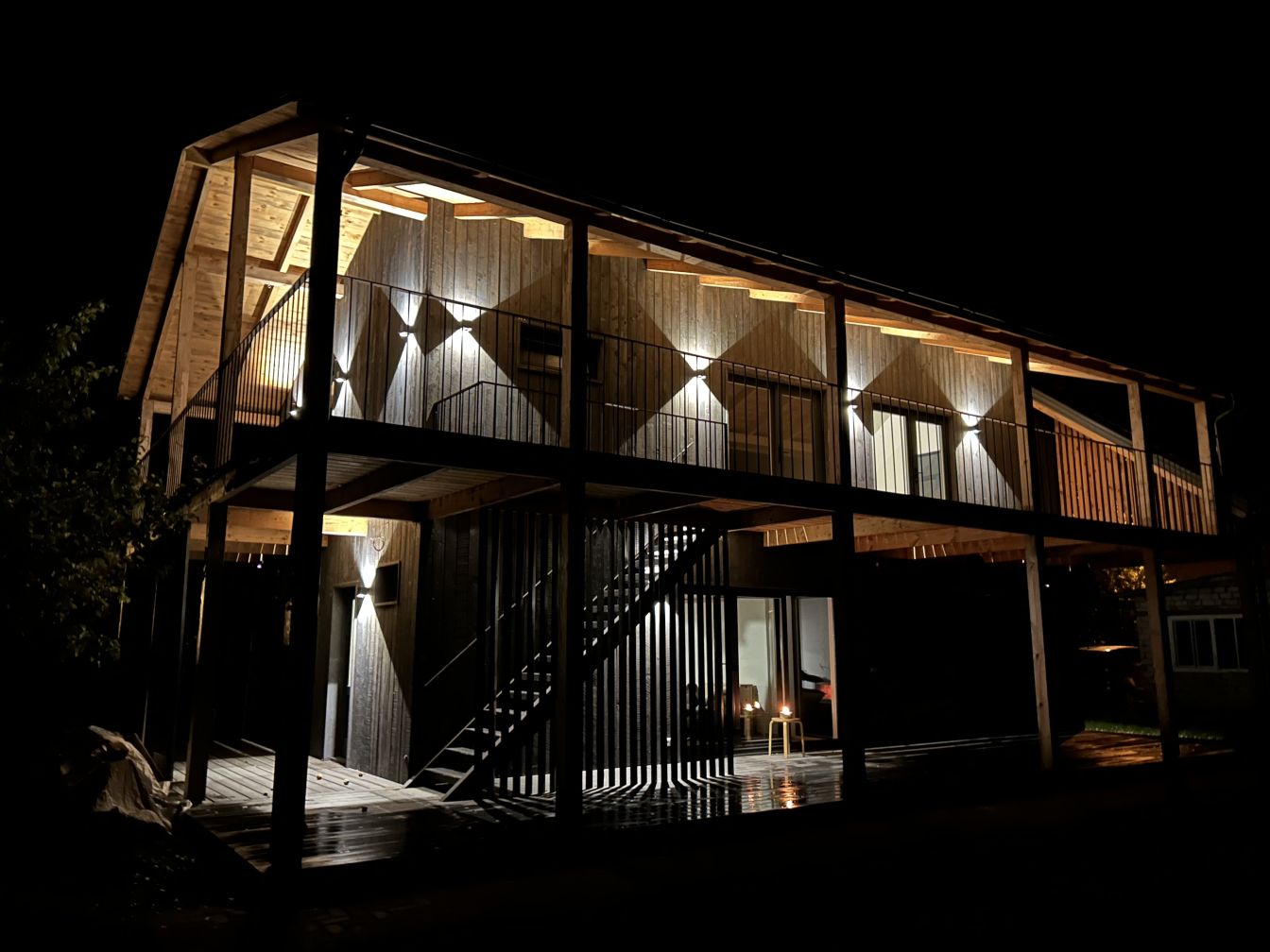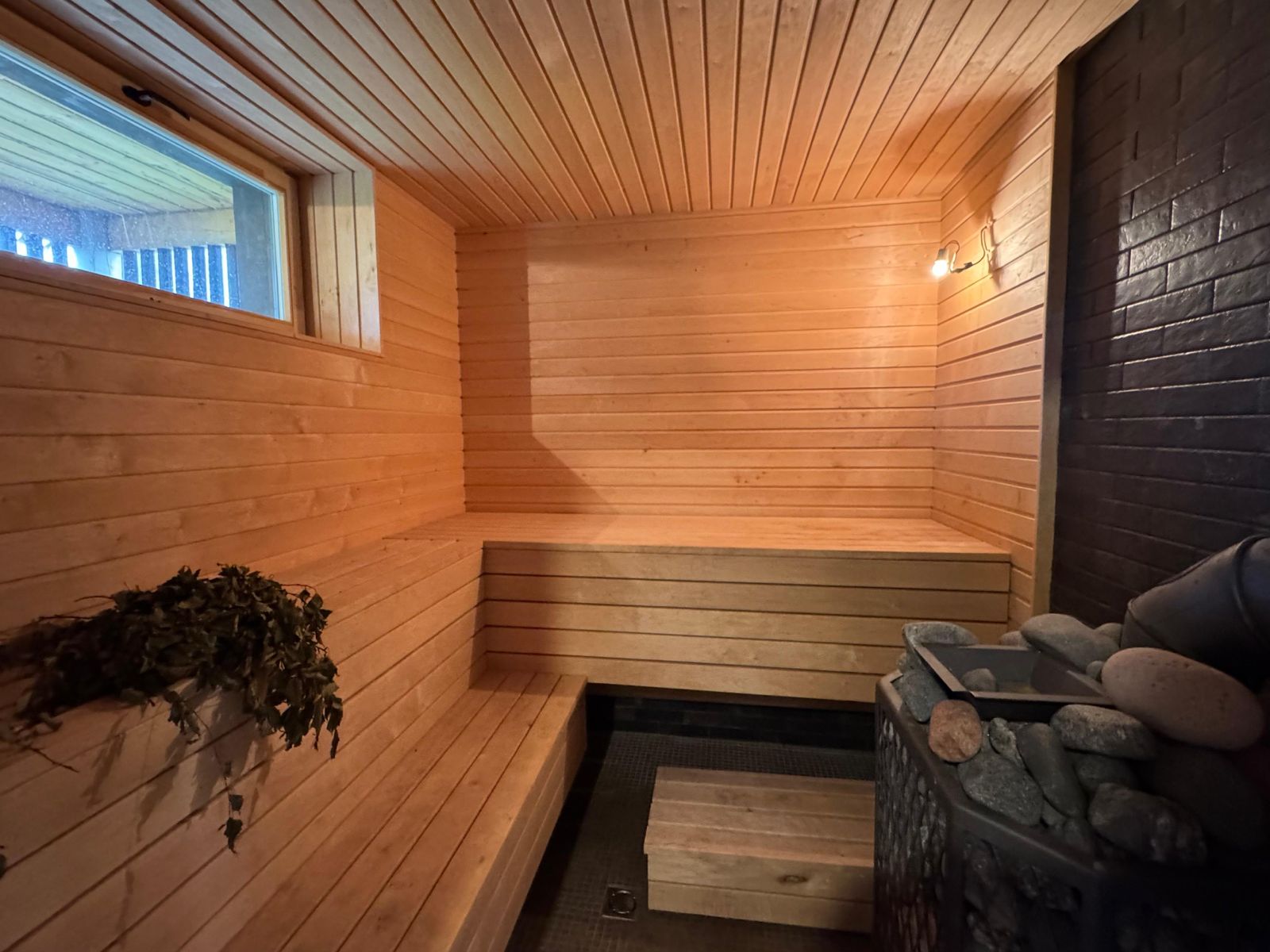 Самое темное здание на фотографиях было полностью отремонтировано и адаптировано к современным требованиям, превратившись в жилой дом с жилой площадью 81 м² и большим гаражом или подсобным помещением площадью 28 м². На первом этаже расположены гостиная и кухня с выходом во двор и на просторную террасу. Также на первом этаже находятся туалет, душевая и дровяная сауна. На третьем этаже расположены 3 спальни и две ванные комнаты.