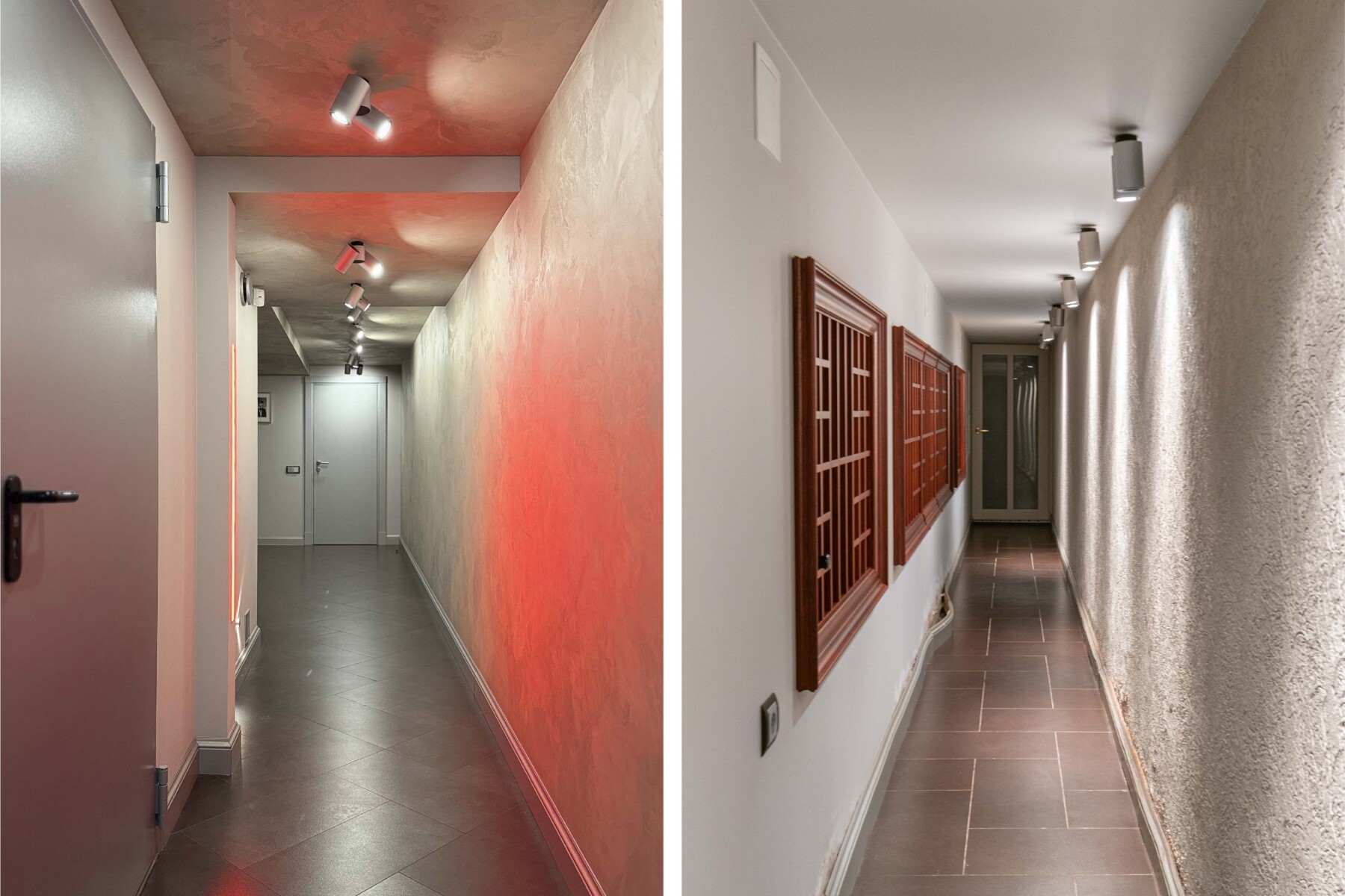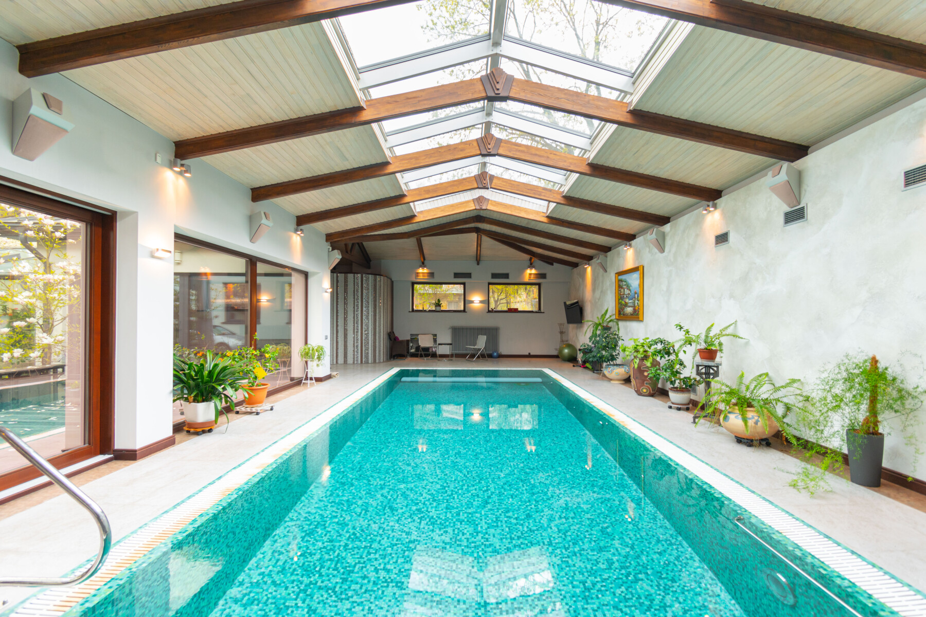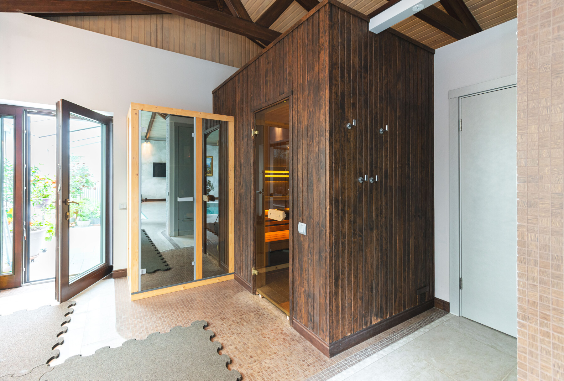 , в дополнительном крыле закрытый подогреваемый бассейн с сауной, тренажерным залом и зимним садом, из всех помещений возможен выход на террасу внутреннего двора дома.