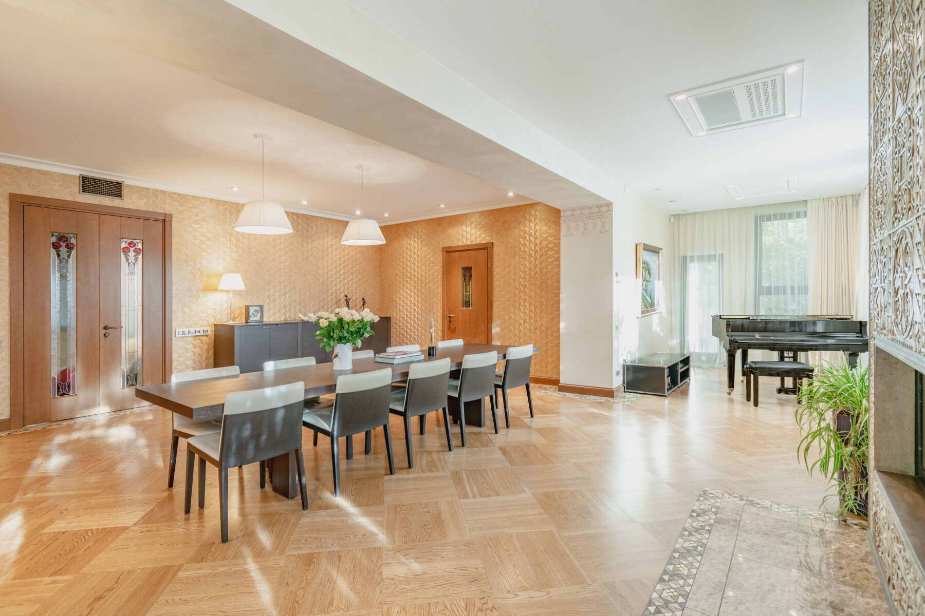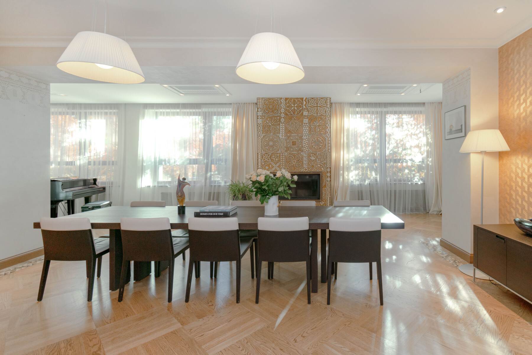 Сдаётся резиденция в Агентскалнсе, Māras aleja 1 — уникальная недвижимость в обустроенном частном квартале, где окружение формируют частные дома начала XX века и эксклюзивные особняки, построенные за последние 10–12 лет. С террасы второго этажа открывается вид на пруд Марас, который находится в 50 метрах от собственности. В состав объекта входит жилой дом площадью 692 м² и хозяйственная постройка площадью 141 м². В доме — 11 комнат, расположенных на двух этажах.
