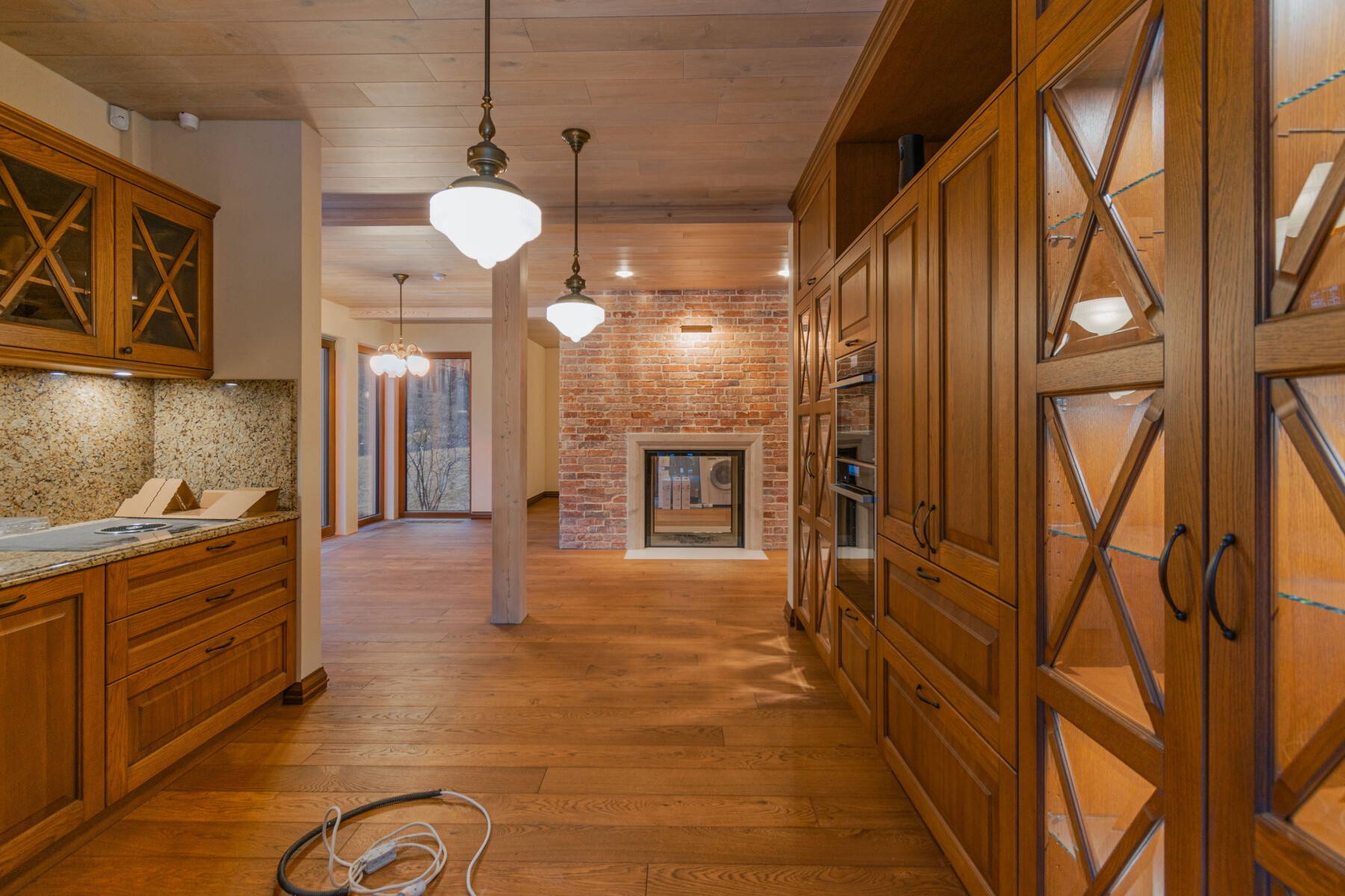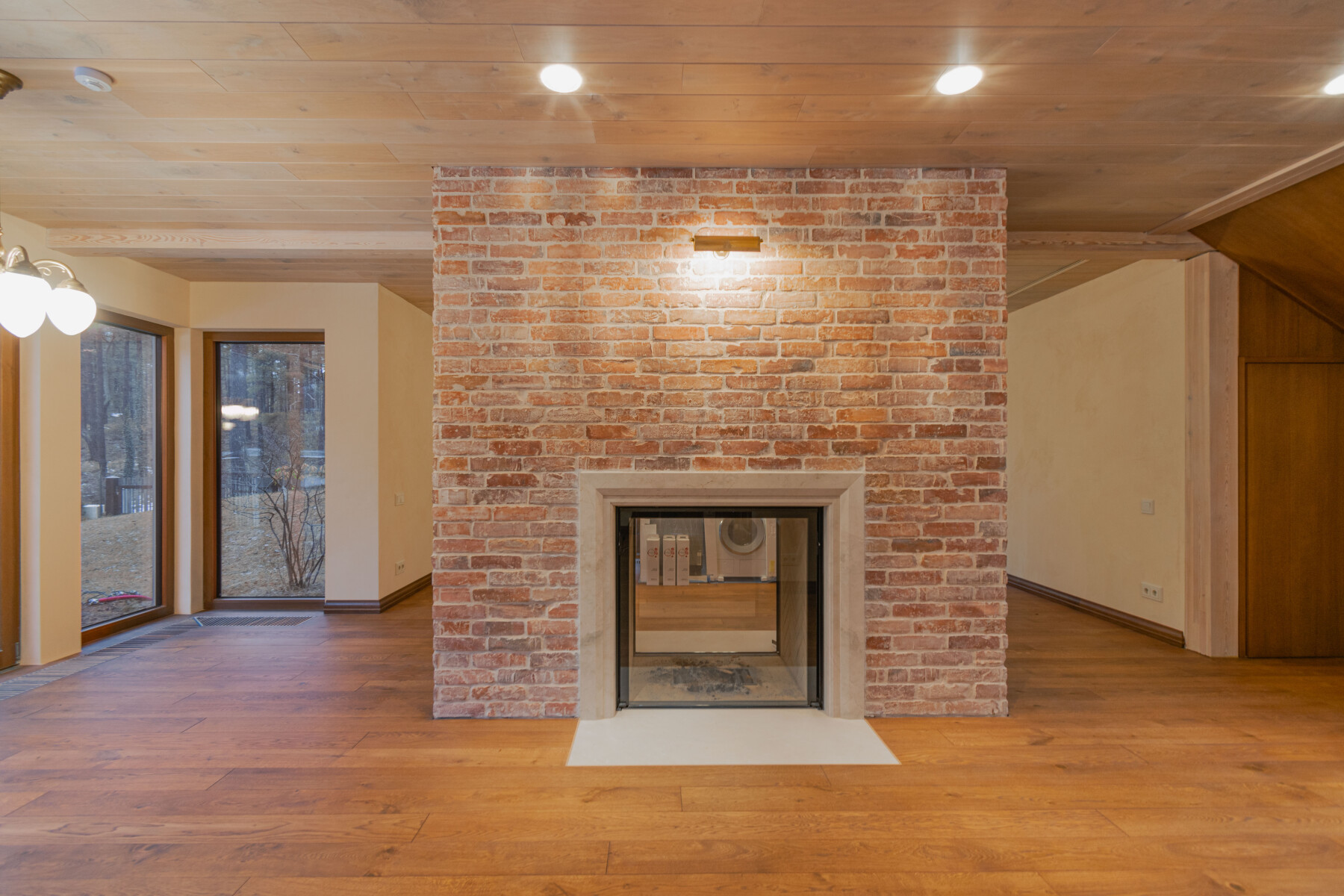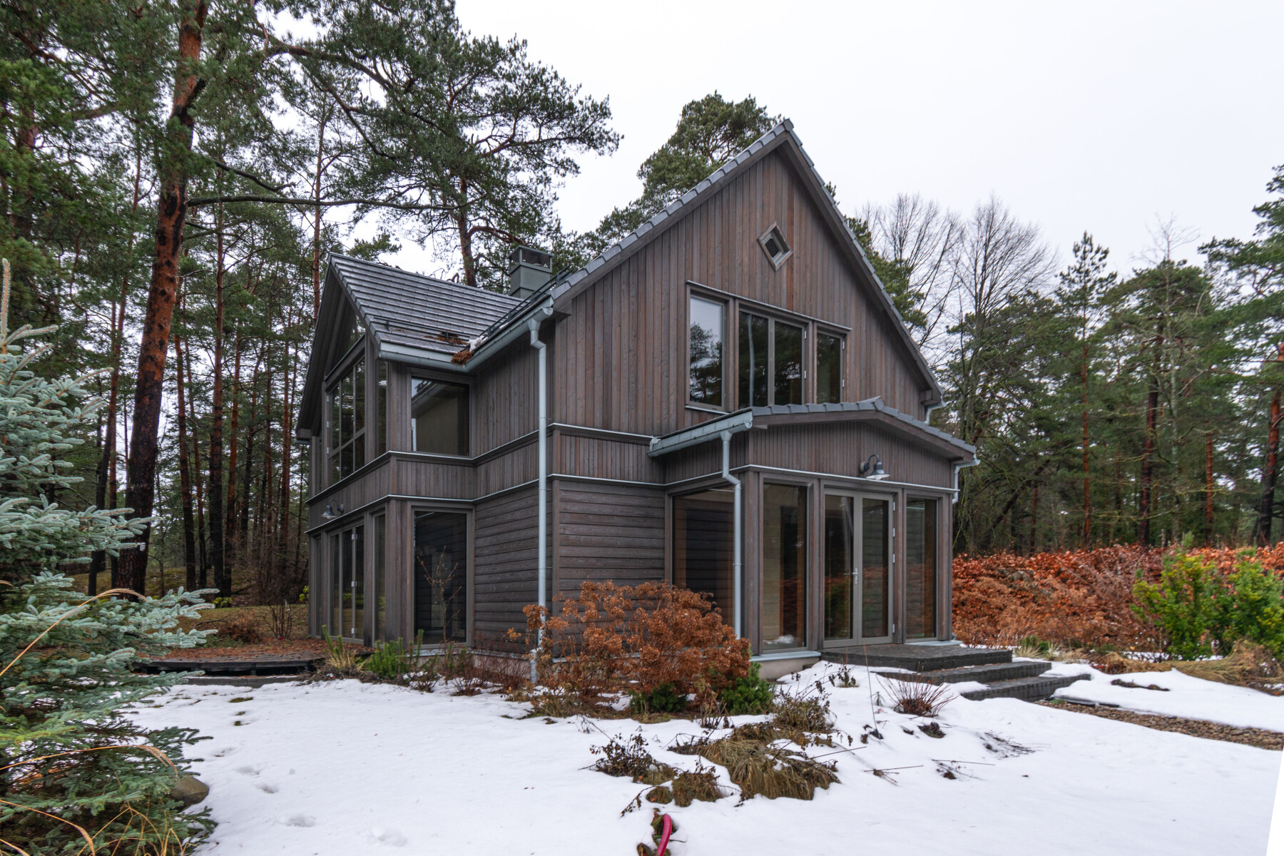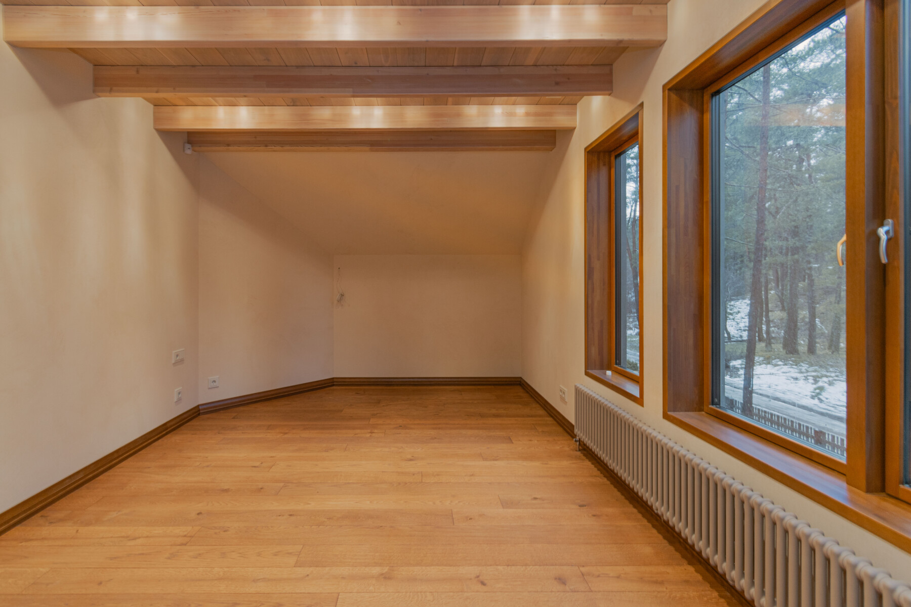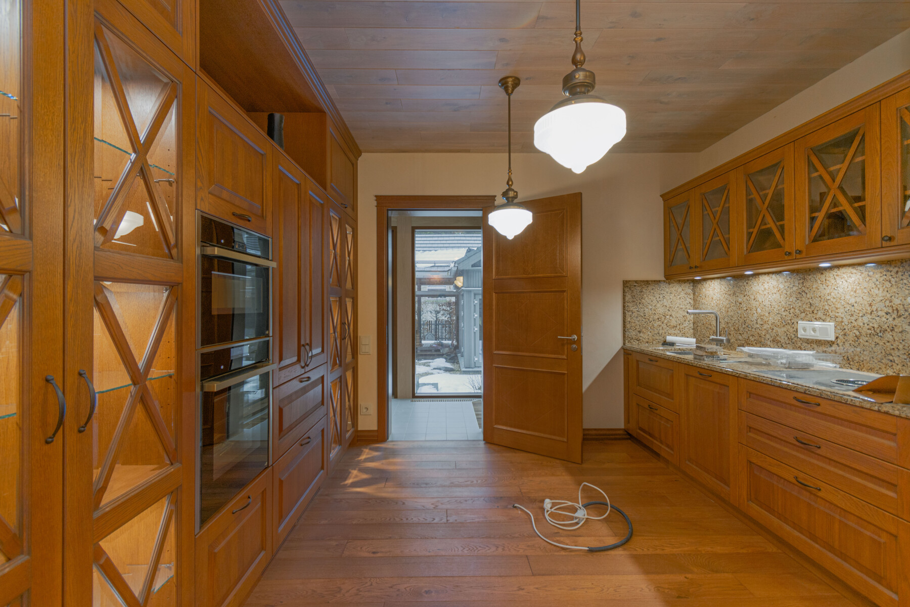 Окна: Большие и широкие деревоалюминиевые окна с трехкамерным пакетом, установленные по скандинавскому решению, обеспечивающие оптимальную теплоизоляцию и тишину в помещениях.