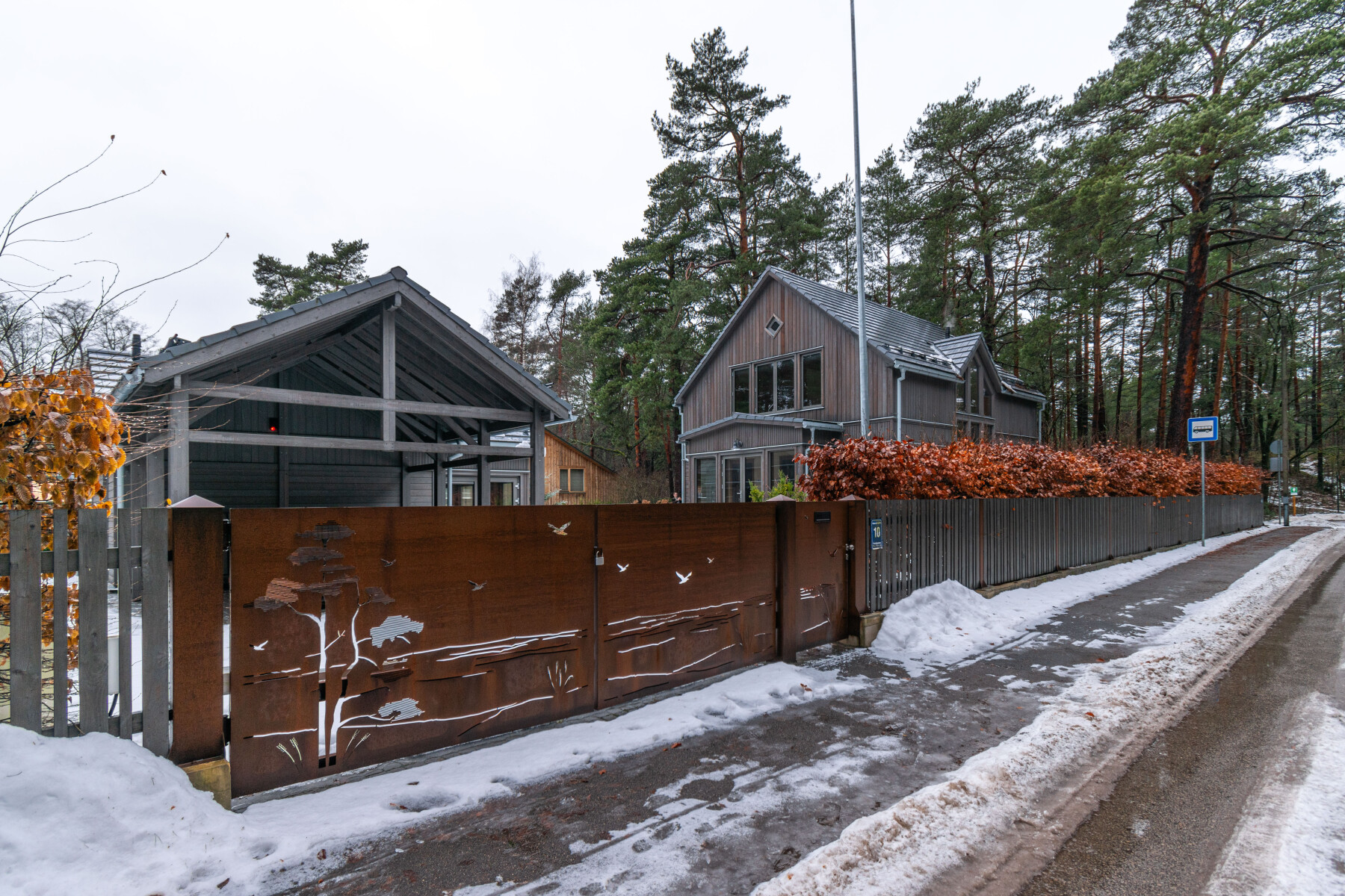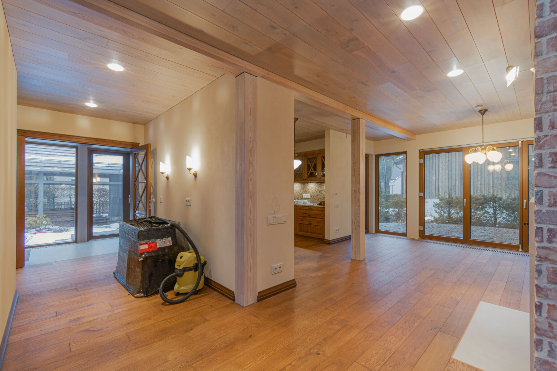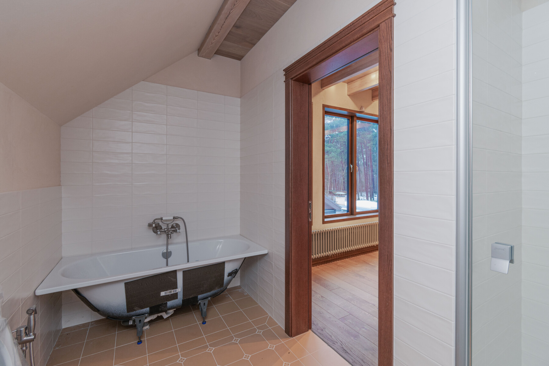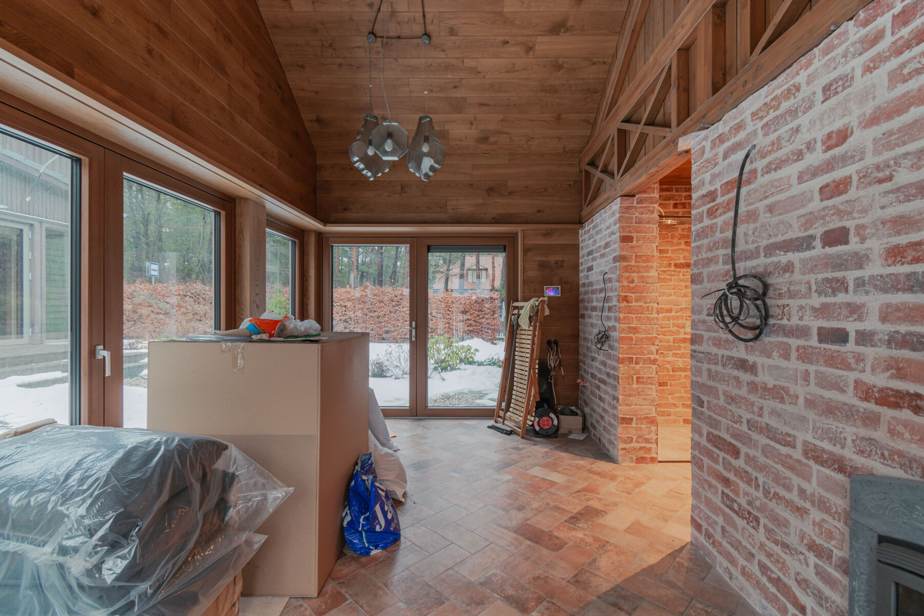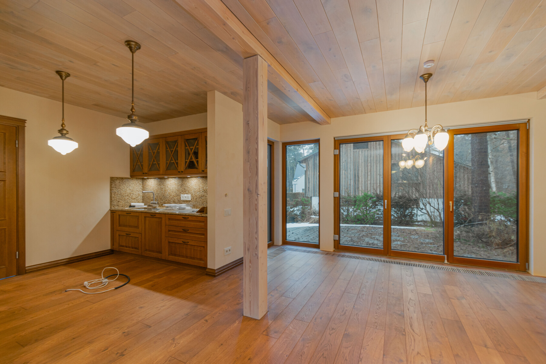 Окна: Большие и широкие деревоалюминиевые окна с трехкамерным пакетом, установленные по скандинавскому решению, обеспечивающие оптимальную теплоизоляцию и тишину в помещениях.