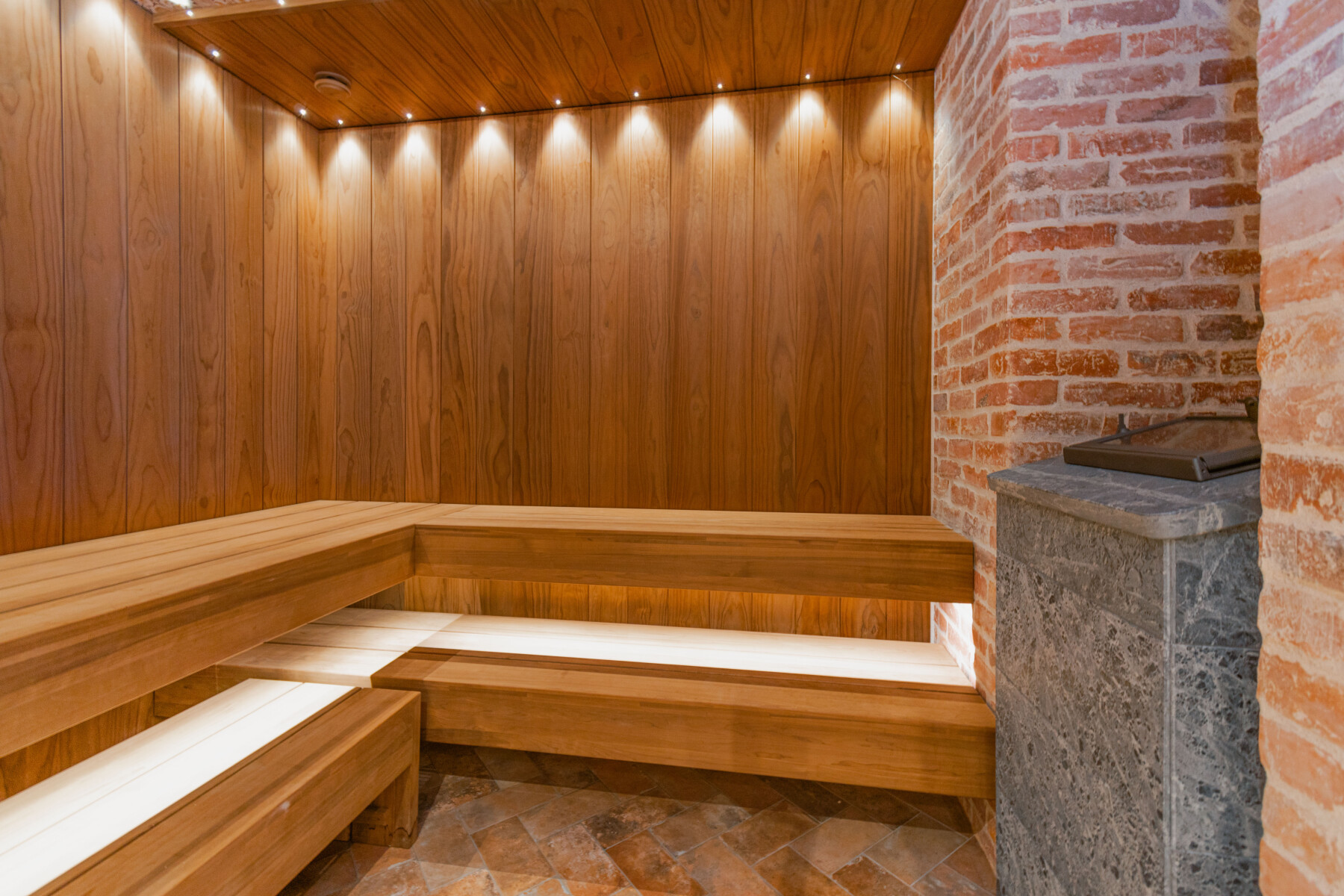 Планировка банного дома включает в себя: комнату отдыха, сауну, душевую, санузлы и подсобное помещение.
