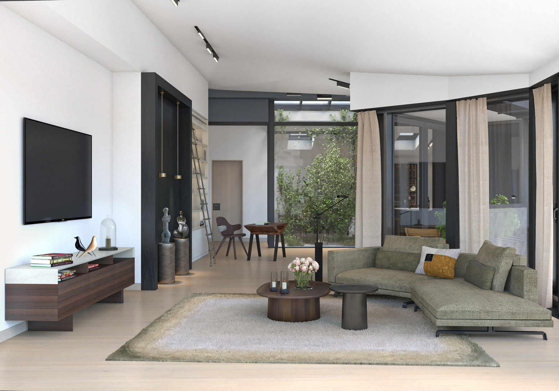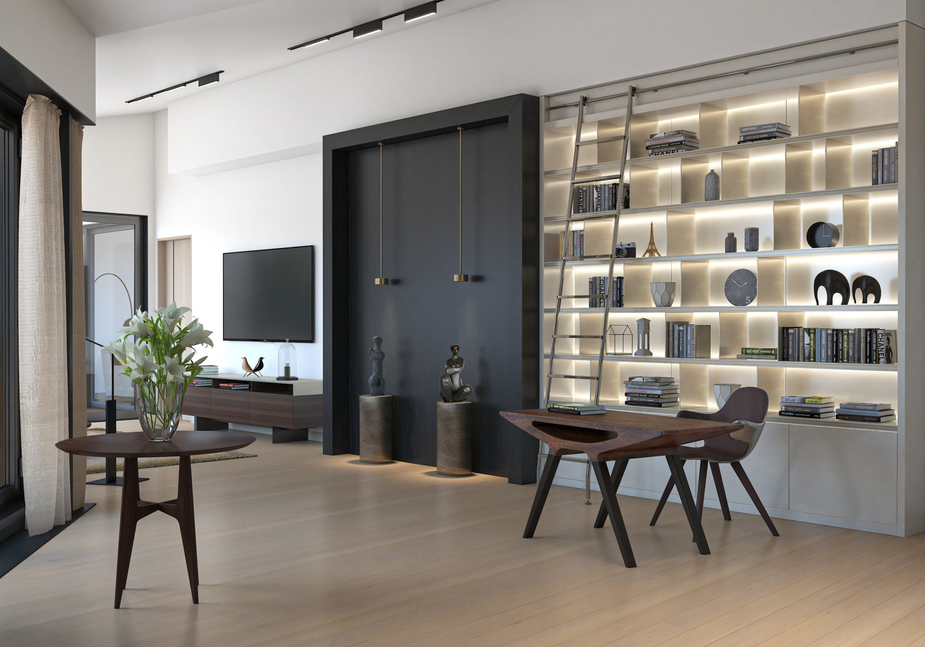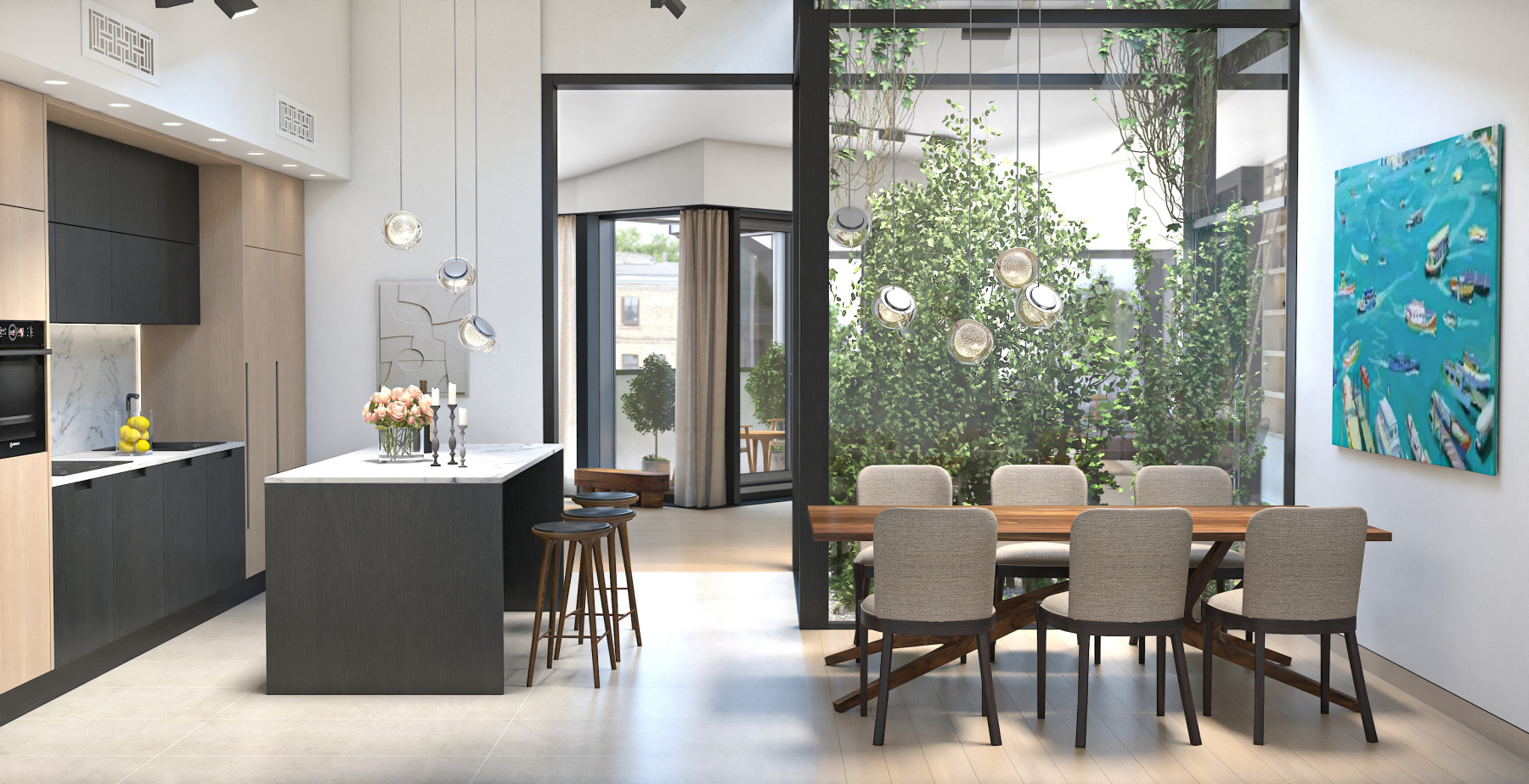 Прихожая, изолированная кухня и столовая, просторная гостиная open space, дизайнерский зимний сад и балкон, 3 спальни, 3 санузла с естественным освещением, большая терраса с атмосферным освещением, гардеробная, хозяйственное помещение.