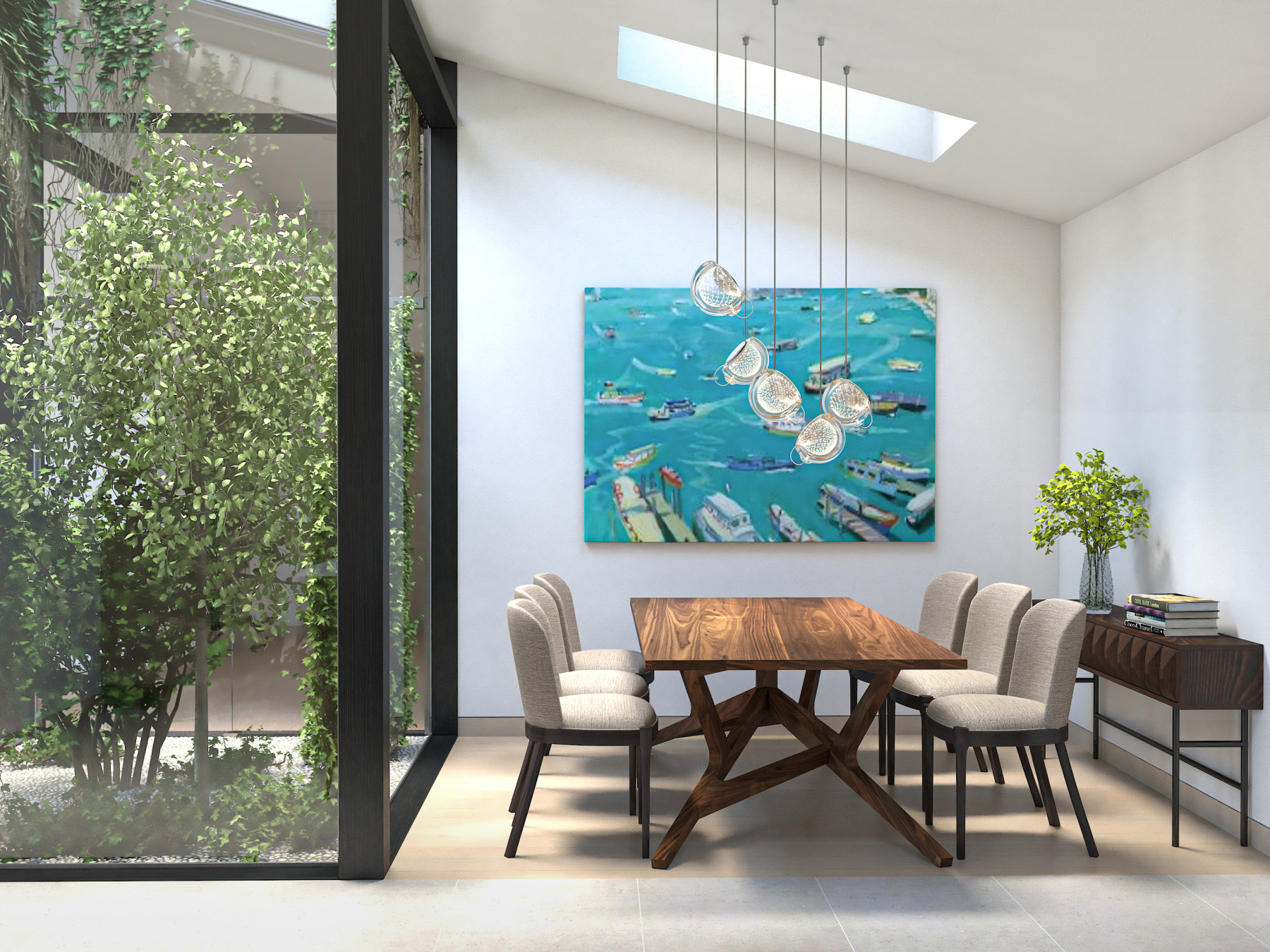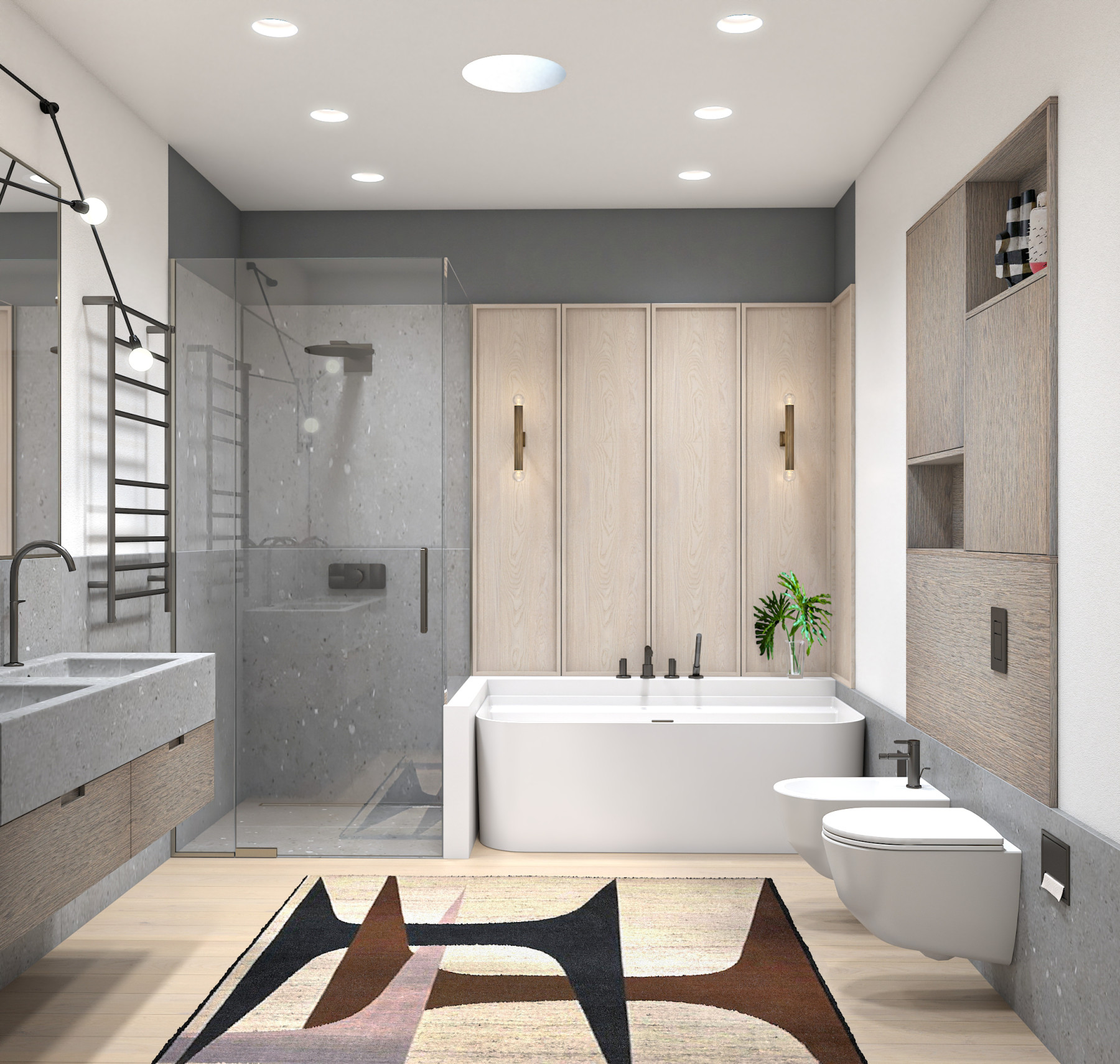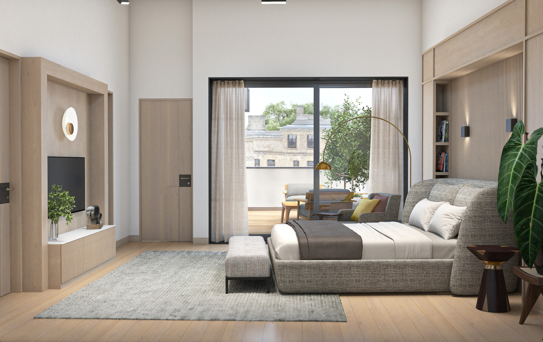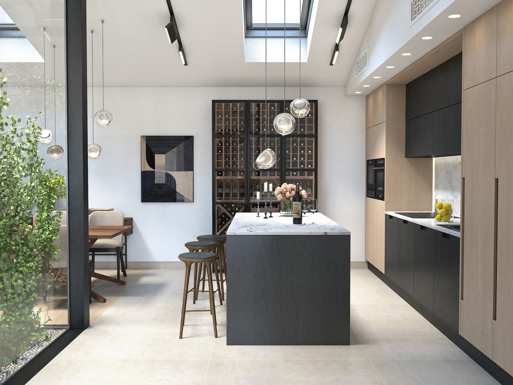 Прихожая, изолированная кухня и столовая, просторная гостиная open space, дизайнерский зимний сад и балкон, 3 спальни, 3 санузла с естественным освещением, большая терраса с атмосферным освещением, гардеробная, хозяйственное помещение.