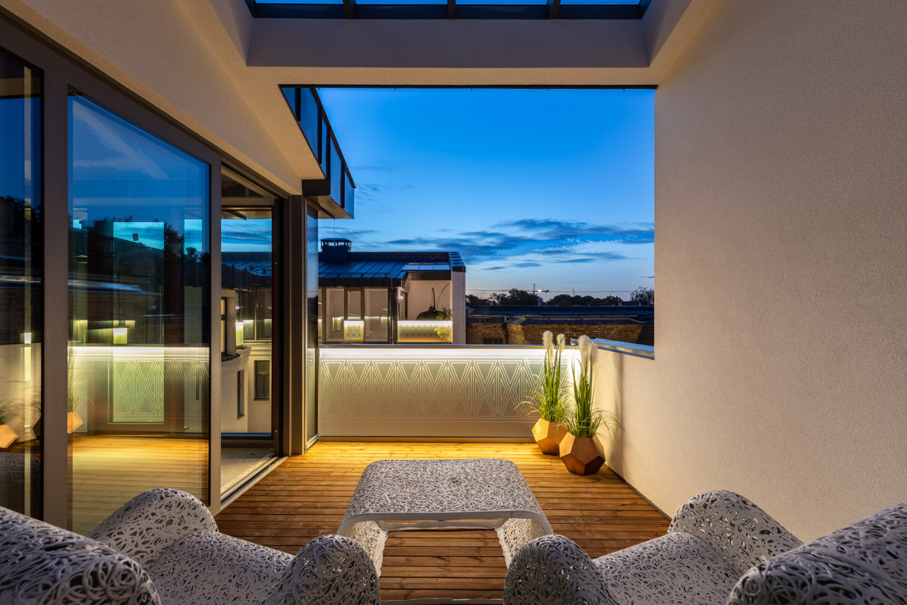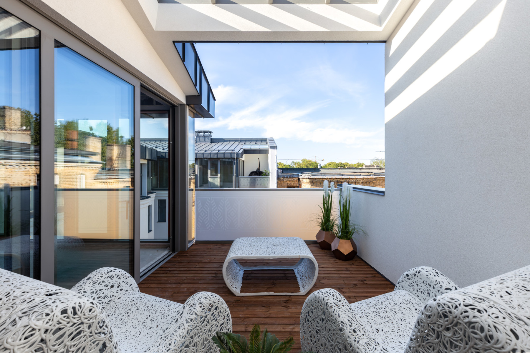 Эксклюзивная возможность приобрести индивидуально спроектированные и полностью заново построенные пентхаус-апартаменты в полностью реконструированном здании в стиле модерн. Квартира предлагается с полной отделкой. В цену включено 1 парковочное место во дворе дома с закрытым доступом.
