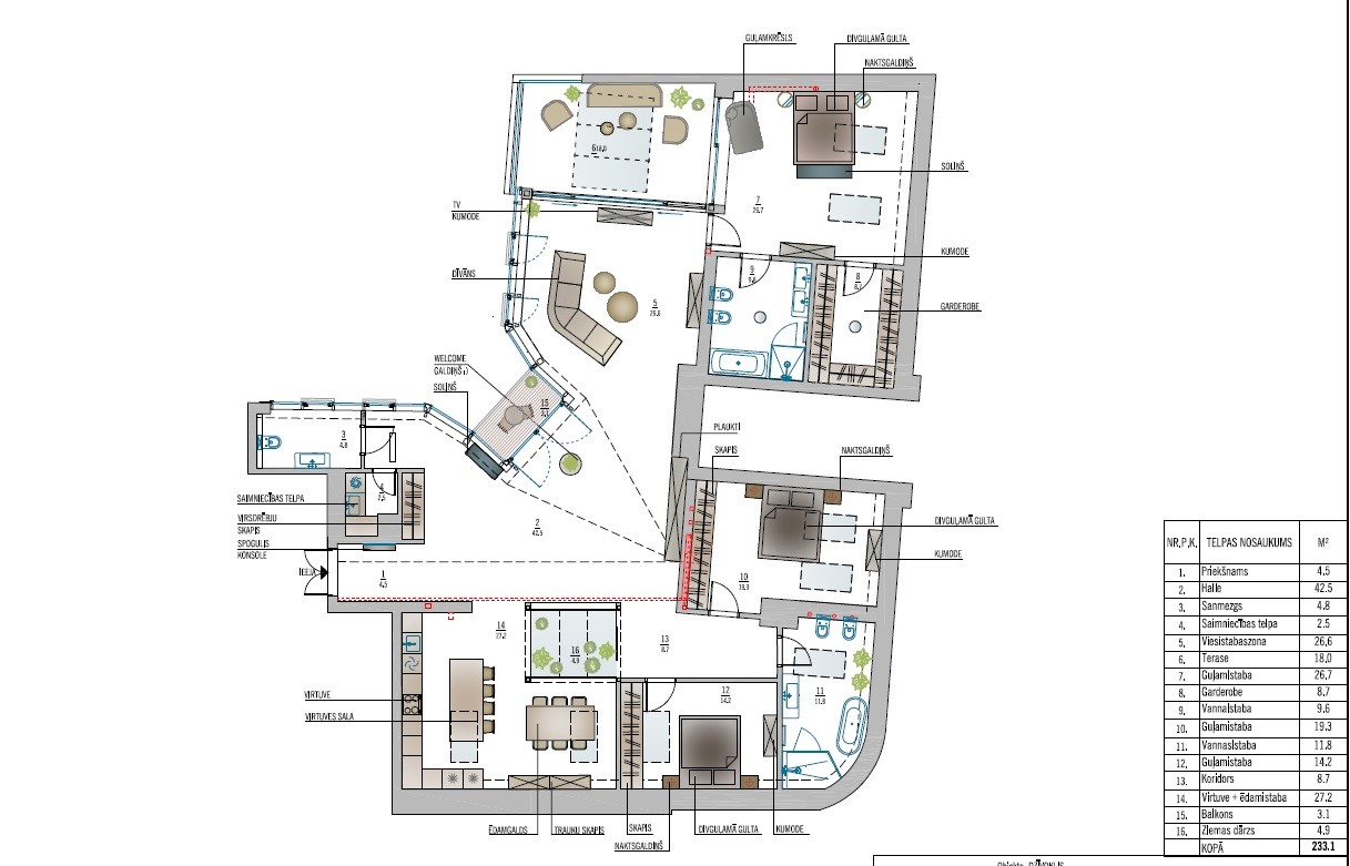 Общая площадь квартиры – 252,8 м², включая просторную террасу 20,9 м²: