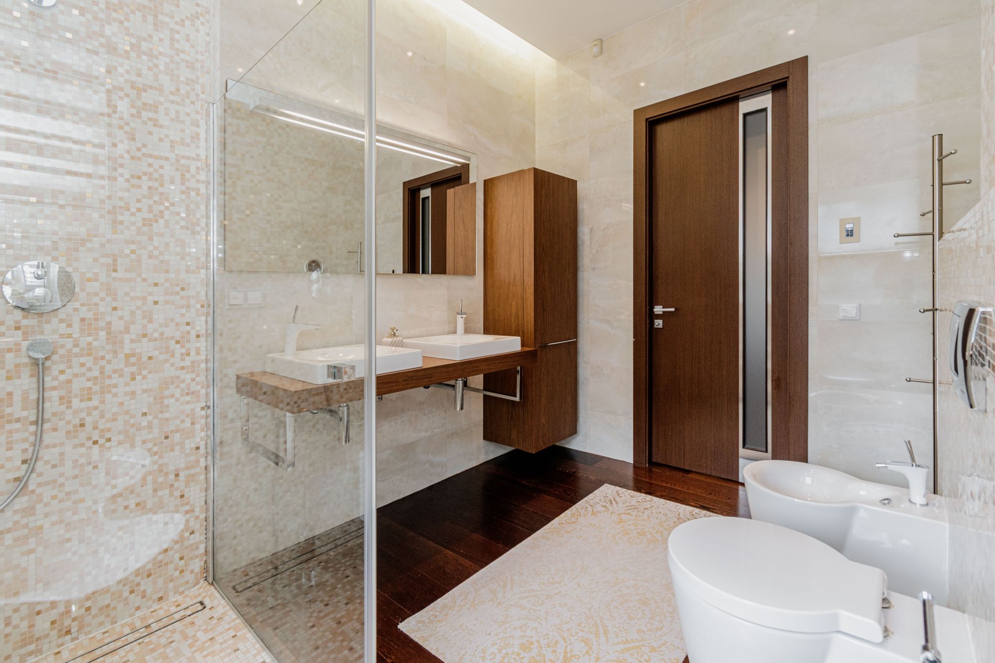гостевой санузел и отдельная ванная комната с душем и хозяйственным оборудованием.