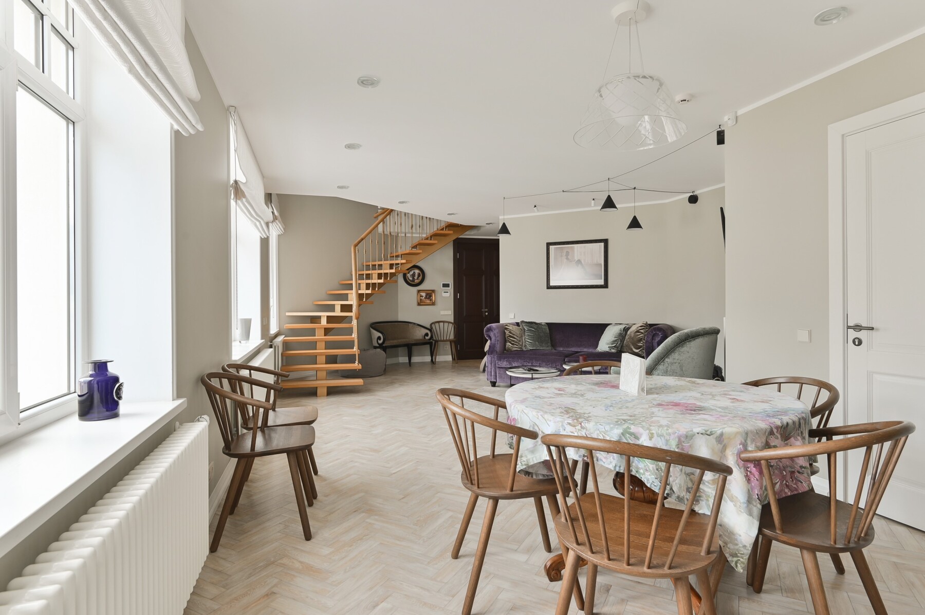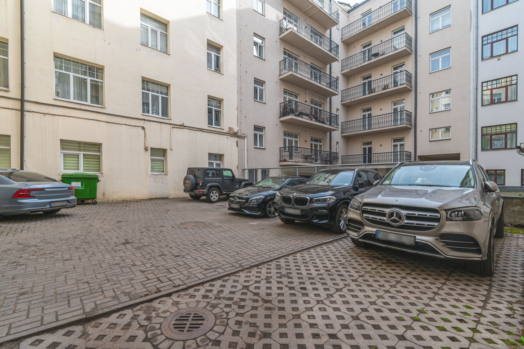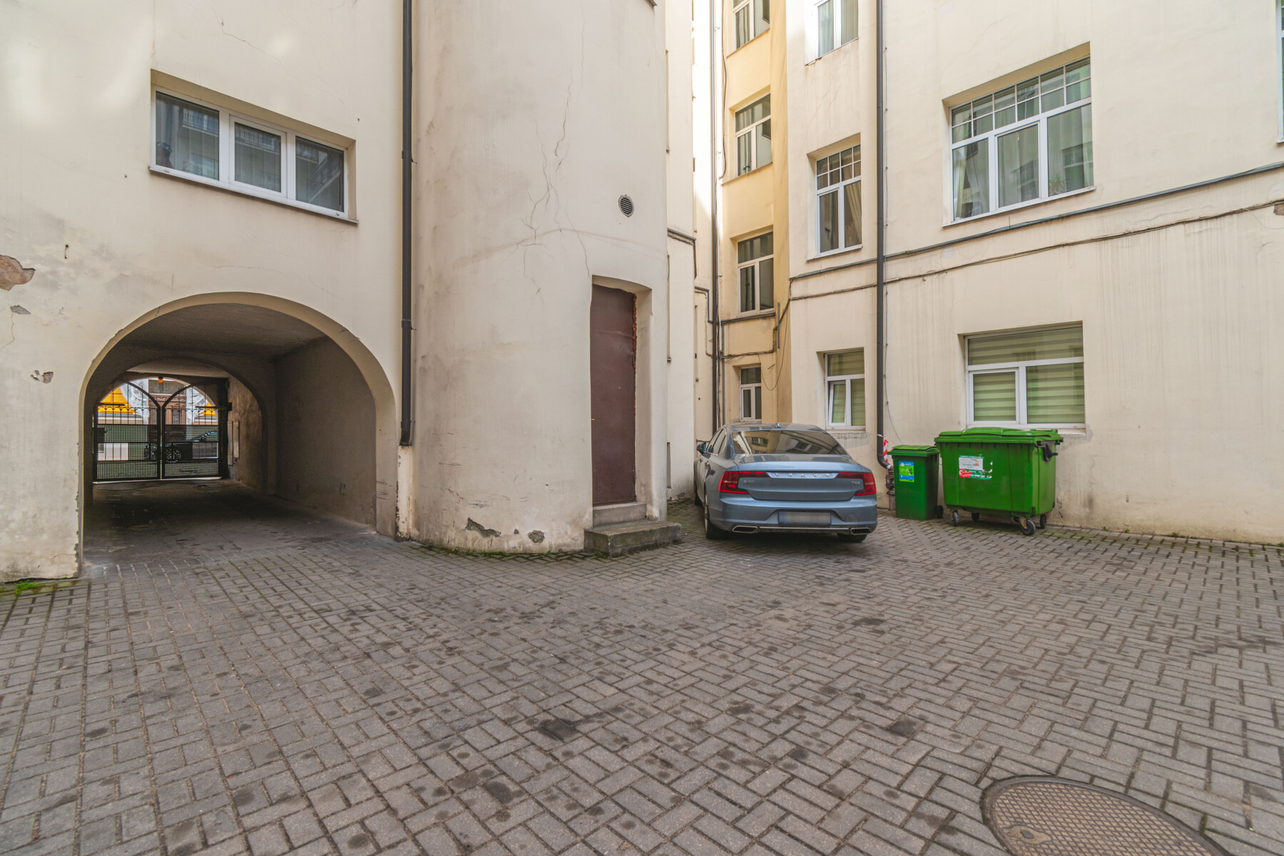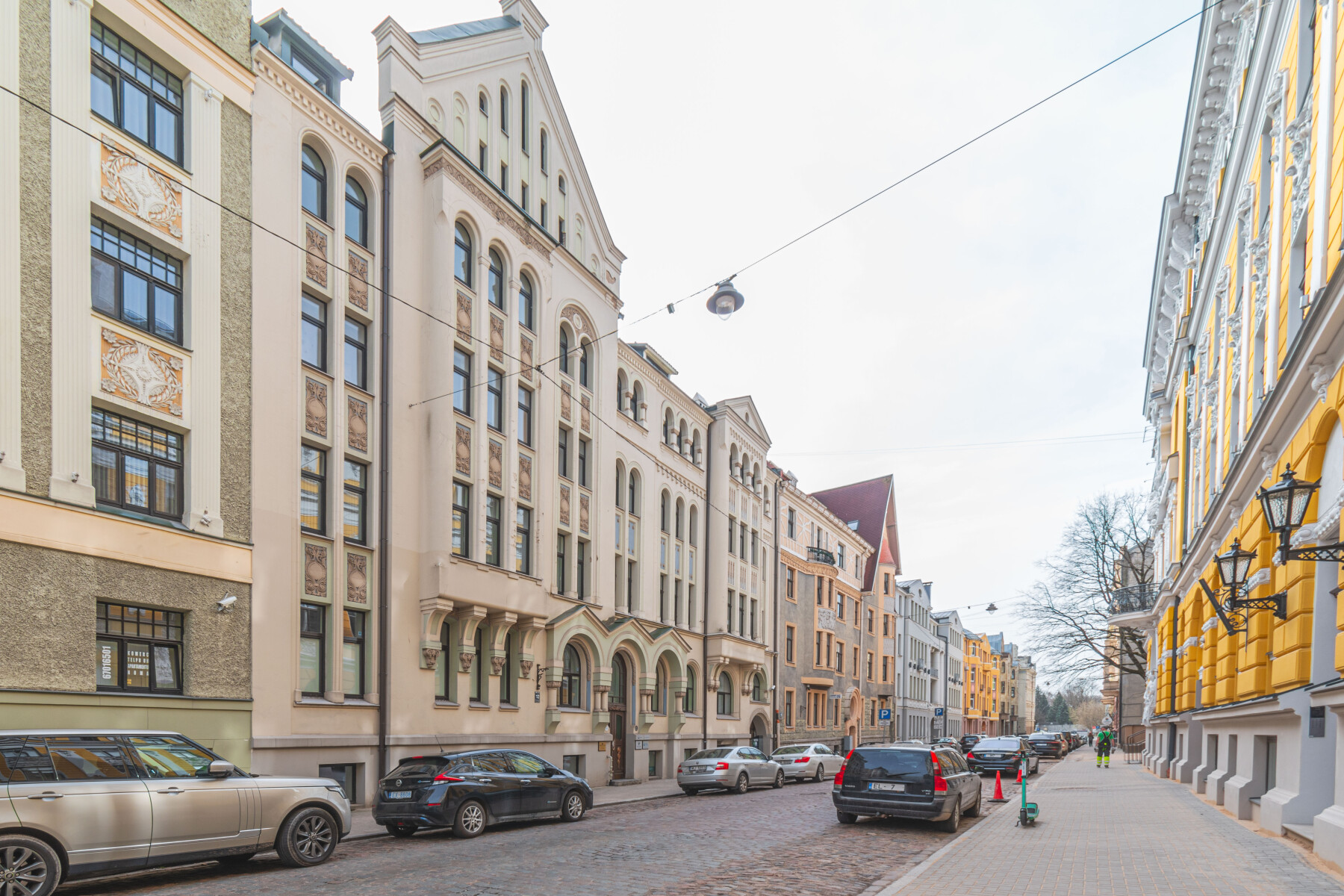 Beautiful and bright, two-level apartment for sale in the quiet center of Riga - Vīlandes street 12. In a reconstructed house designed by the well-known architect K. Pēkšēnas, with the possibility to park a car in its yard.