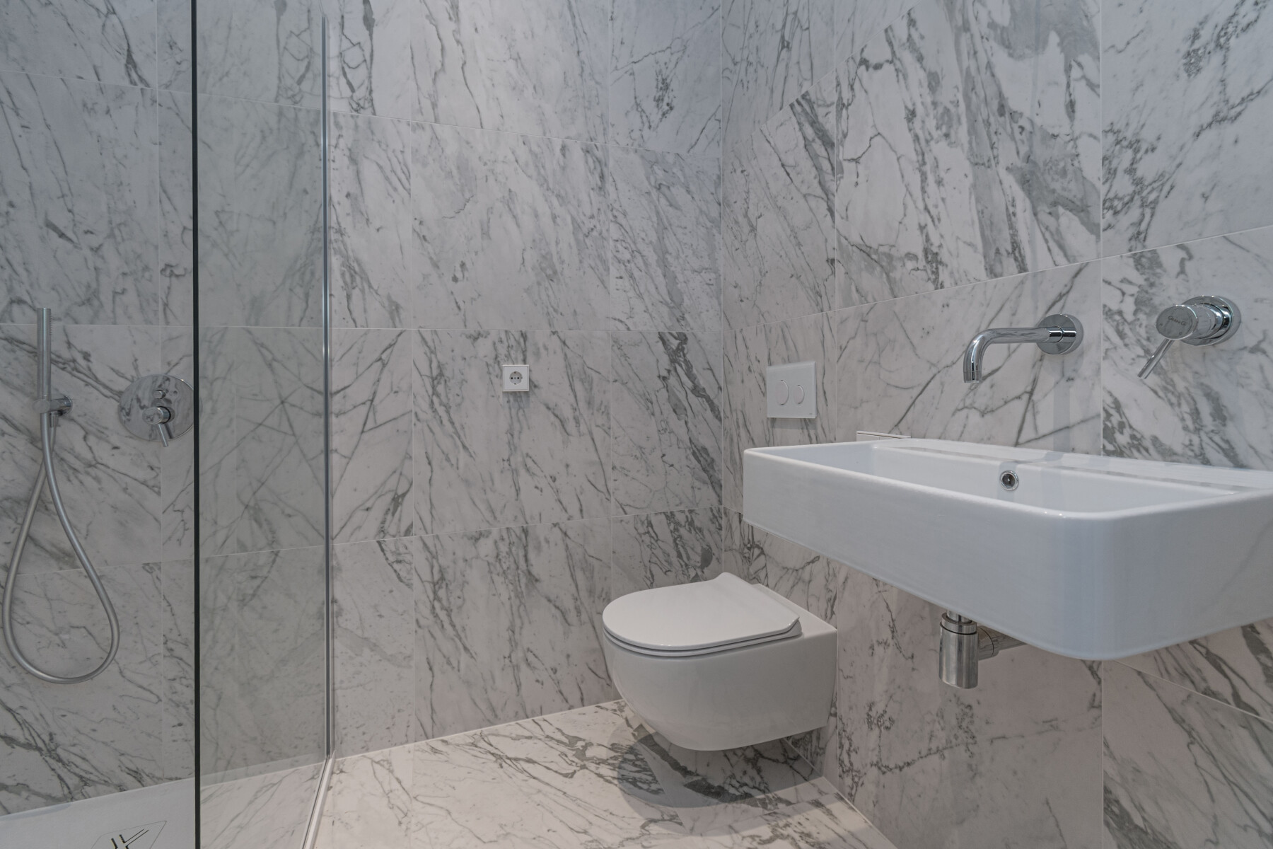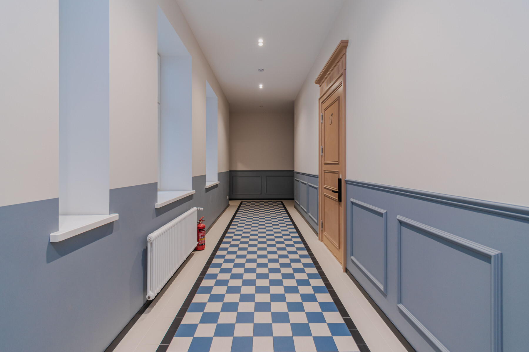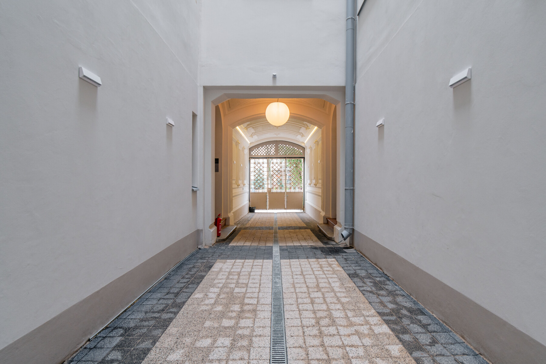 Реновированный дом с отличной и качественной внутренней отделкой квартир - дубовый паркет, изысканная фурнитура и дверные ручки, радиаторы, каменные ванны, качественная сантехника от производителя Flaminia, итальянская плитка под мрамор серо-белого цвета, смесители для воды от производителя Giulini. Особую ценность квартирам придают отреставрированные потолочные украшения и карнизы, избранные классические высокие плинтуса, двери высотой 2,4 м, изготовленные по оригинальному дизайну.