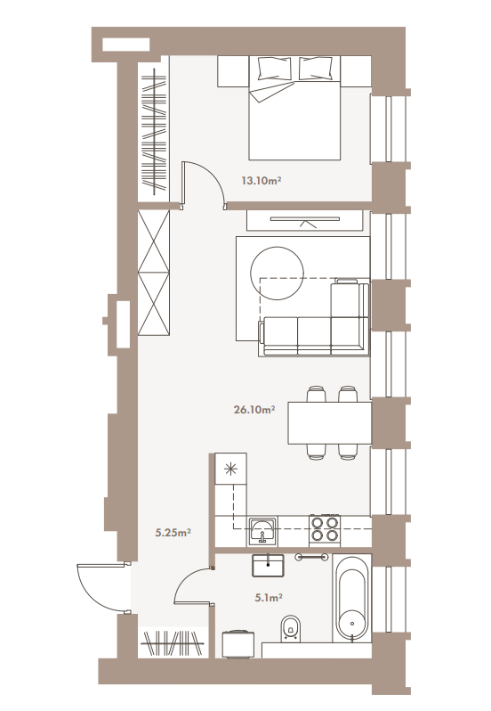 Фасад здания обращен к Латвийской национальной опере, Старой Риге и городскому каналу. Хотя апартаменты расположены в активном центре Риги, их окна имеют высокую звукоизоляцию, что позволяет наслаждаться центром города и находиться рядом с исторической частью города.