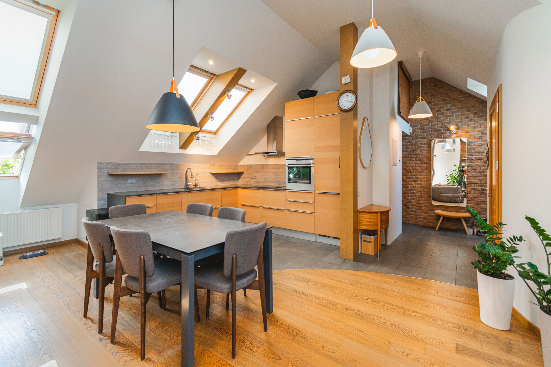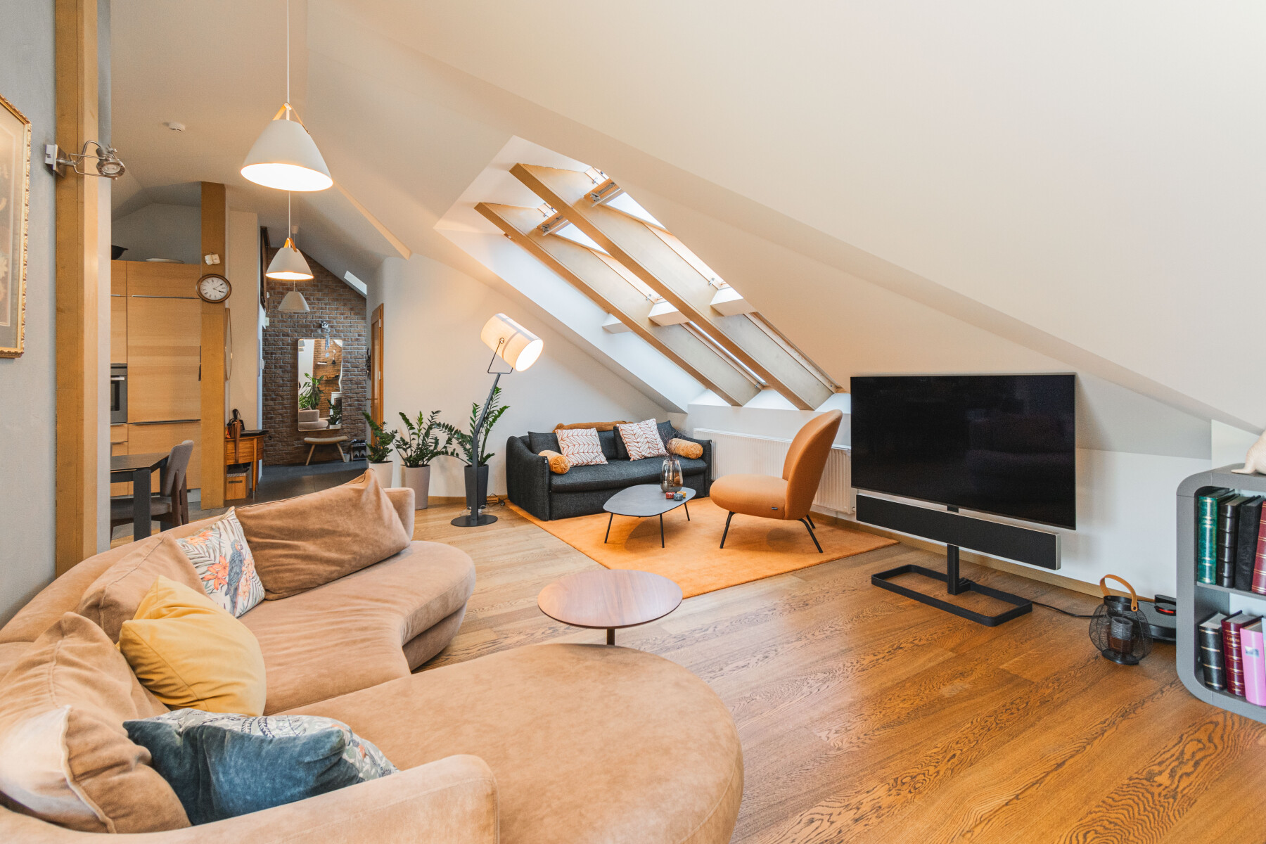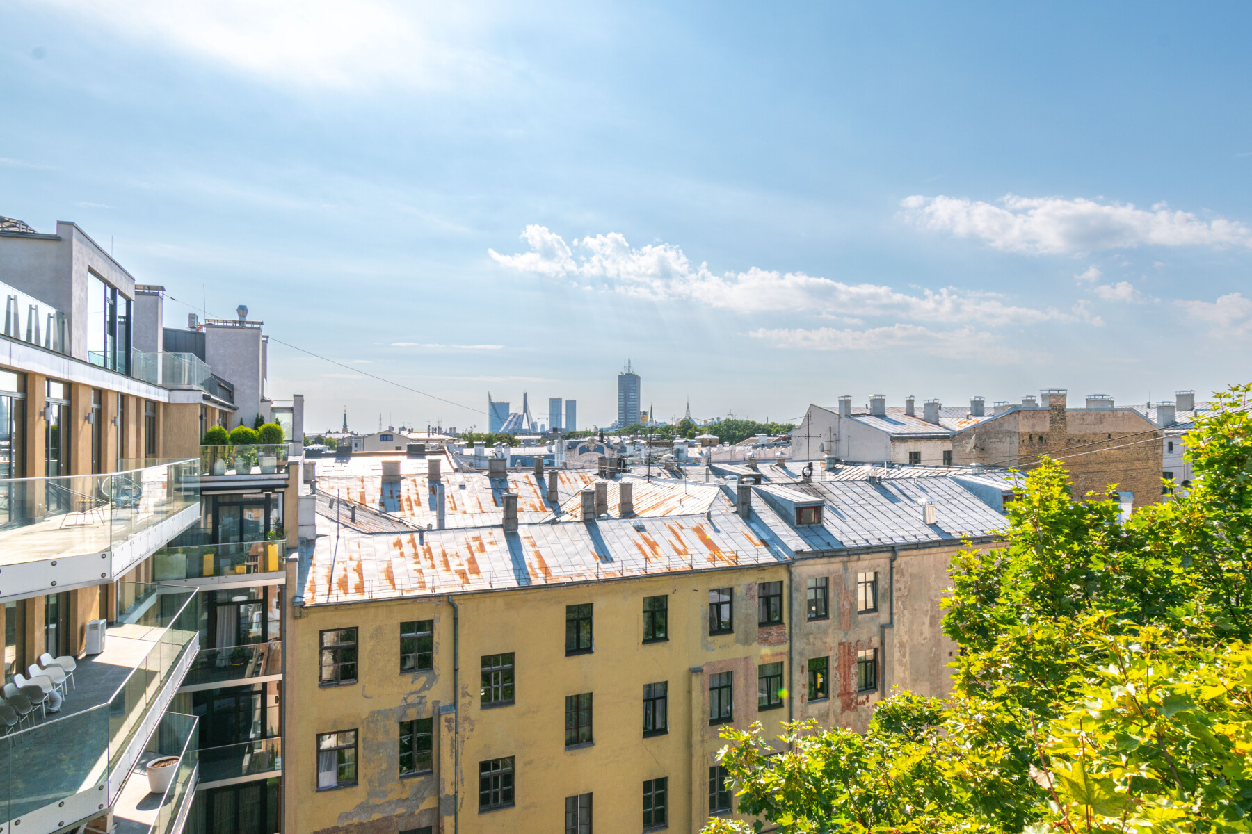 Продается светлая и просторная квартира мансардного типа в самом историческом центре Риги - на улице Дзирнаву 34А.