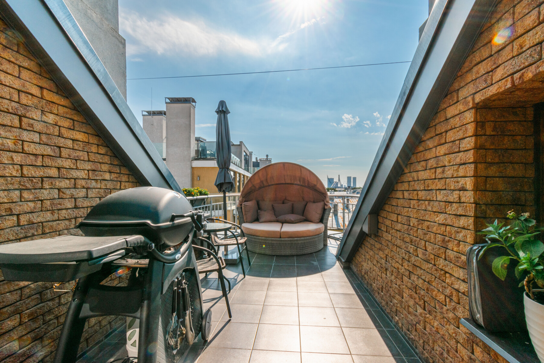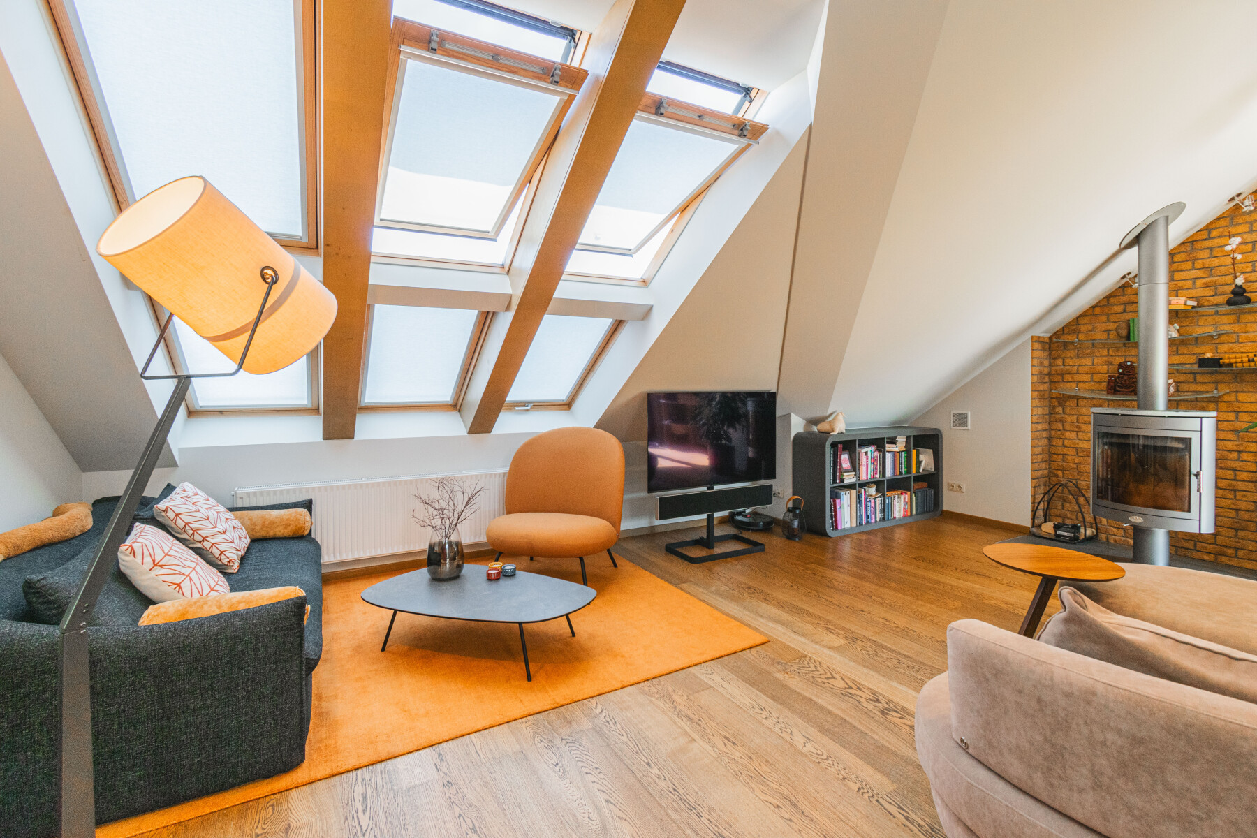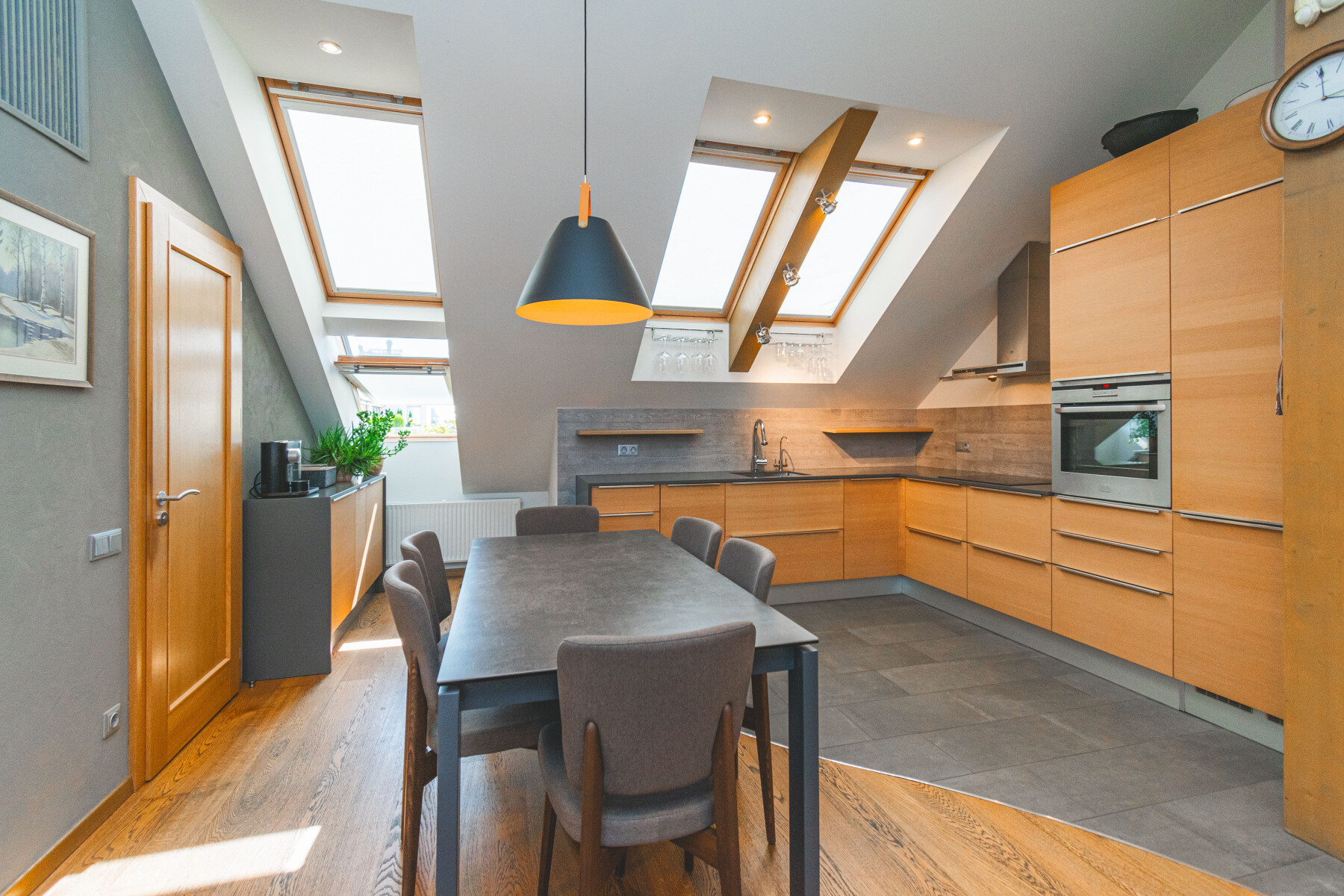 Продается светлая и просторная квартира мансардного типа в самом историческом центре Риги - на улице Дзирнаву 34А.