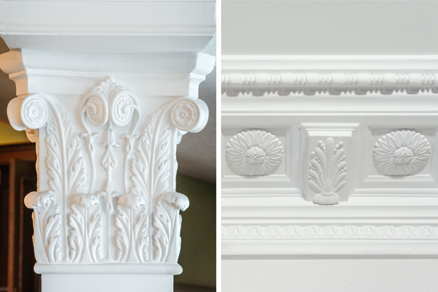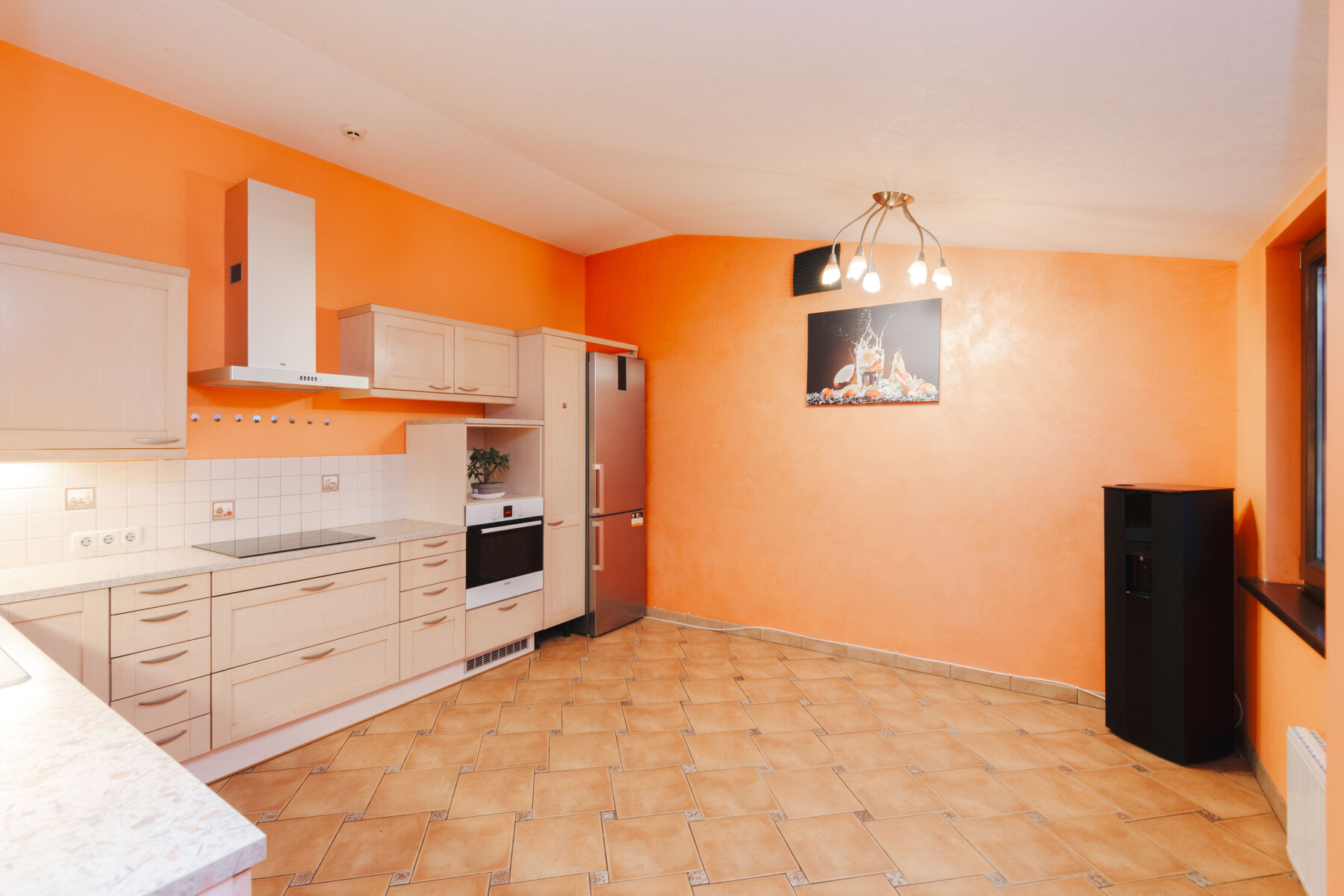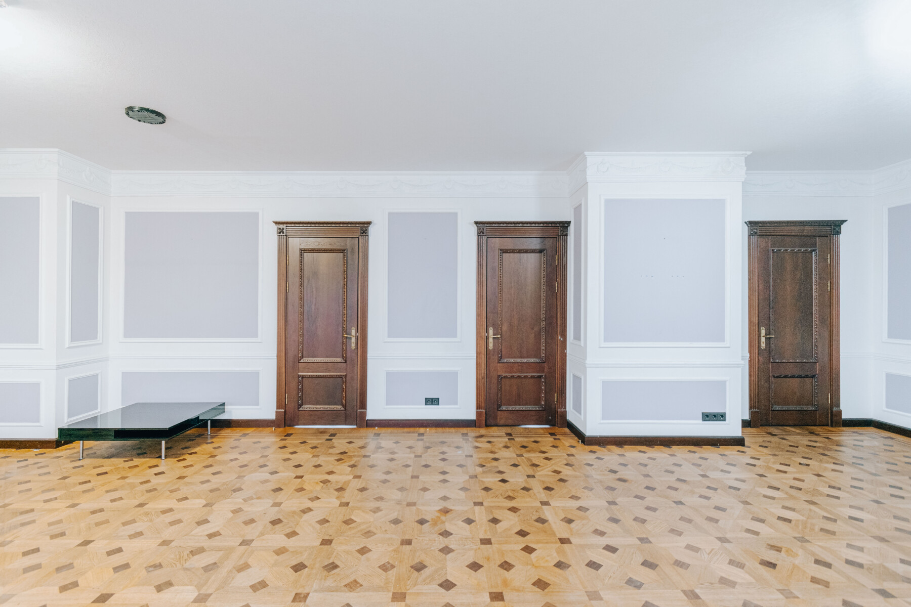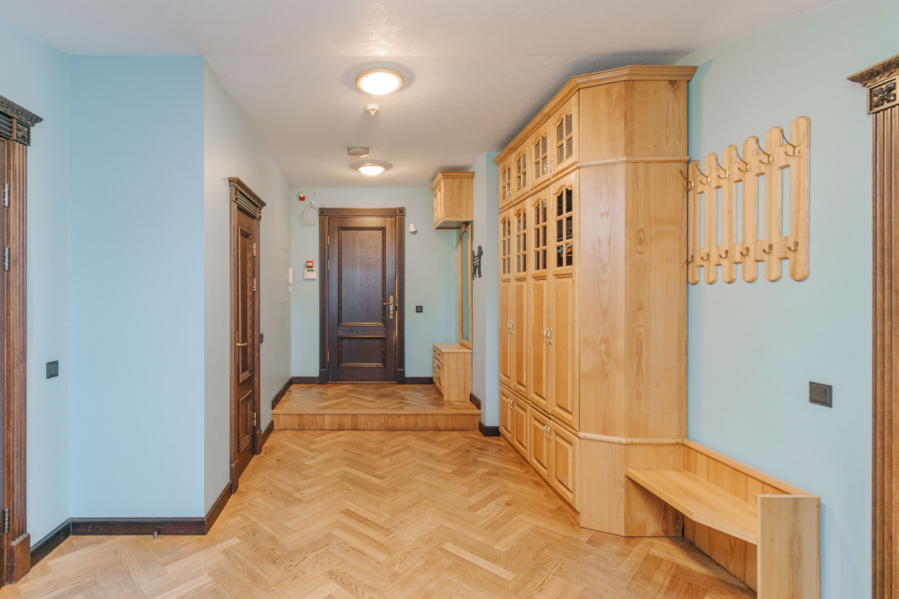 Полы из массива дерева, кухня со всей необходимой бытовой техникой, качественная сантехника, карнизы ручной работы, двери из массива дуба.