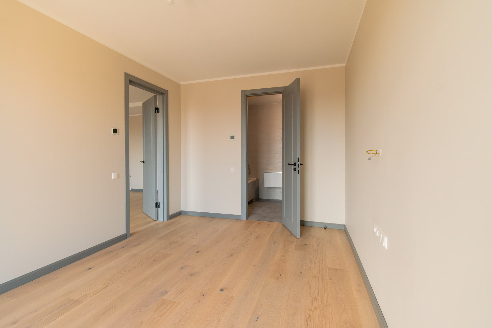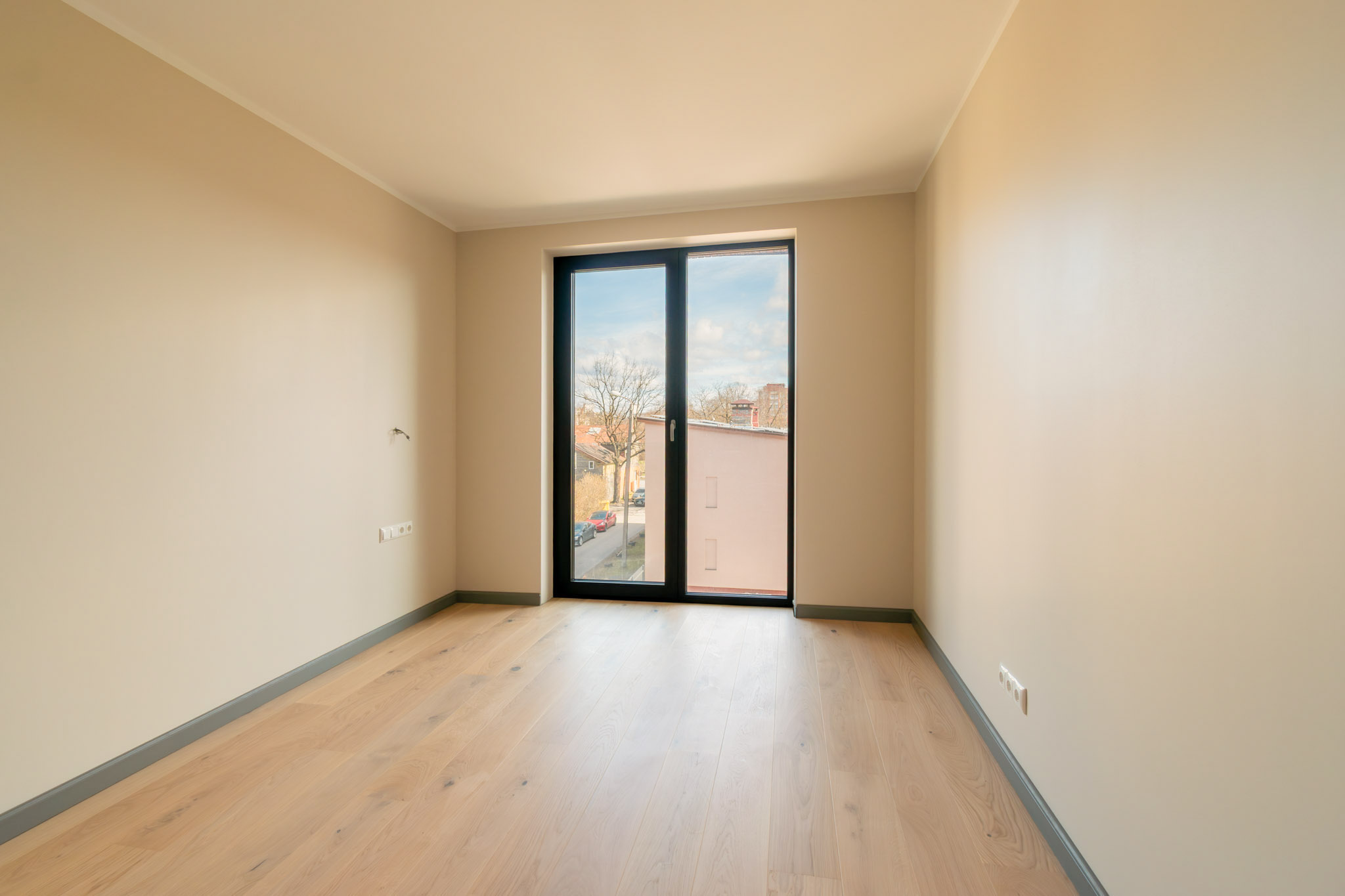 Dzīvoklis ir ar kvalitatīvu un elegantu pilnu iekšējo apdari, labu skaņas izolāciju, klusinātiem stāvvadiem un dzīvoklim ir balkons, uzstādīts koka Tarkett segums. Griesti ir 2.80 metrus augsti.