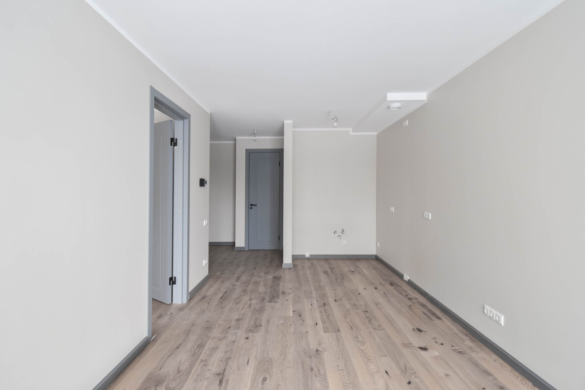 Квартира отличается высококачественной и элегантной внутренней отделкой, хорошей звукоизоляцией, шумопоглощающими ступенями, балконом и деревянным полом Tarkett. Высота потолков составляет 2,80 метра.