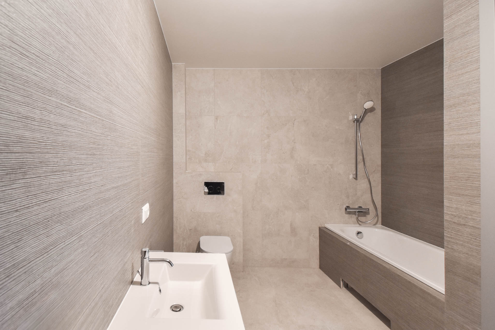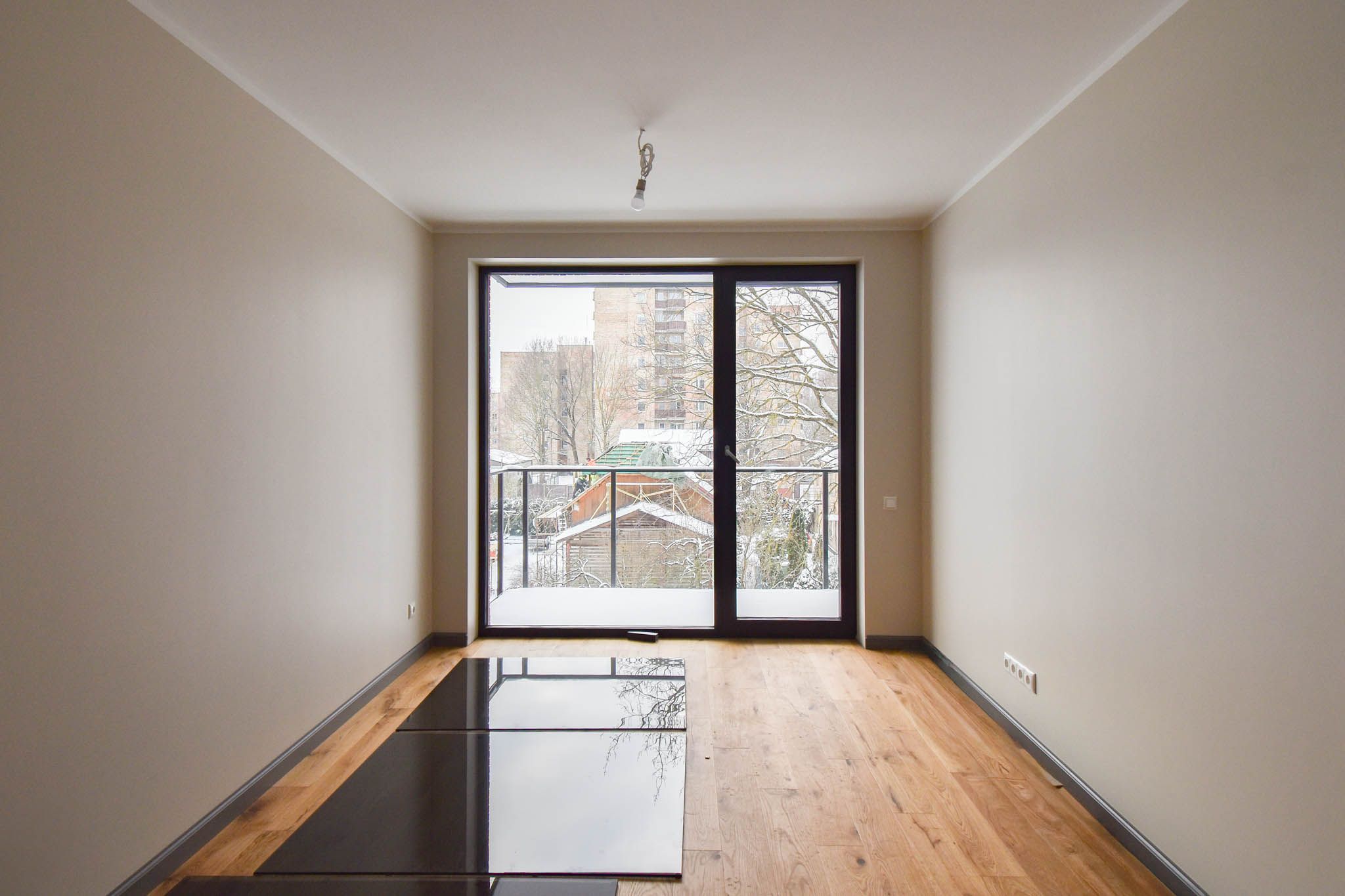 Квартира отличается высококачественной и элегантной внутренней отделкой, хорошей звукоизоляцией, шумопоглощающими ступенями, балконом и деревянным полом Tarkett. Высота потолков составляет 2,80 метра.