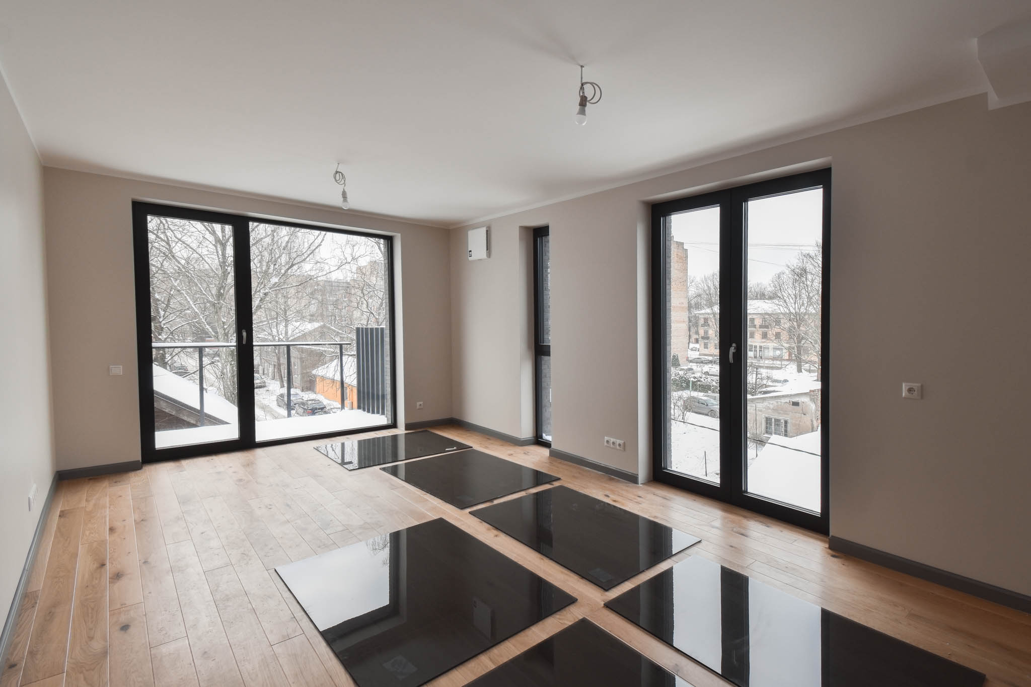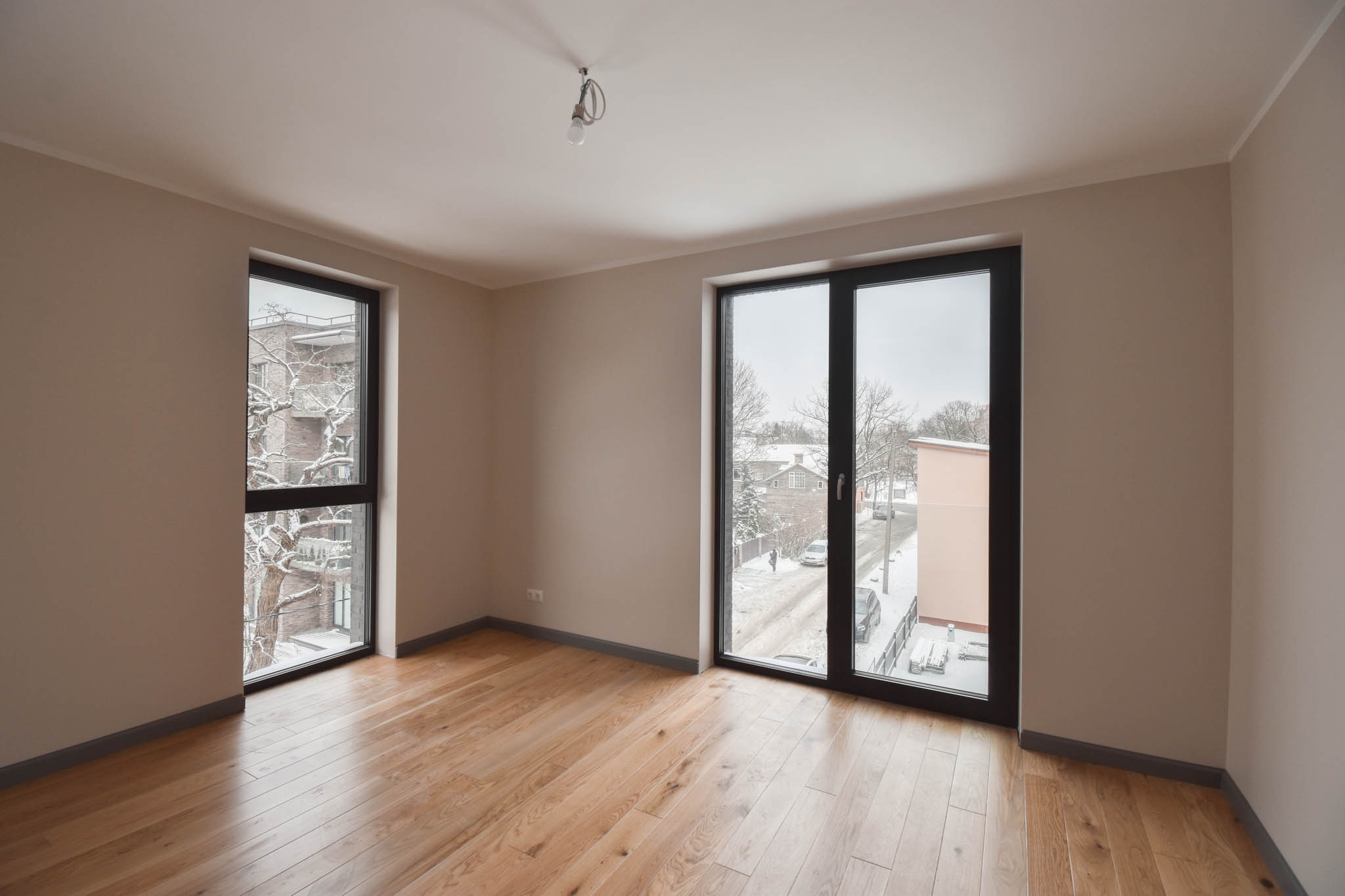 Dzīvoklis ir ar kvalitatīvu un elegantu pilnu iekšējo apdari, labu skaņas izolāciju, klusinātiem stāvvadiem un dzīvoklim ir balkons, uzstādīts koka Tarkett segums. Griesti ir 2.80 metrus augsti.